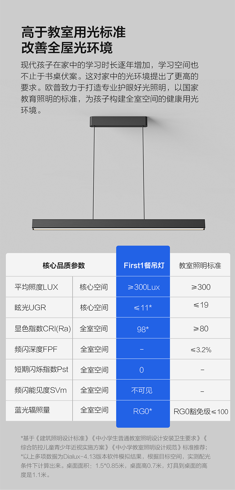 爆款🔥欧普(OPPLE)一字长条餐吊灯简约现代全光谱First1护眼餐桌吧台吊线餐厅灯具