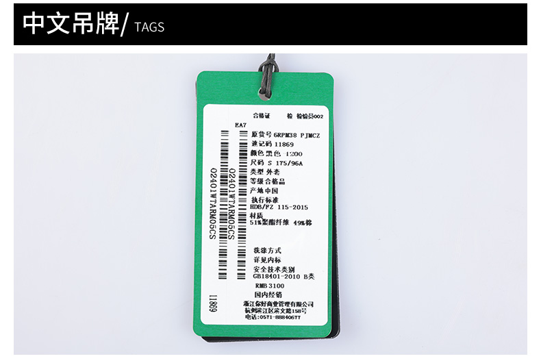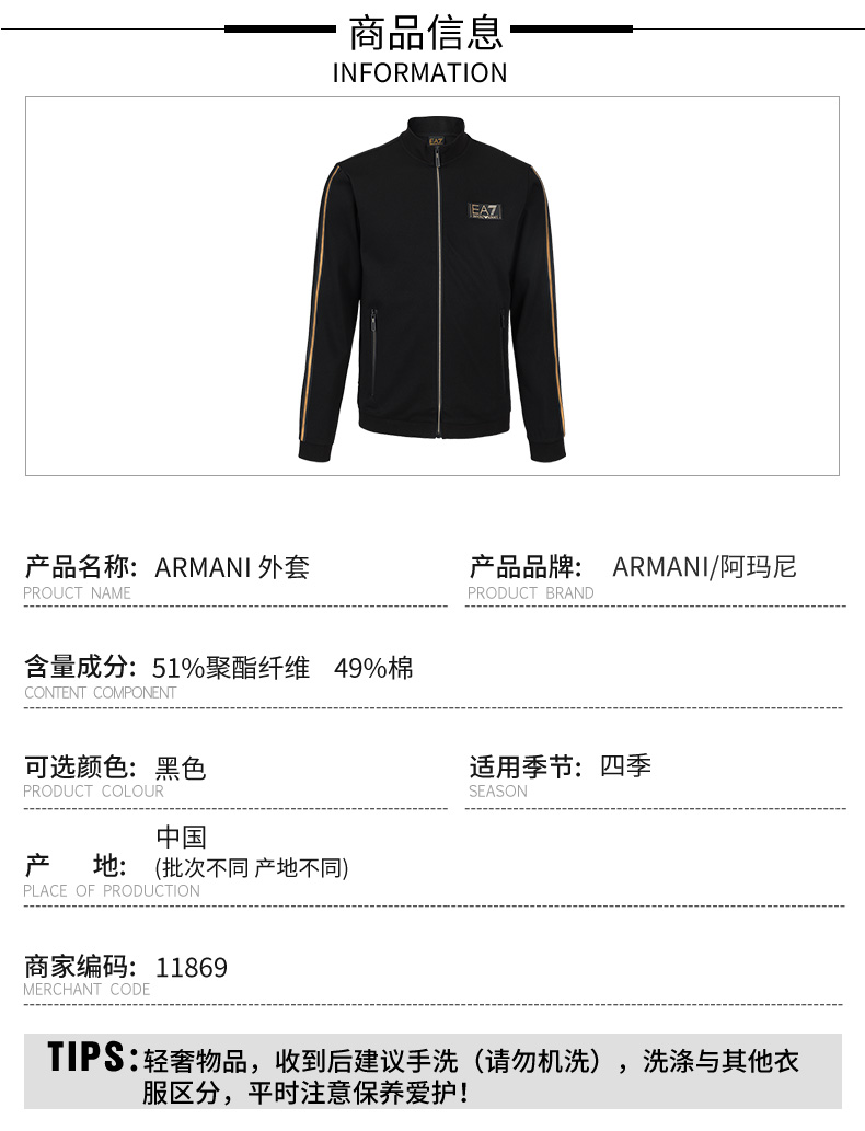【超惠秒】Armani EA7男士棉混百搭拉链开合卫衣外套11869