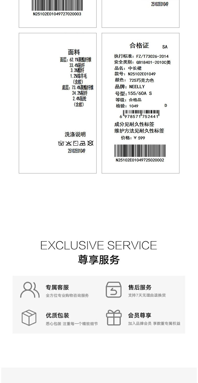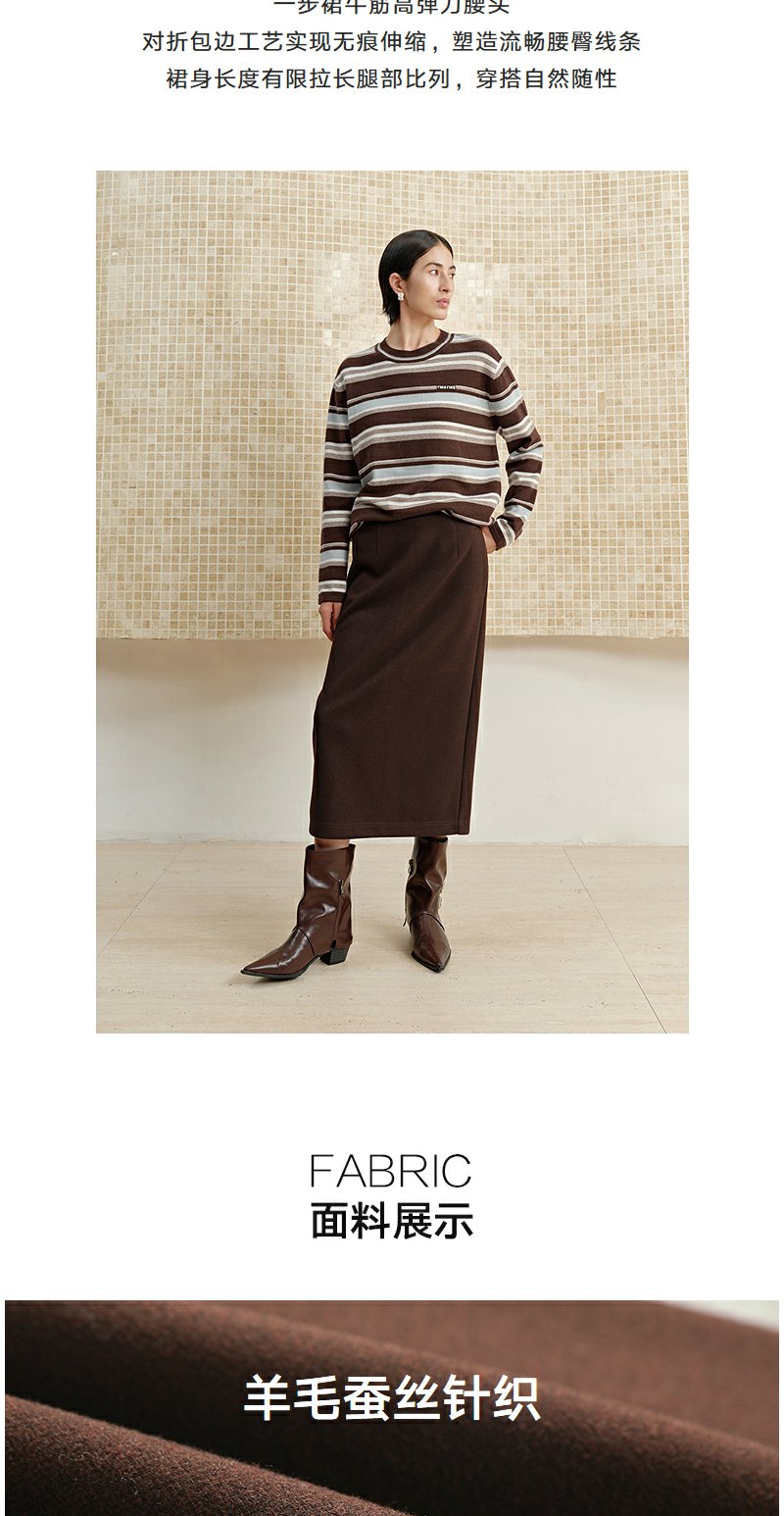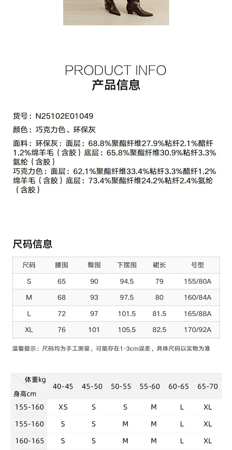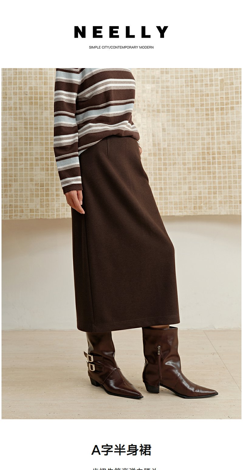 NEELLY纳俪商场同款冬季新款休闲优雅一步裙女通勤百搭中长裙N25102E01049