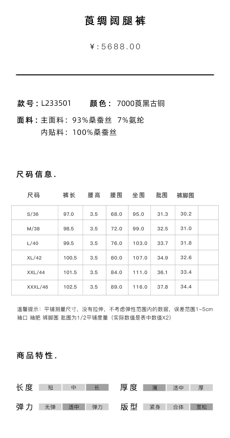 TANGY Collection天莨高端2023秋季新品商场同款染秋系列女士绸阔腿裤