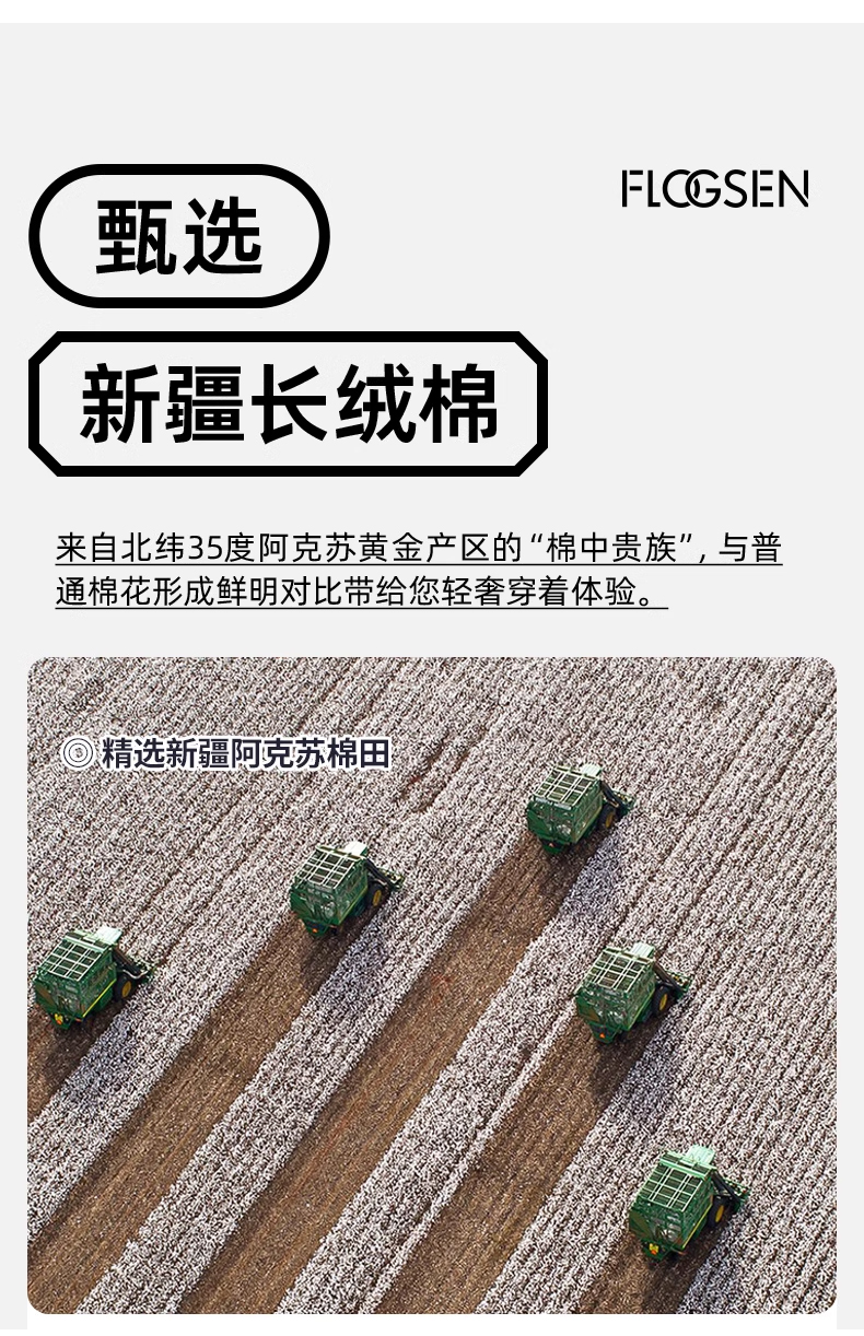 甄选新疆长绒棉。来自北纬35度阿克苏黄金产区,由于其品质优良,纤维柔长,被世人誉为“棉中贵族”。