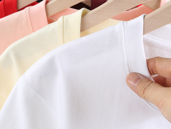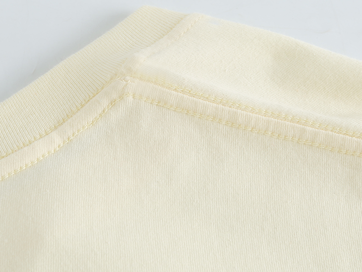 双层螺纹领口加固,圆领是t恤里的经典款,简约百搭,夏天出汗也不容易黏脖子。