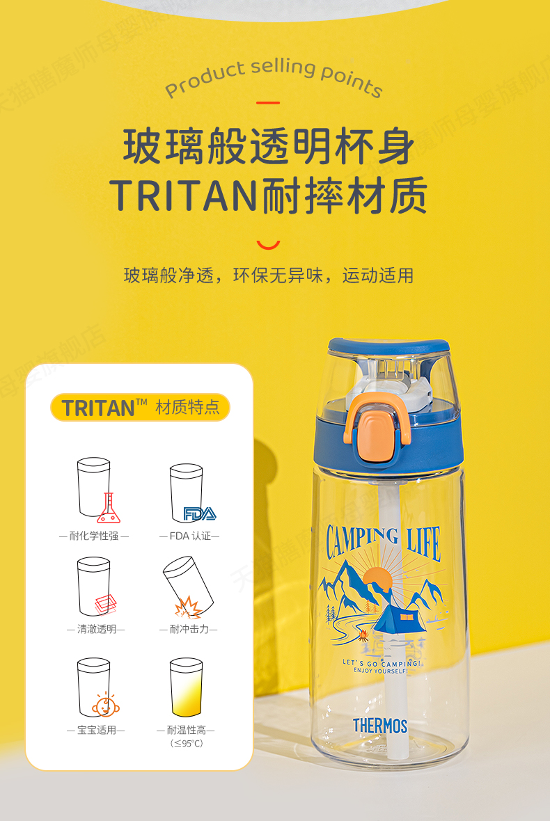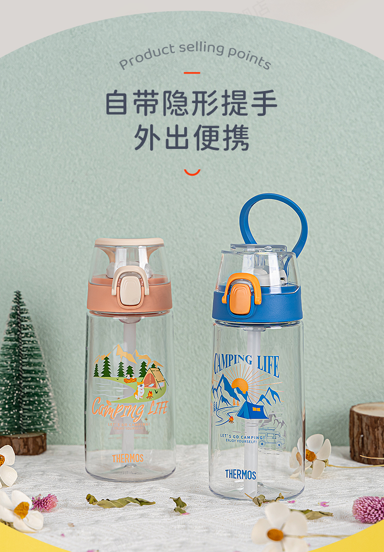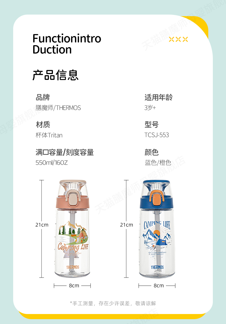 德国Thermos膳魔师 儿童吸管杯夏季宝宝水杯大容量学饮杯露营系列 550ml 3岁+