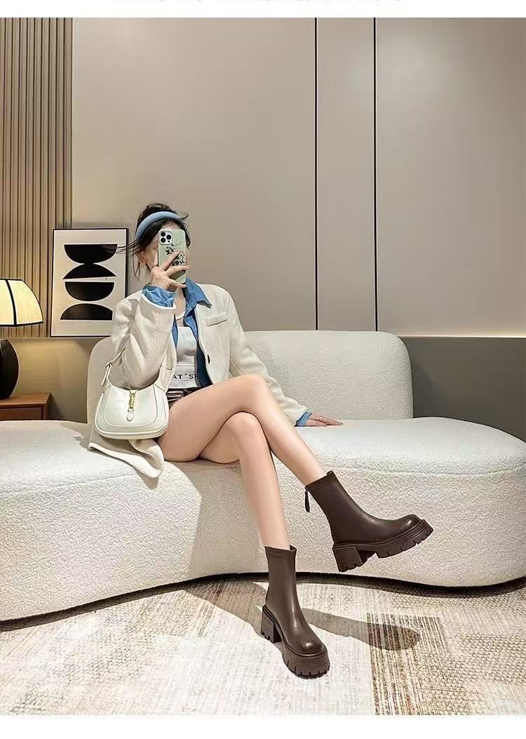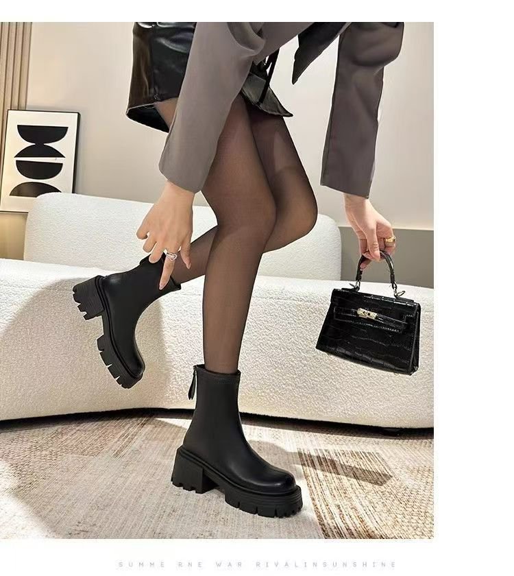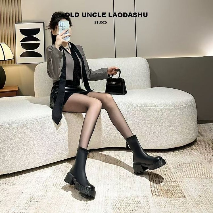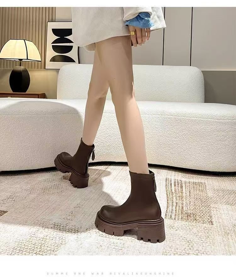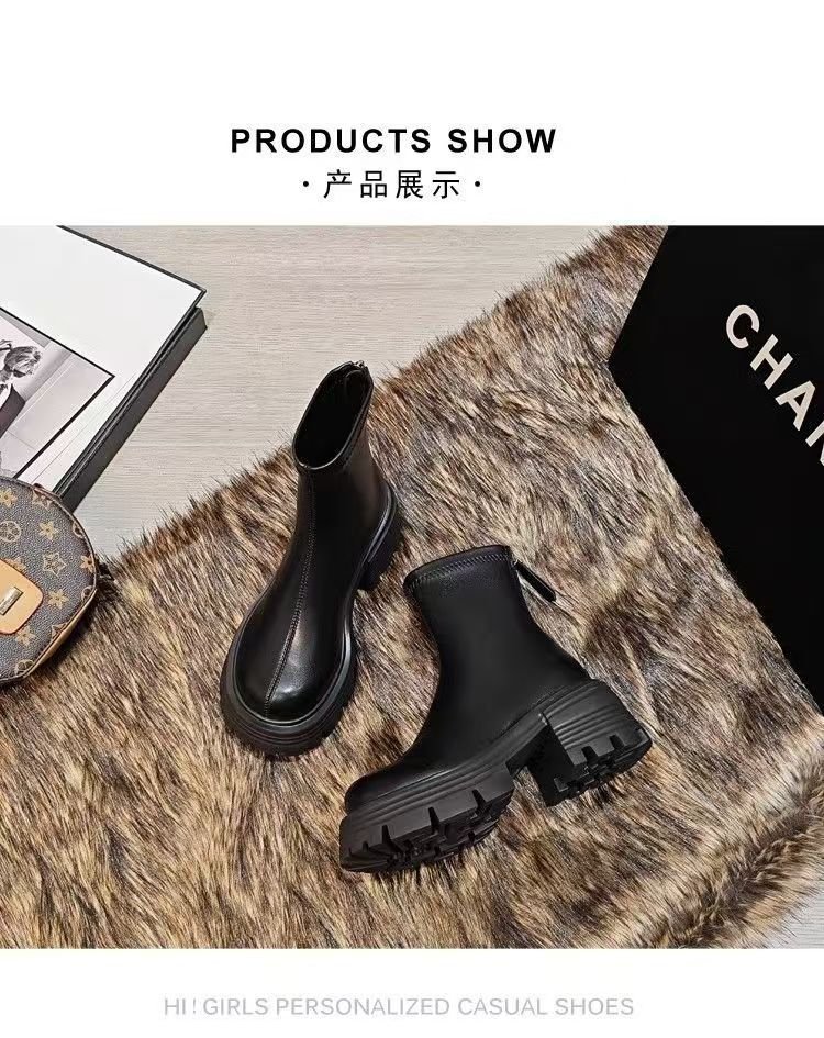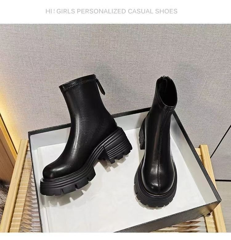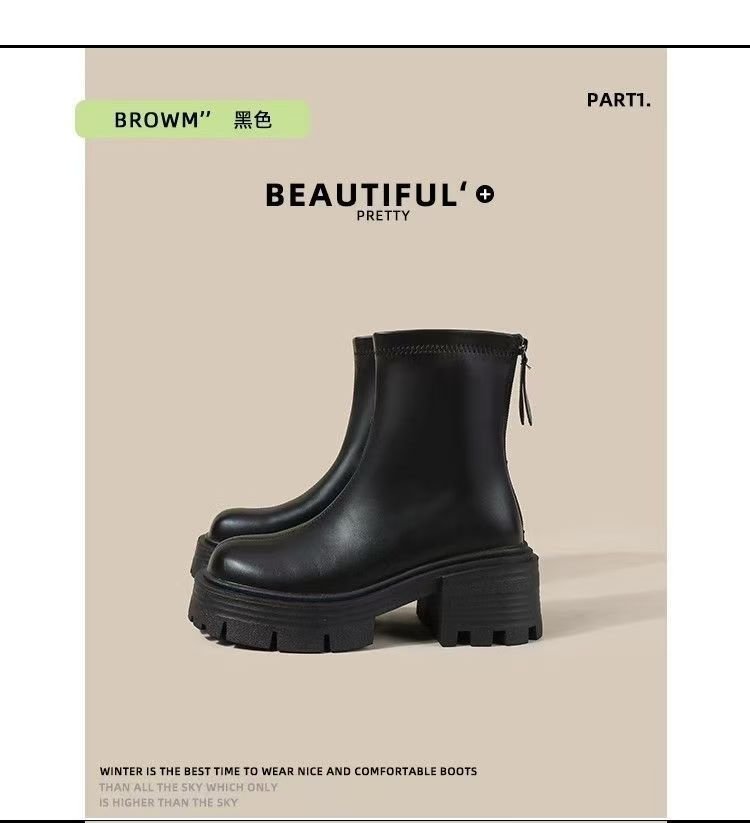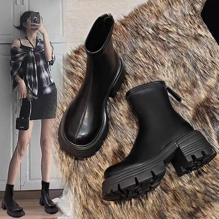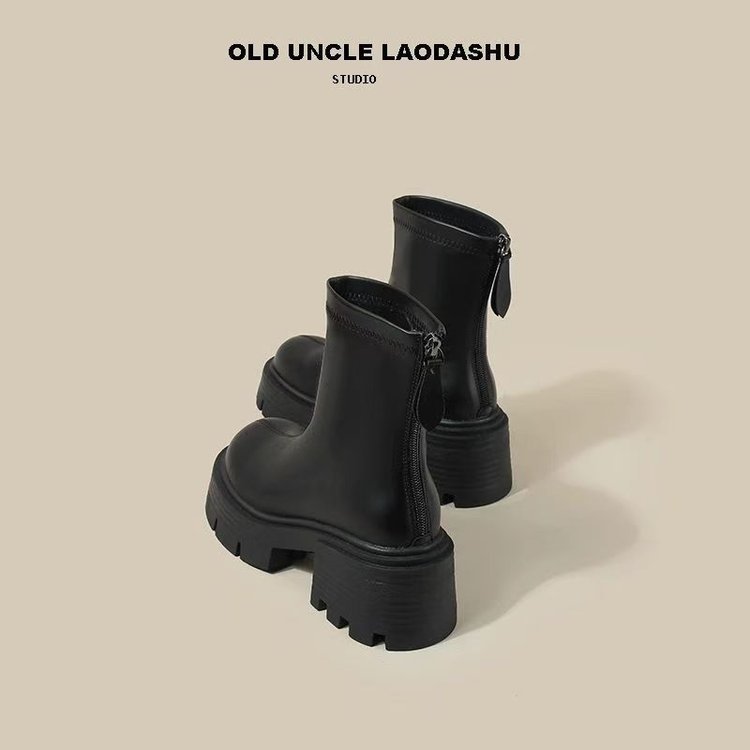 【59/双】厚底马丁靴女2025新款小个子秋冬复古瘦瘦靴气质增高时尚短靴靴子聚