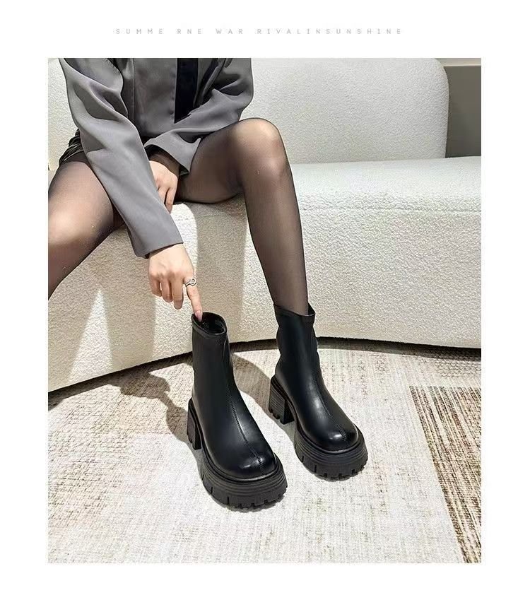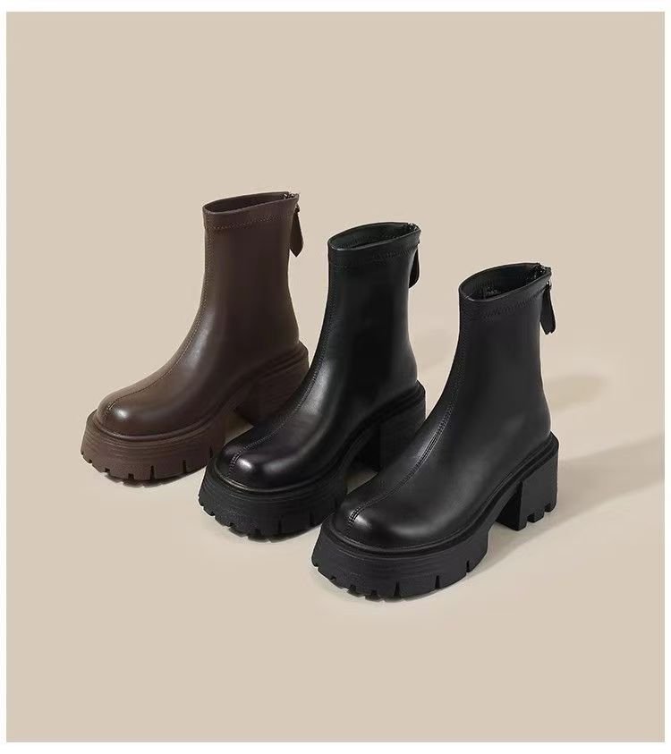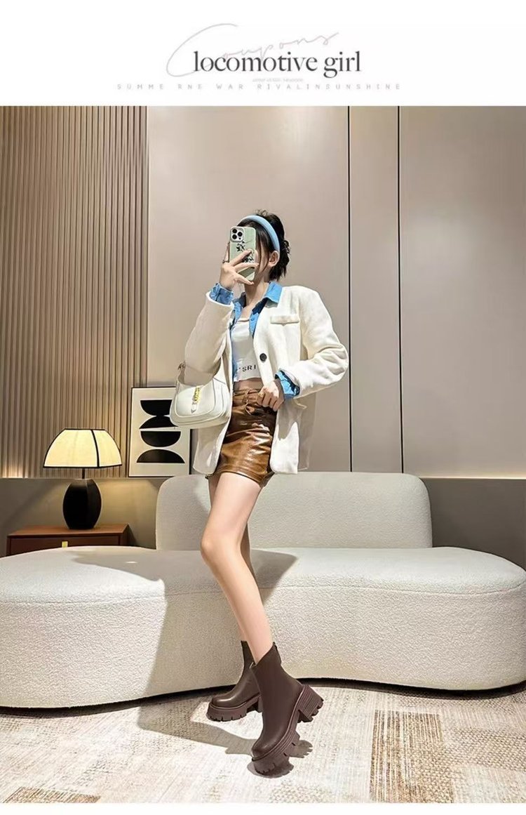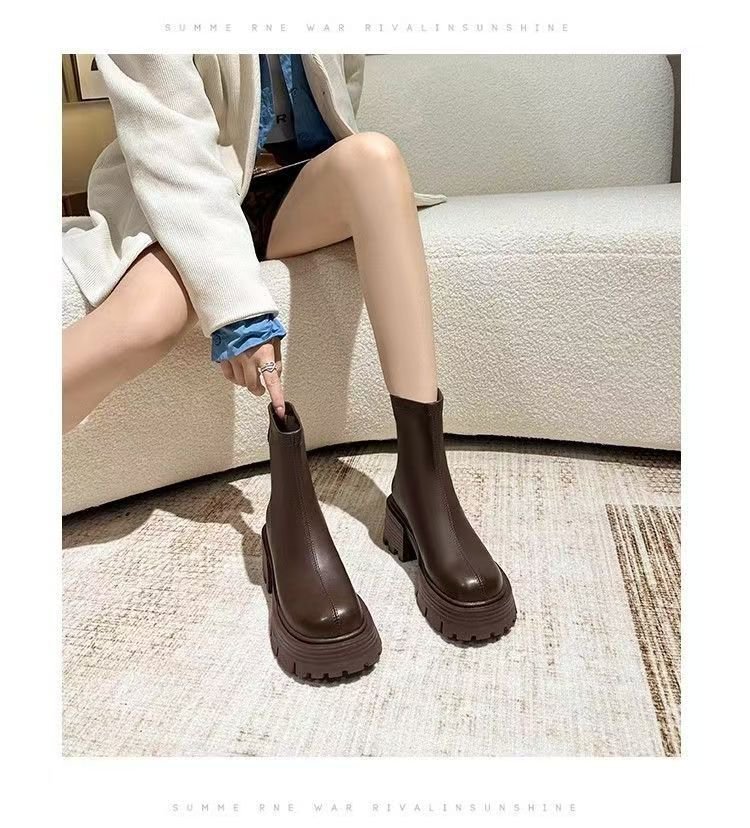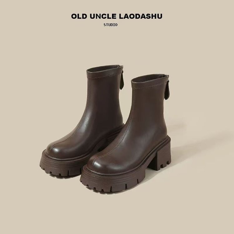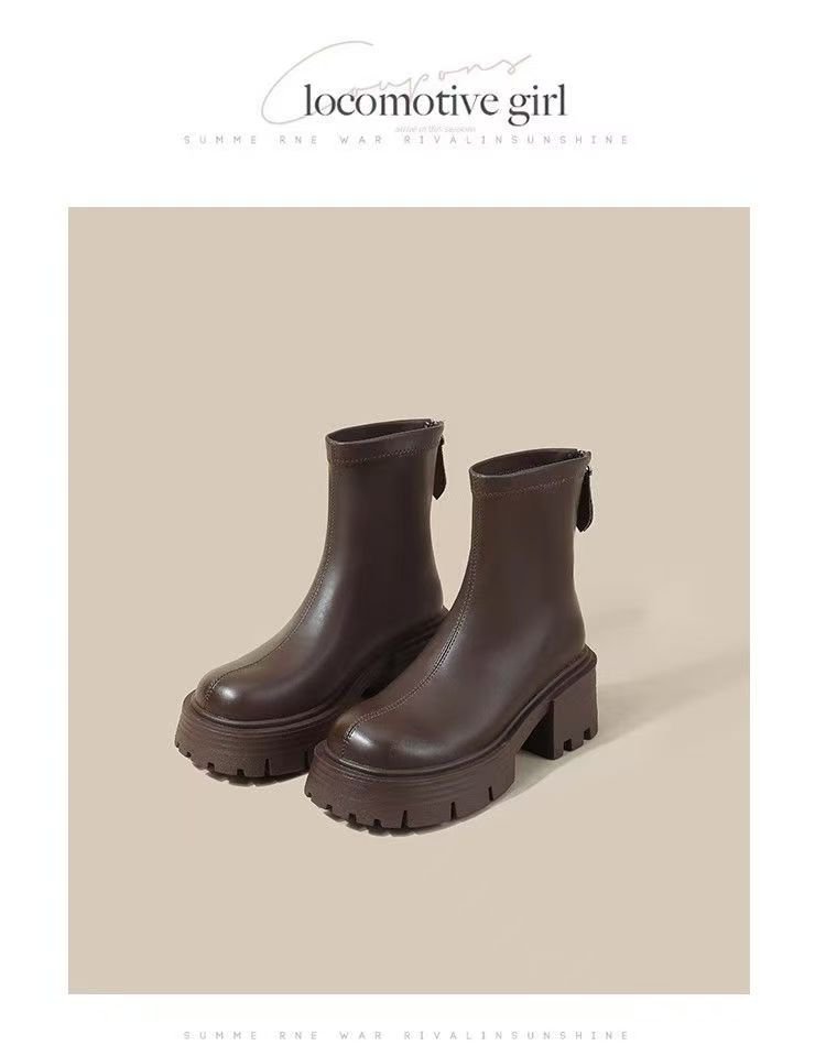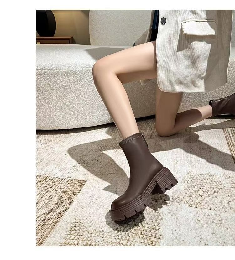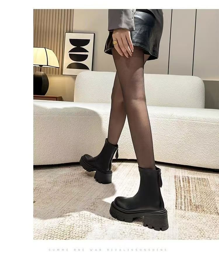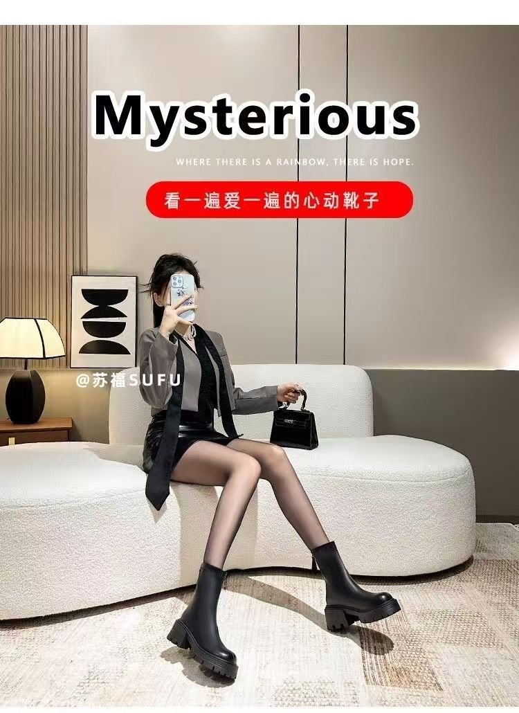 【59/双】厚底马丁靴女2025新款小个子秋冬复古瘦瘦靴气质增高时尚短靴靴子聚