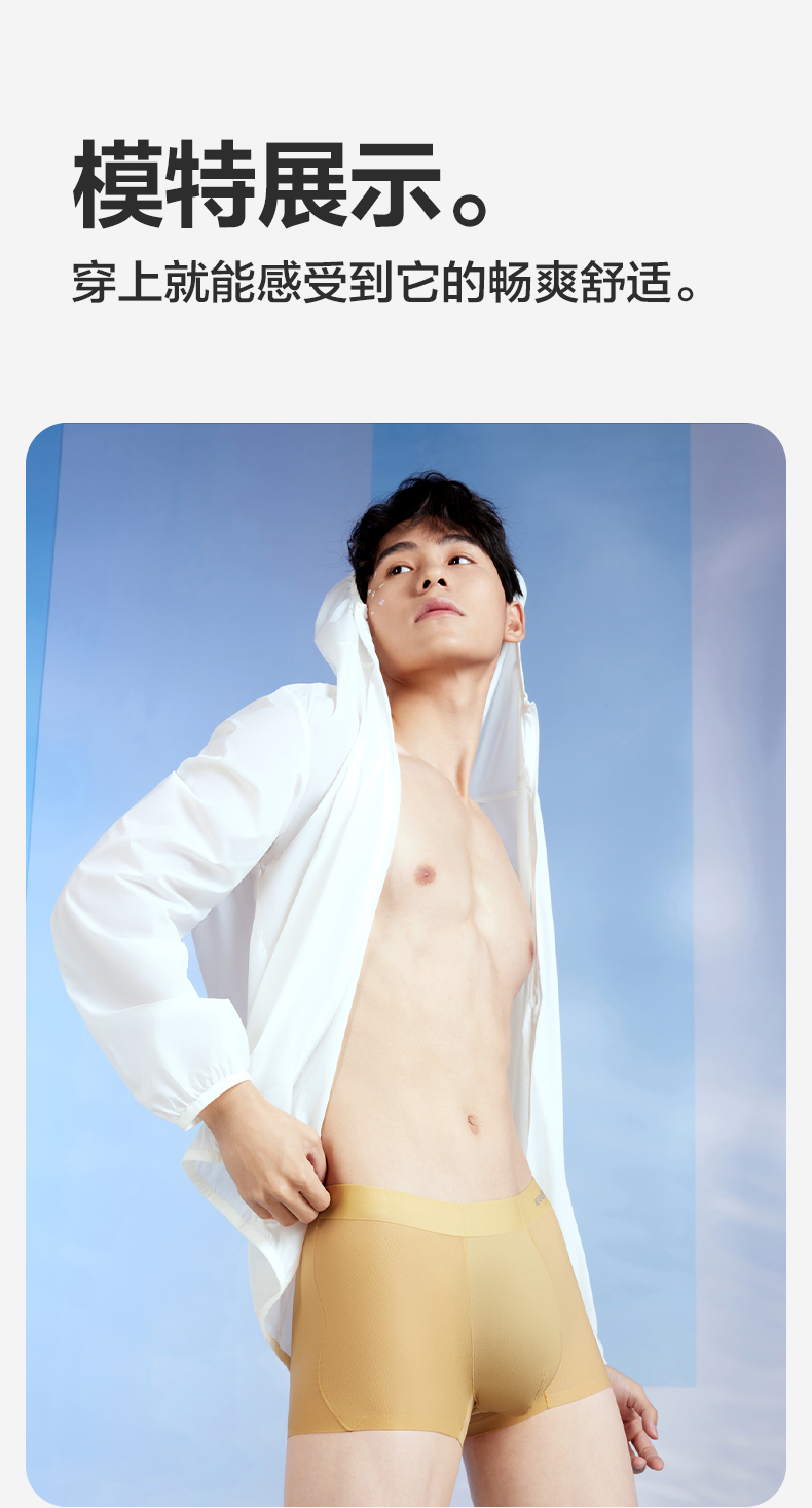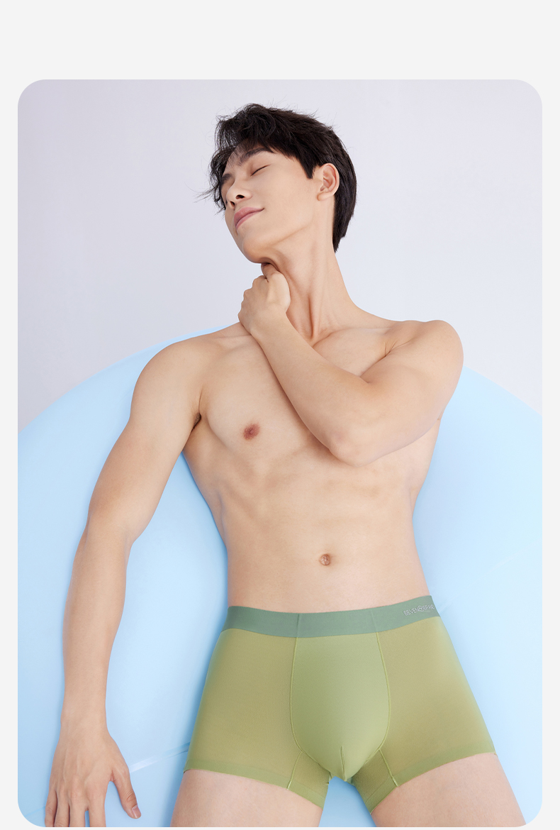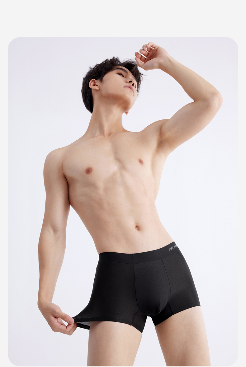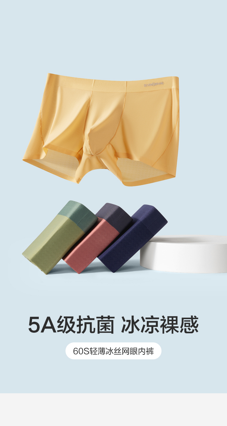 【礼盒3条装】【冰凉裸感】柒牌60支冰丝网眼男士平角内裤轻薄丝滑柔软 126F70130