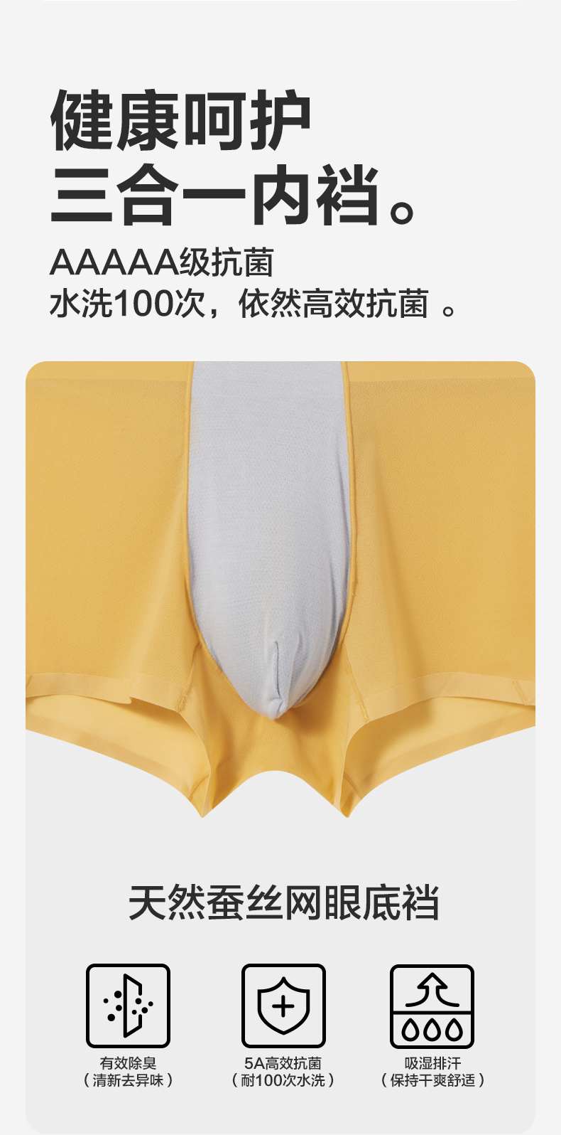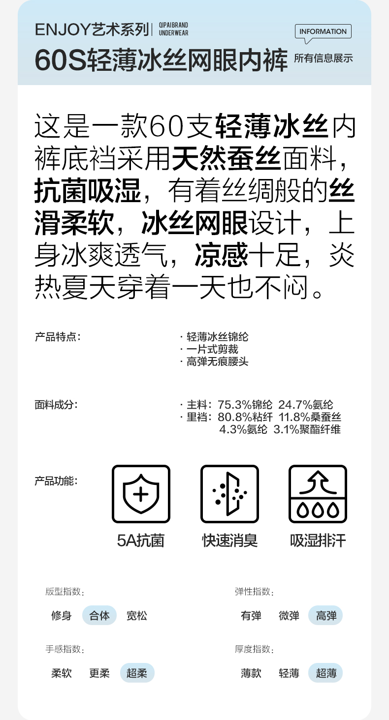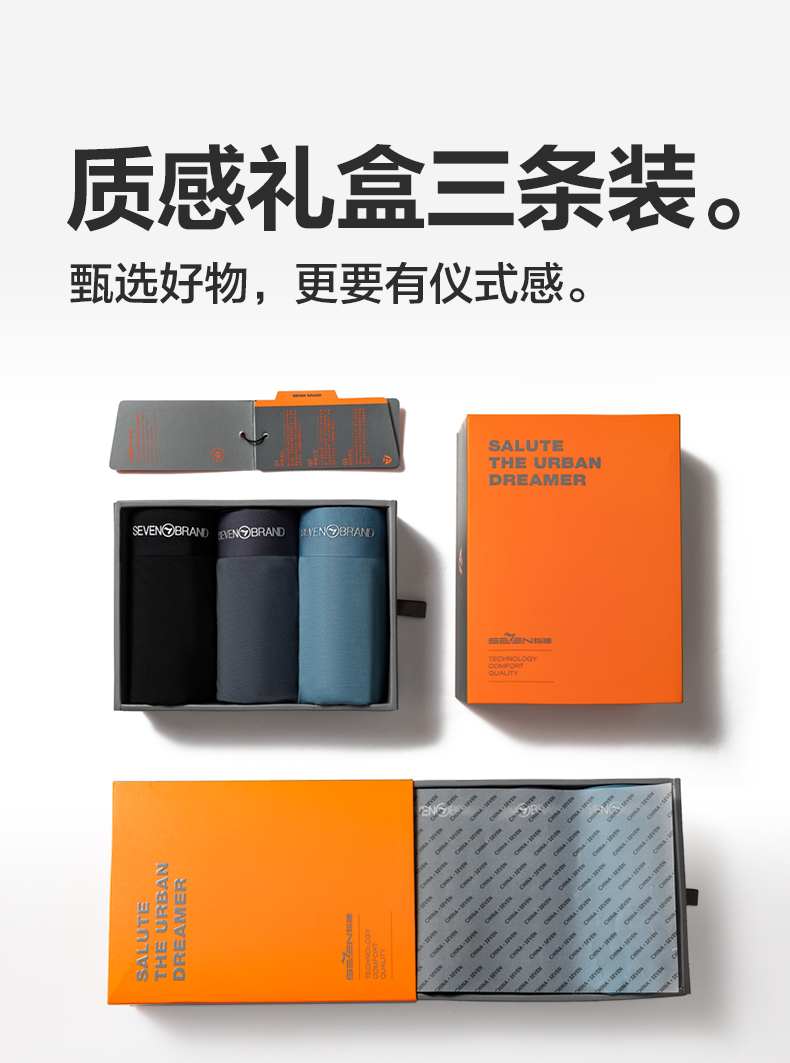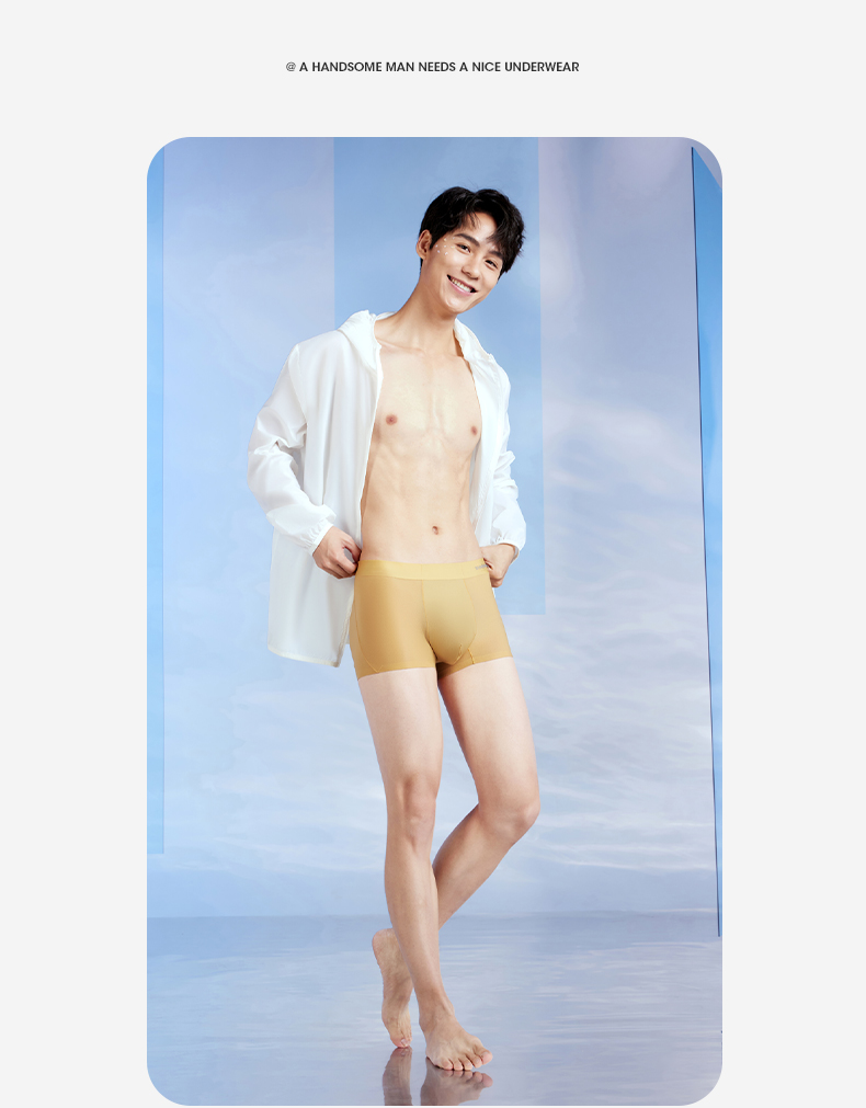 【礼盒3条装】【冰凉裸感】柒牌60支冰丝网眼男士平角内裤轻薄丝滑柔软 126F70130