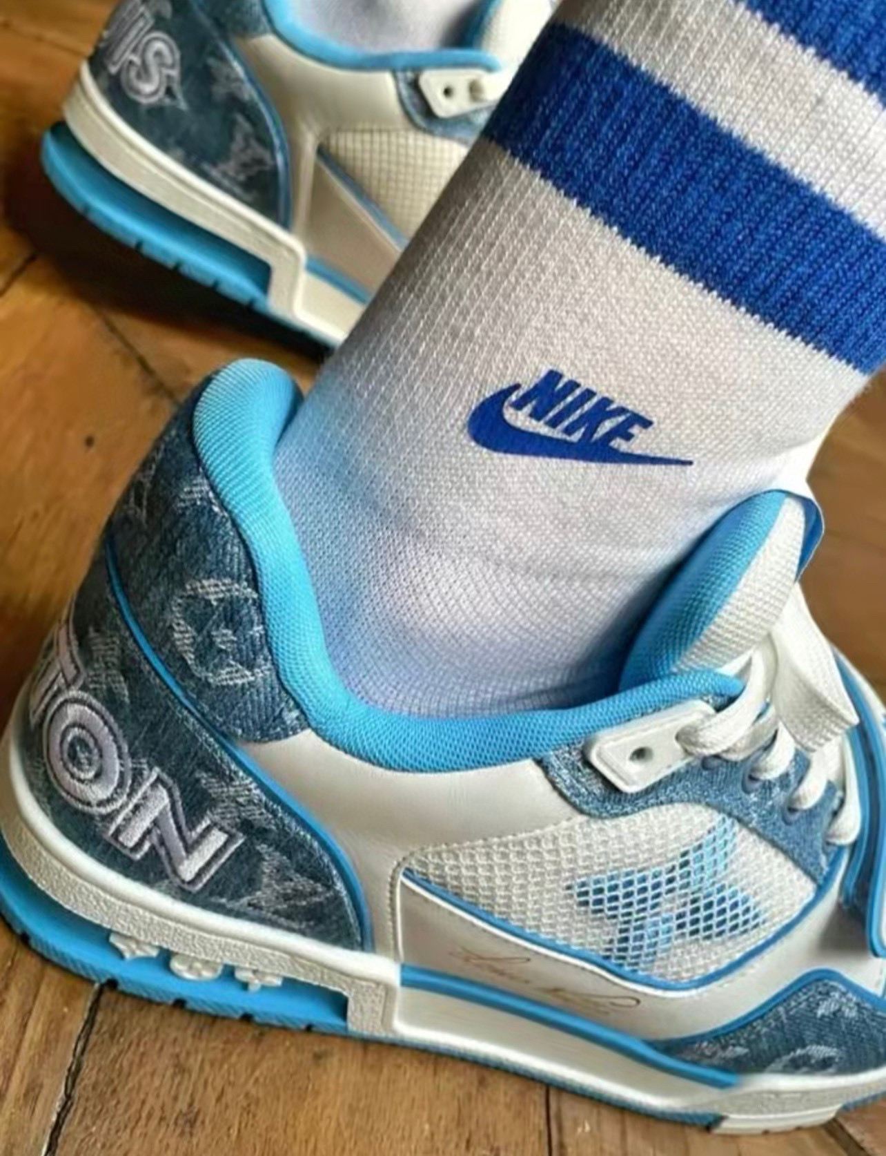 MIU-T 蓝灰拼色亨利领短袖
