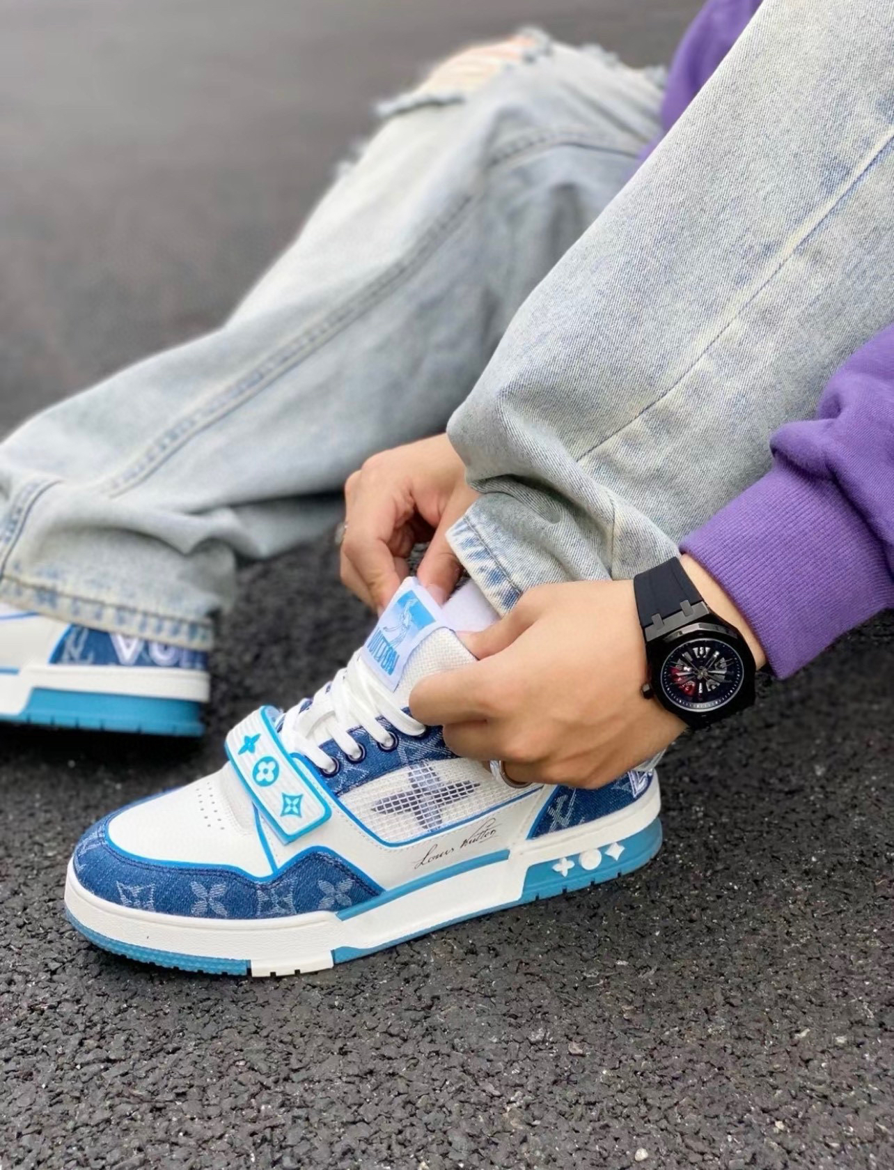 L-SH 剪裁贴饰牛仔裤
