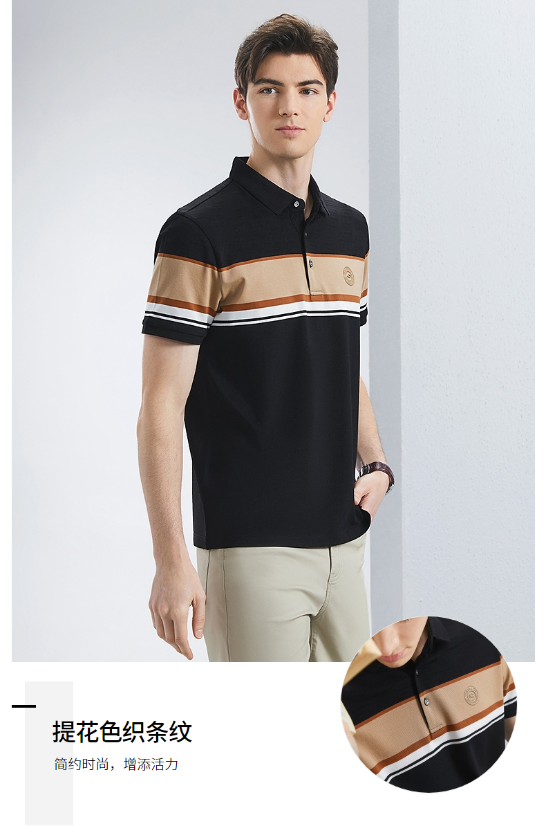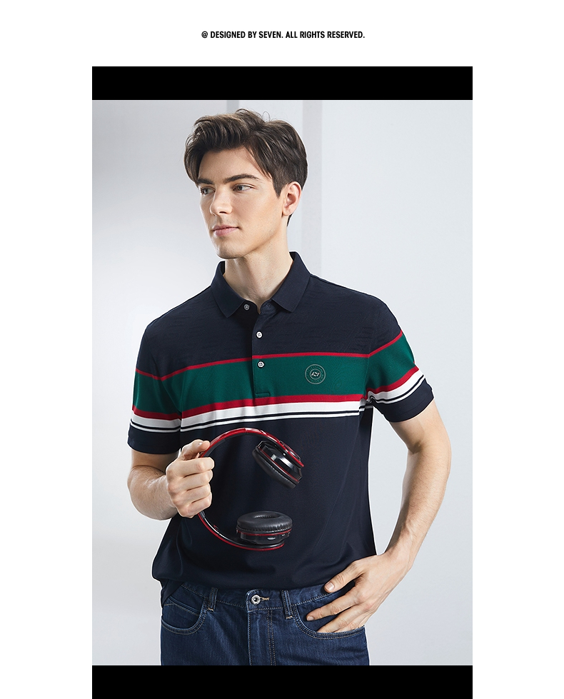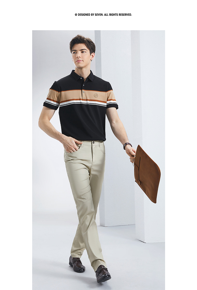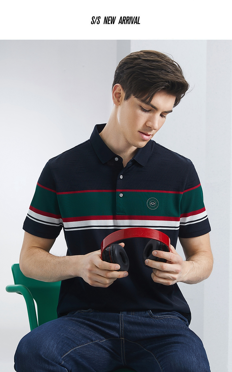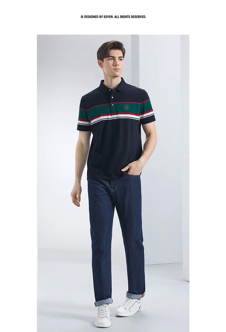 【丝光棉】柒牌条纹polo衫男2024夏季新款时尚休闲中青年短袖T恤 126T70920
