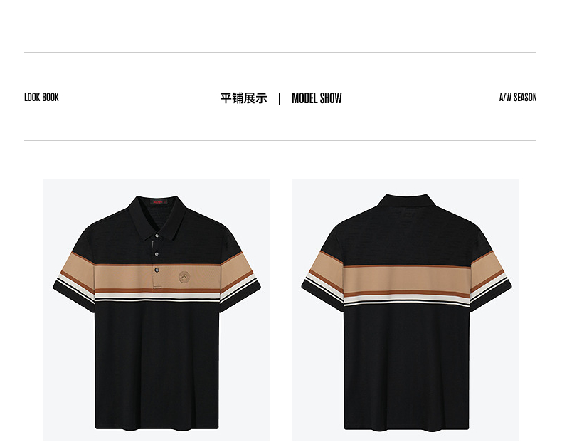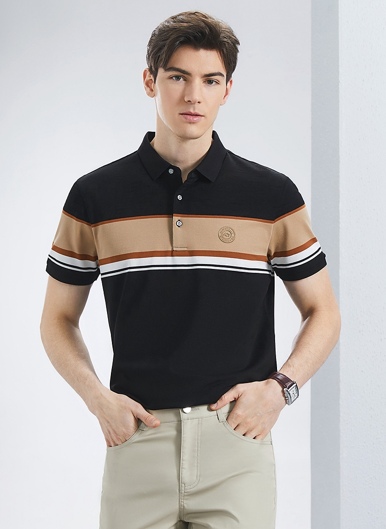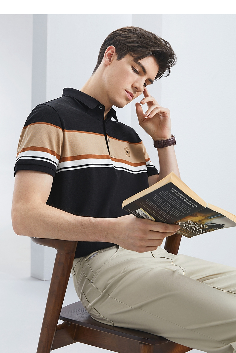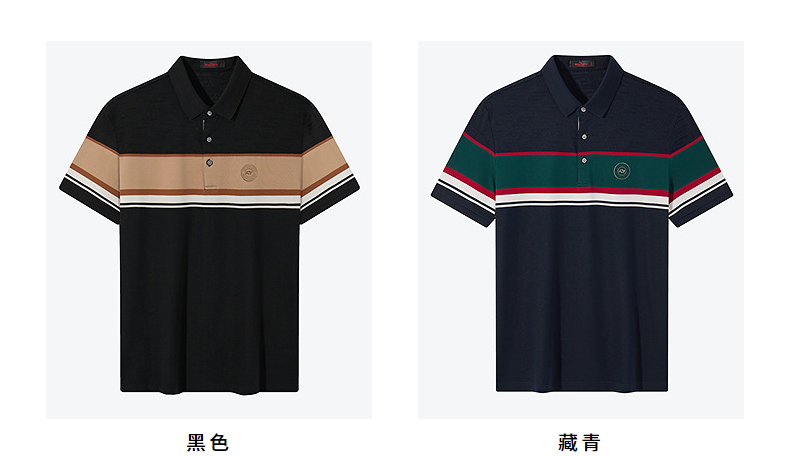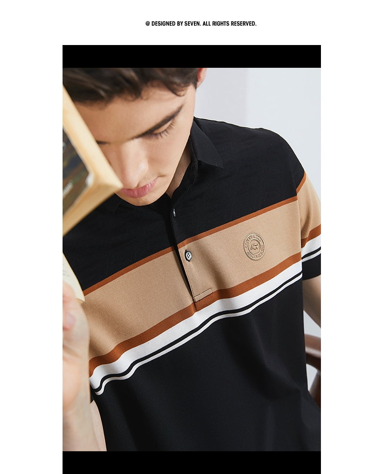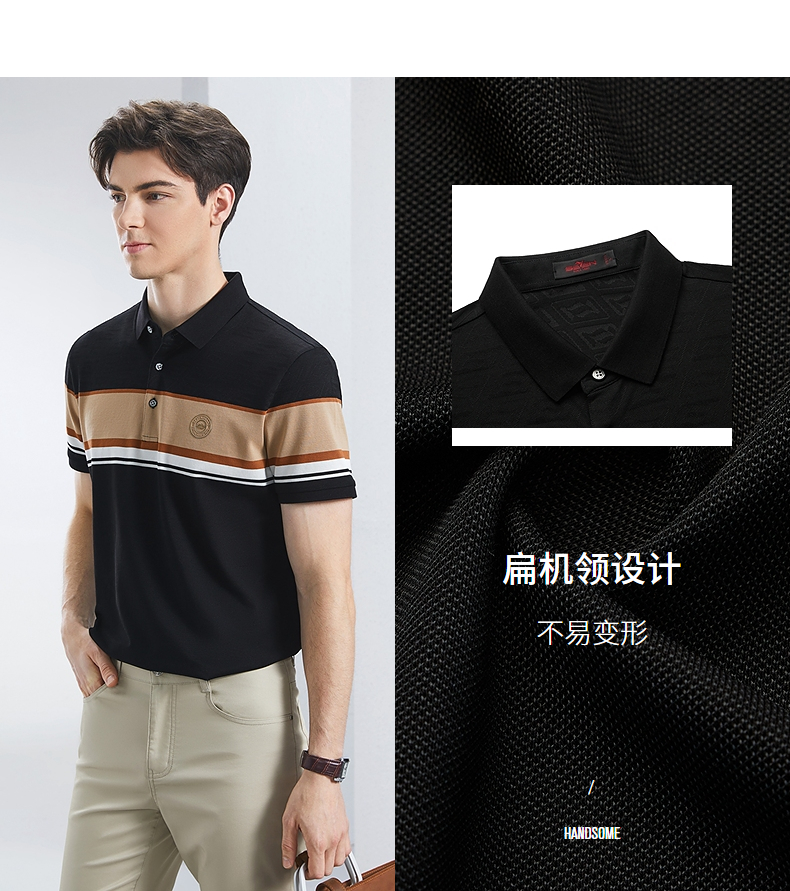 【丝光棉】柒牌条纹polo衫男2024夏季新款时尚休闲中青年短袖T恤 126T70920