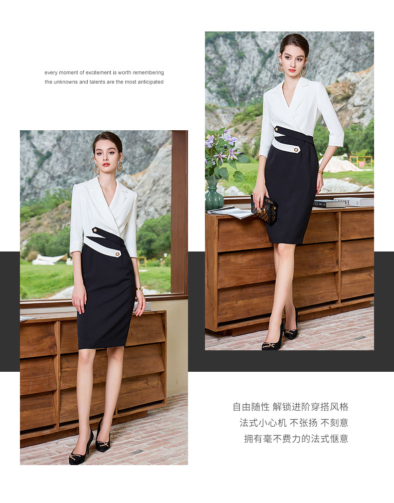 IWY/设计感黑白拼接气质通勤七分袖时尚简约西装连衣裙Q965-ZZ
