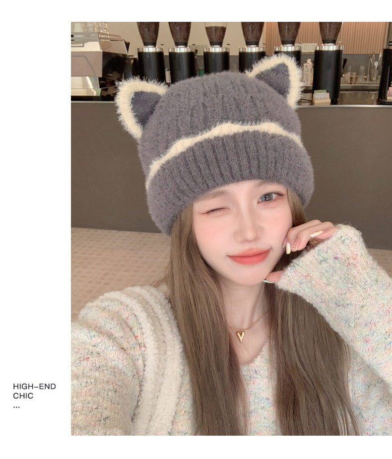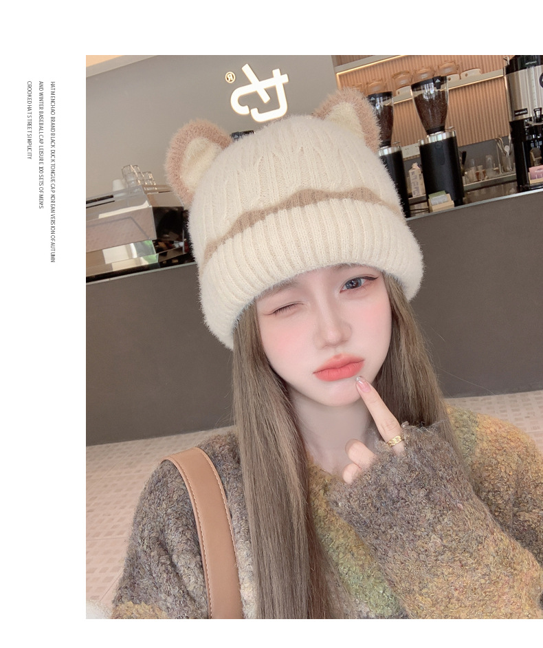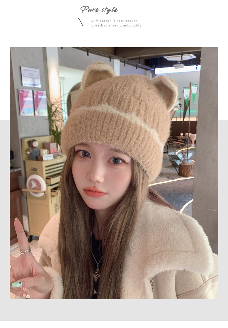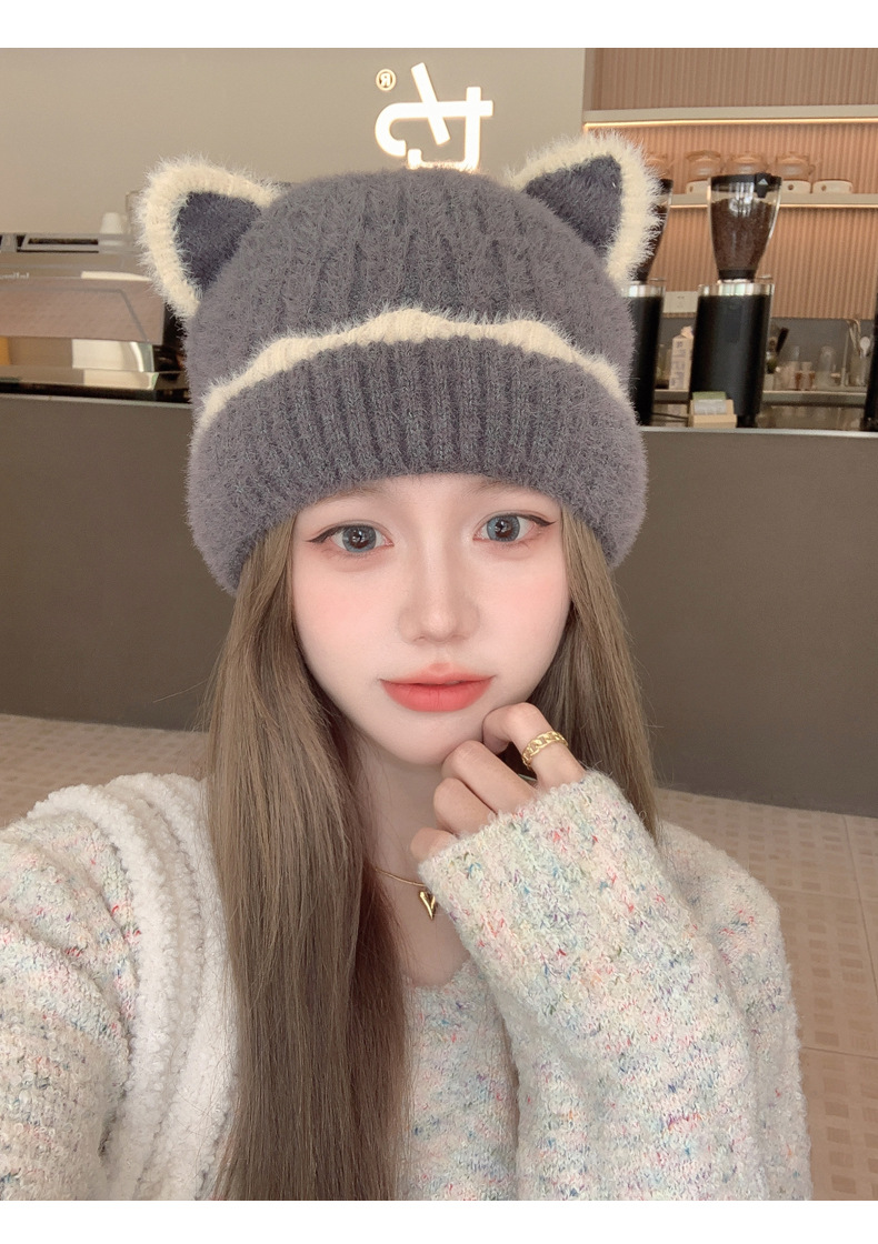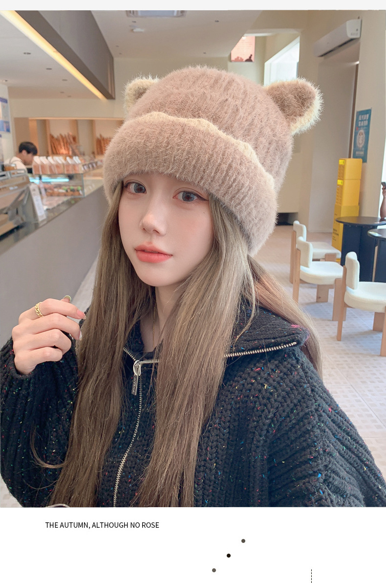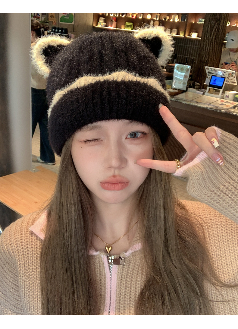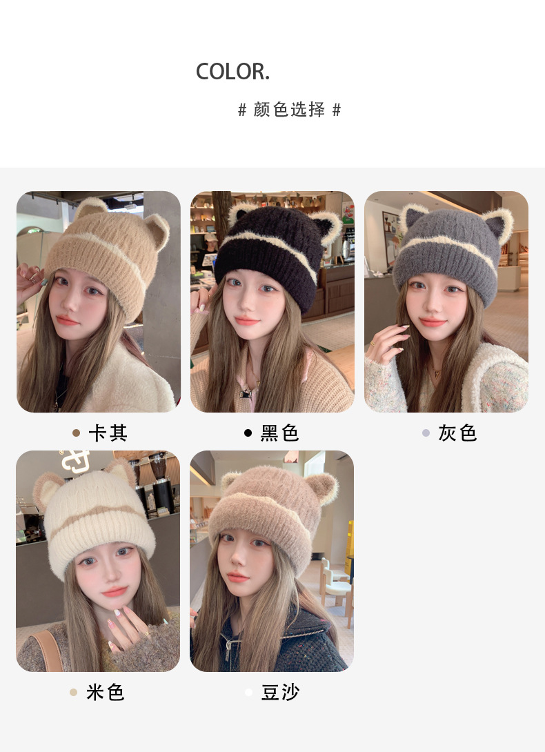 韩版秋冬新款【可爱耳朵帽子】日系针织毛线帽 冬季保暖大头围防寒帽