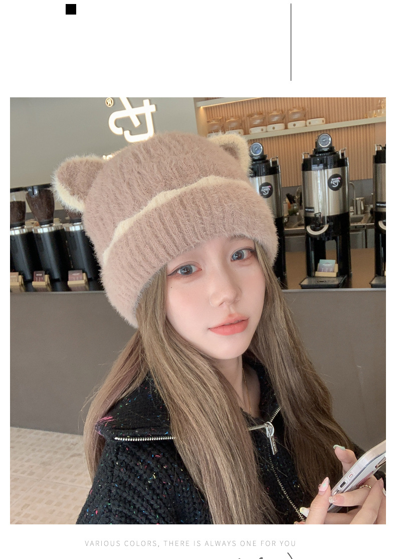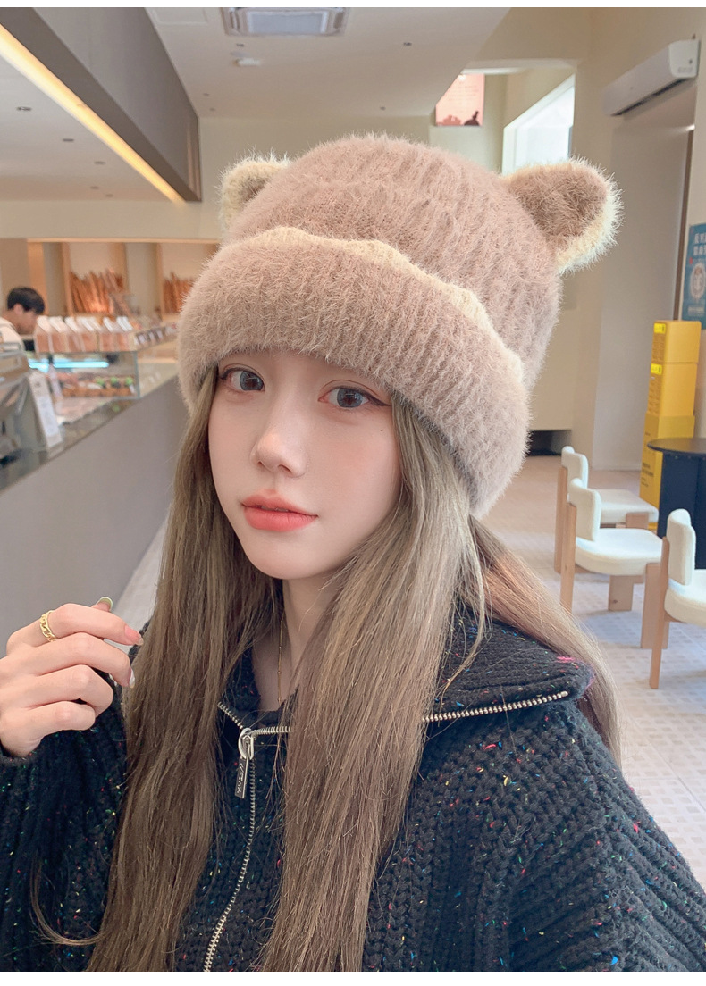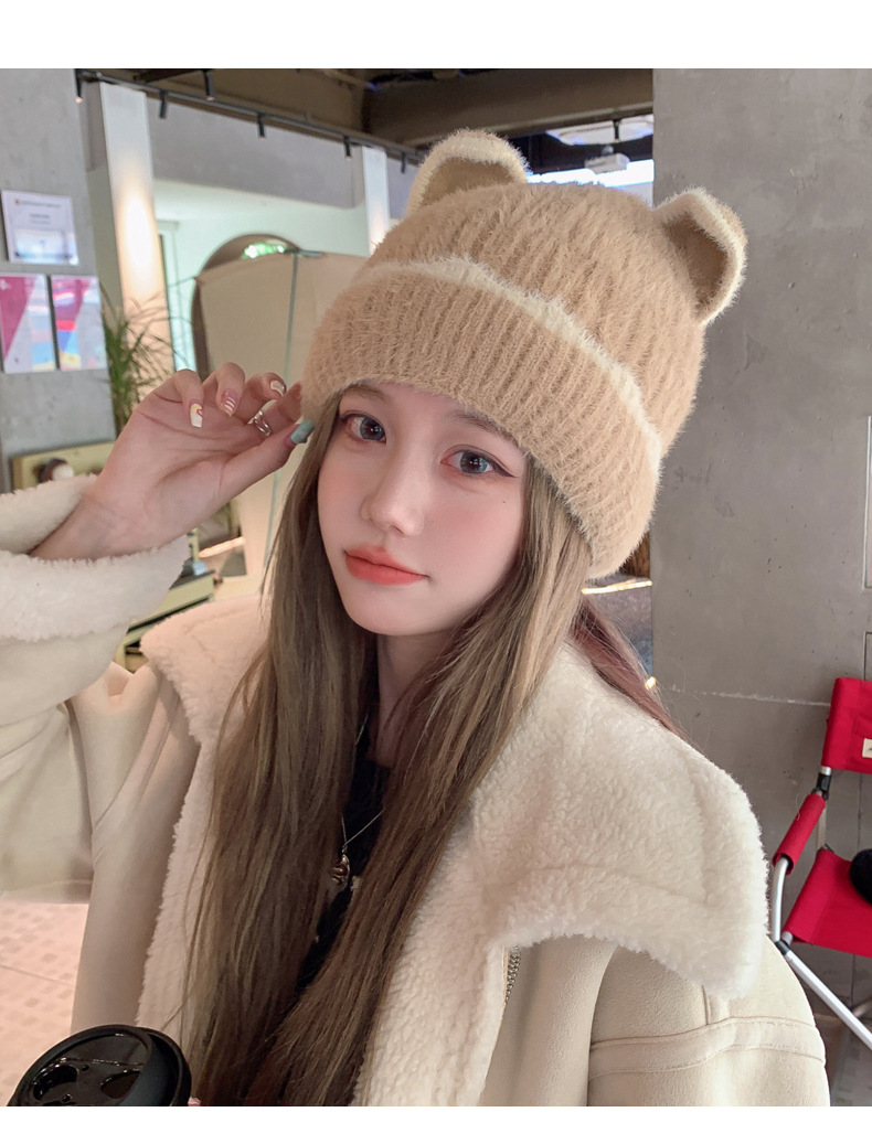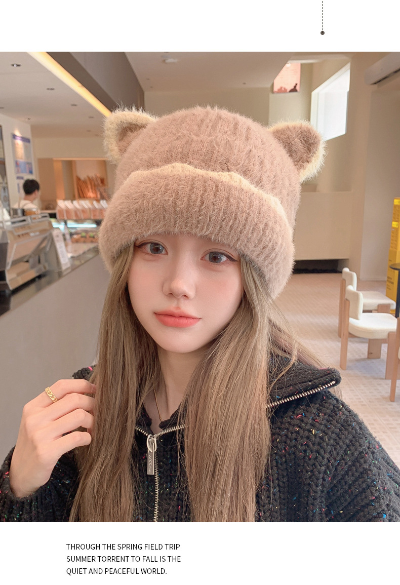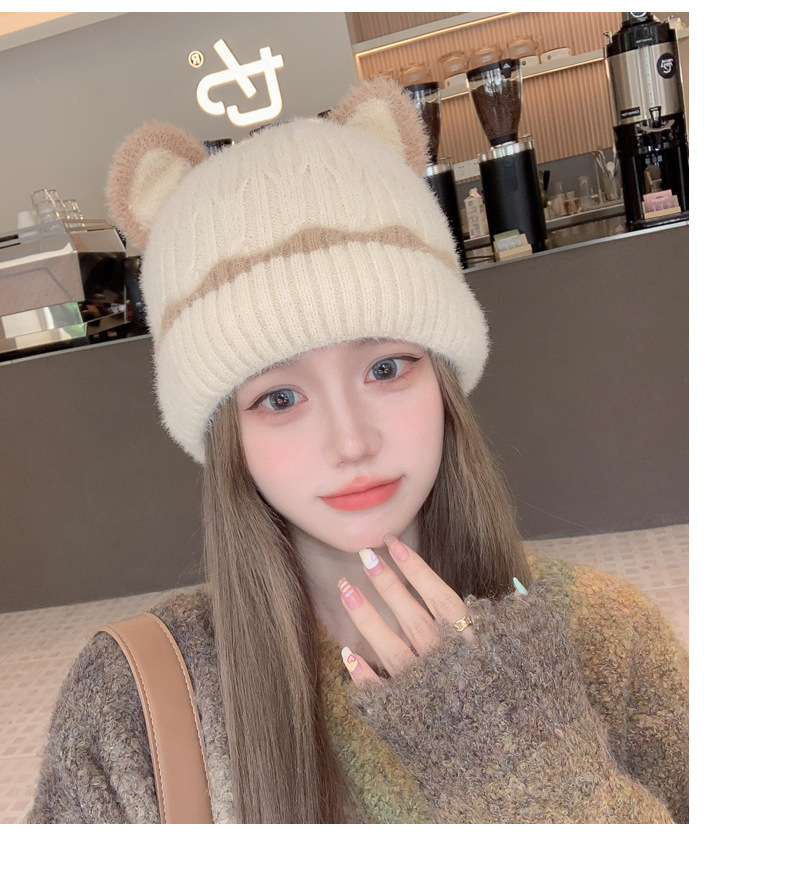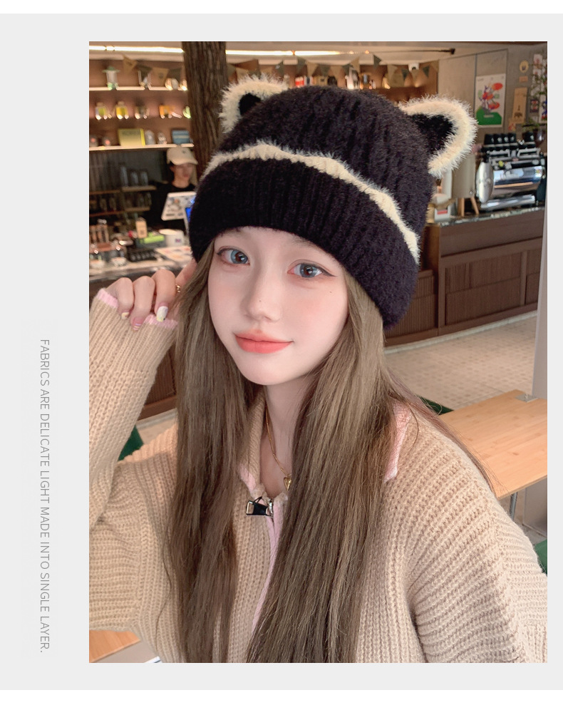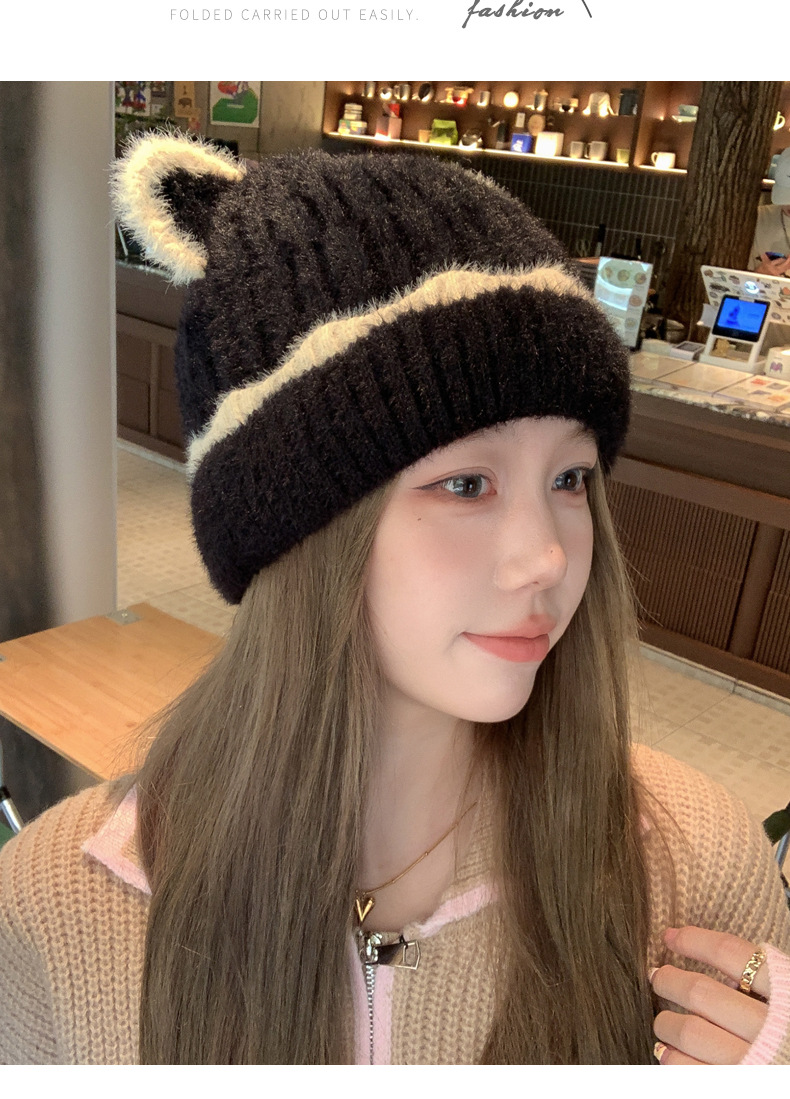 韩版秋冬新款【可爱耳朵帽子】日系针织毛线帽 冬季保暖大头围防寒帽