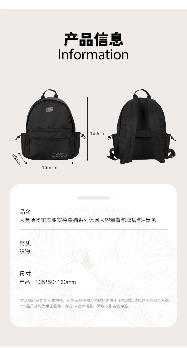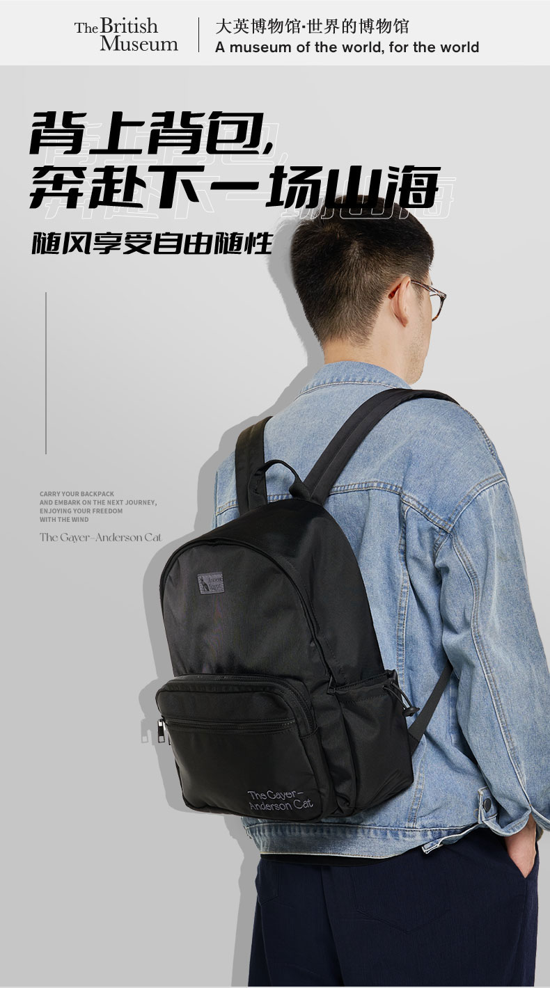 大英博物馆 盖亚·安德森猫系列 休闲 大容量背包 双肩包-黑色