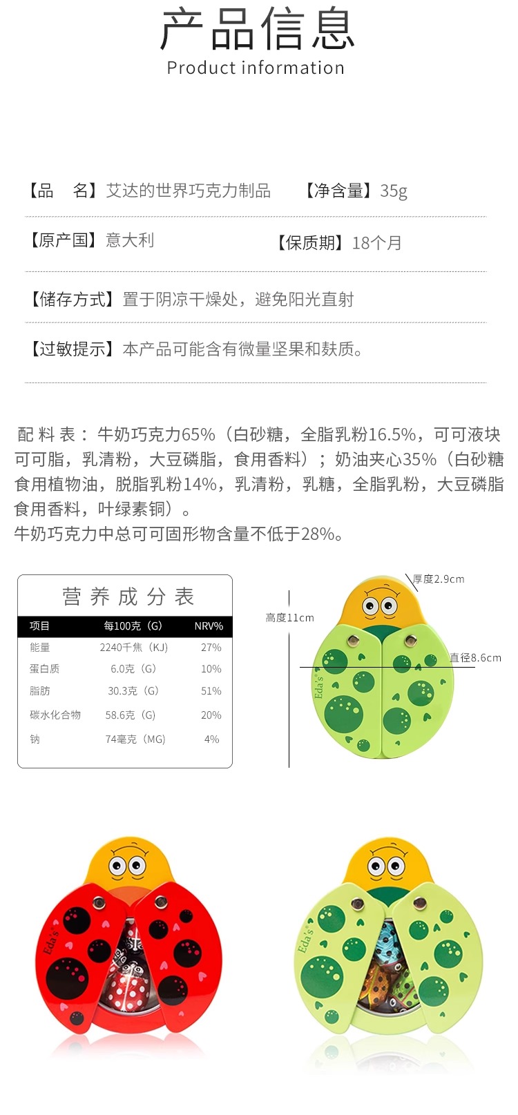 艾达的世界巧克力制品35g 迷你红罐/迷你绿罐/迷你粉罐甲壳虫造型 045226/045227