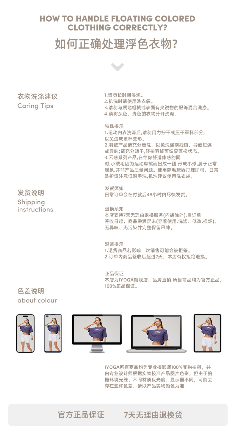 IYOGA品牌的产生源于对瑜伽以及各种运动的热爱, 并努力把瑜伽运动的理念,融入于服装的每一个细节与每一个工艺之中。我们的设计结合了瑜伽运动,休闲时尚,健身跑步等因素,让服装对运动起到良好的保护。