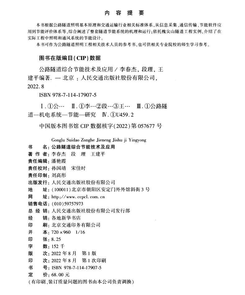 书名:公路隧道综合节能技术及应用