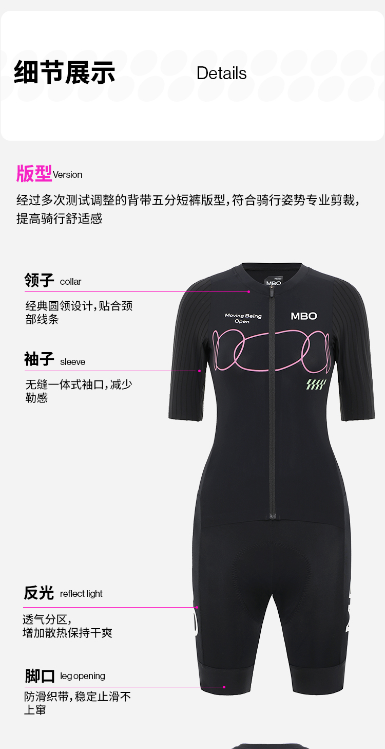 MBO女子短袖短裤连体服TC511 PRO竞速凉感短袖短裤连体服 25年春夏新款 (经销商专拍链接,非经销商拍单不发货)