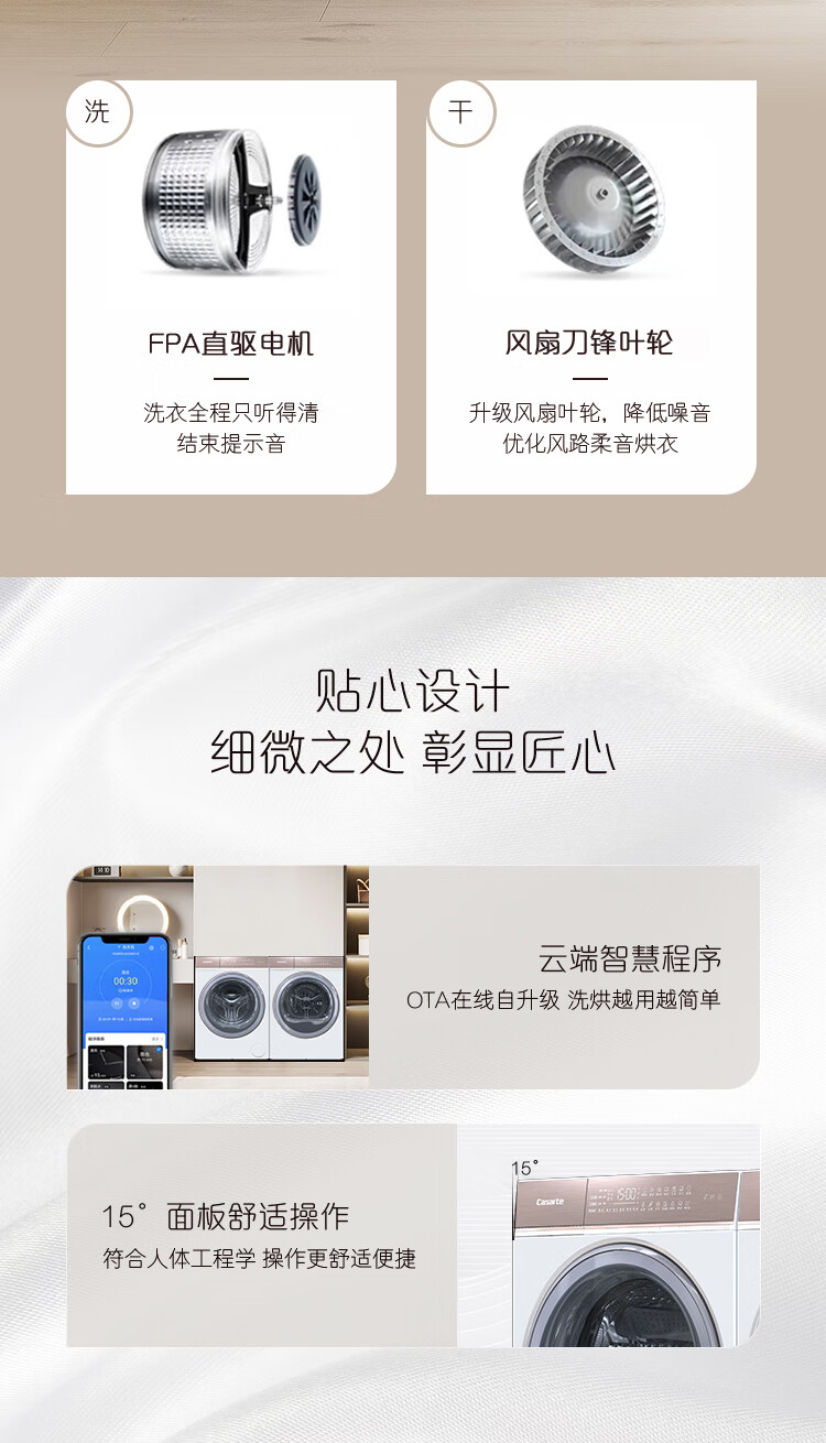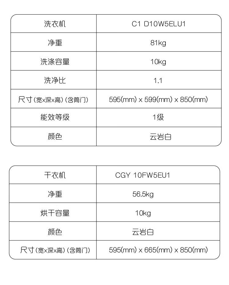 卡萨帝光年平嵌洗烘套装10Kg超薄滚筒洗衣机+10Kg家用热泵烘干机组合C1 D10W5ELU1 +CGY 10FW5EU1