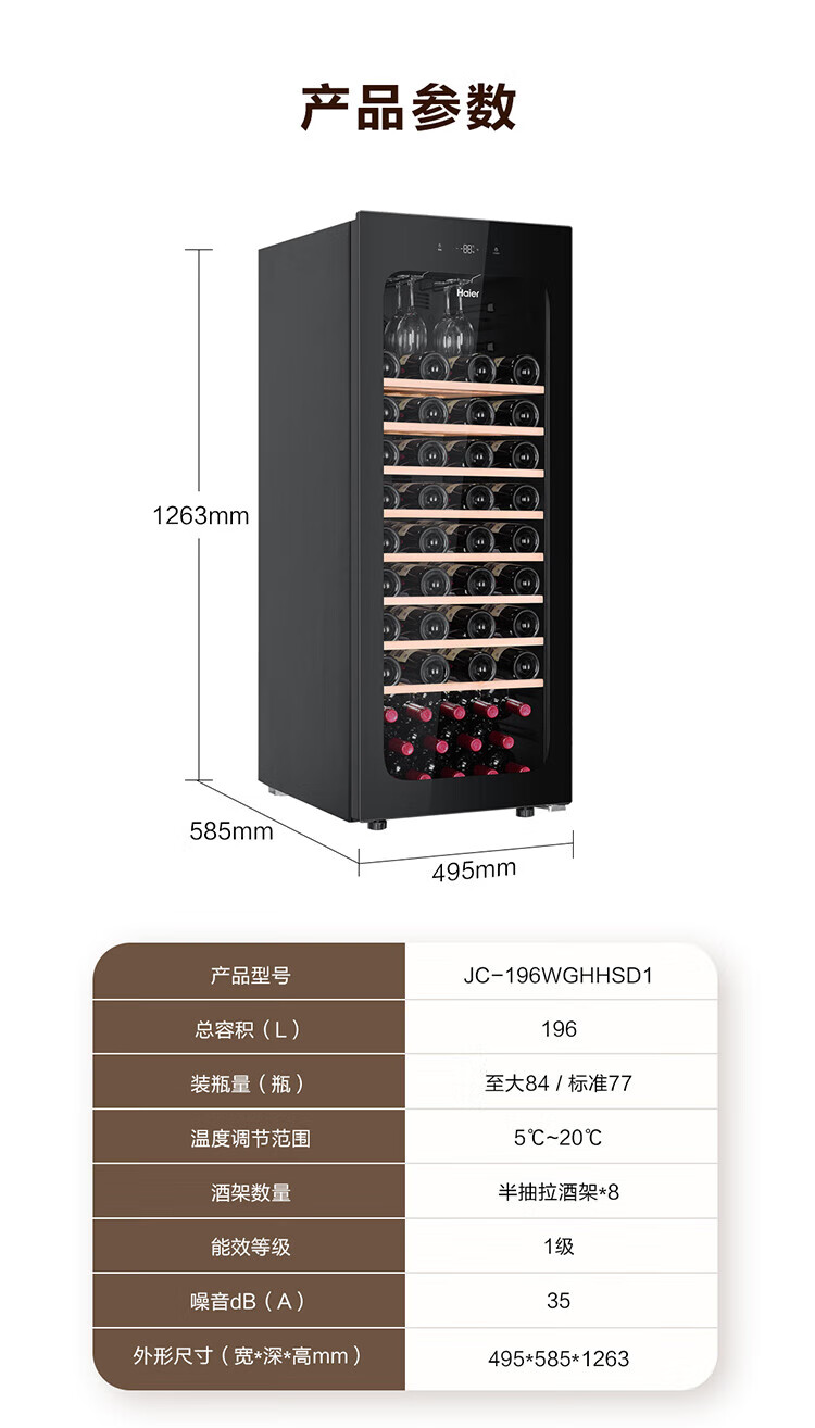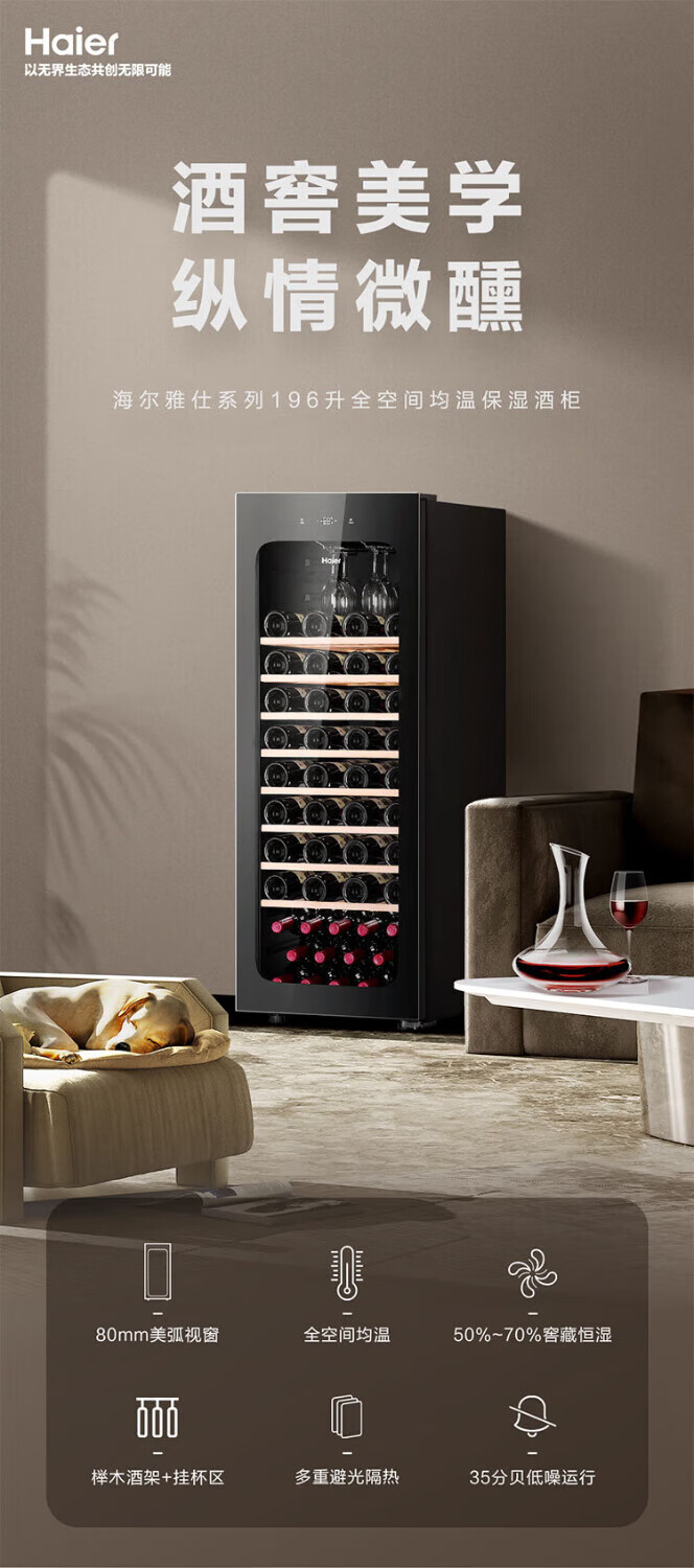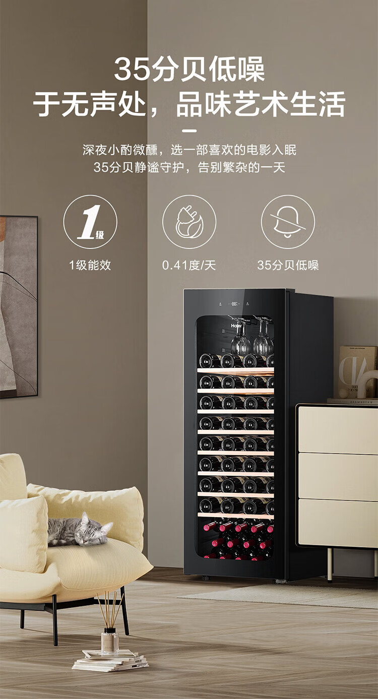 海尔(Haier)【新品立减】海尔恒温保湿红酒柜家用风冷无霜冷藏保鲜柜压缩机制冷展示柜葡萄酒红酒柜茶叶雪茄柜 【新品】风冷无霜+84瓶全域均温+带杯架 196L