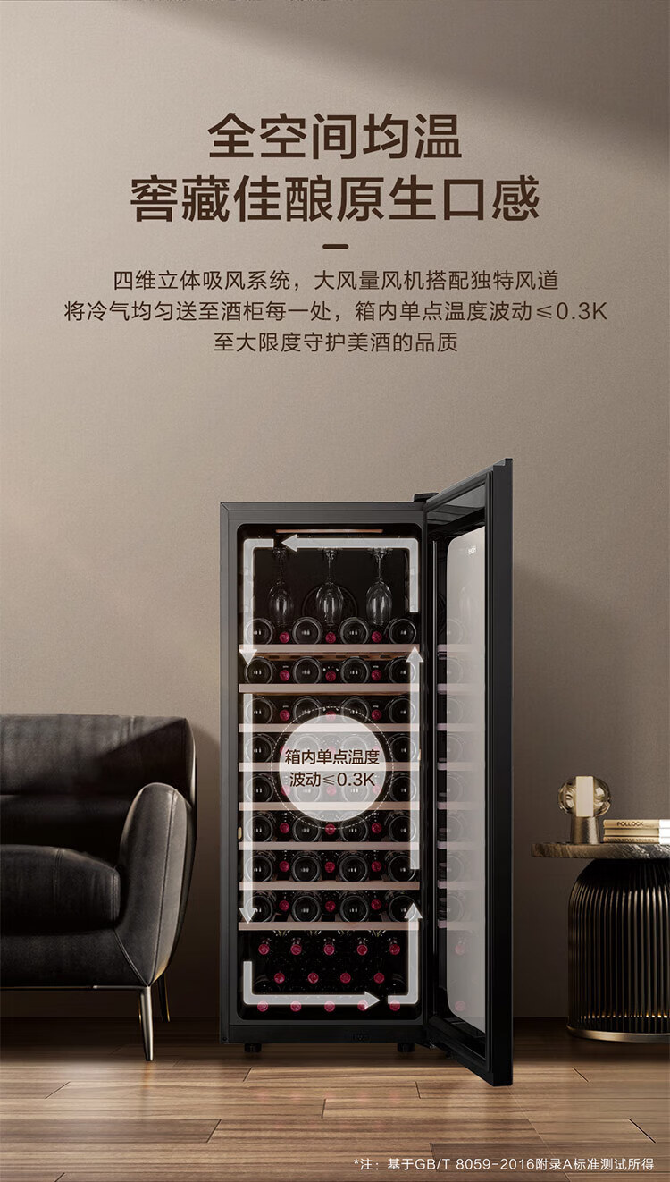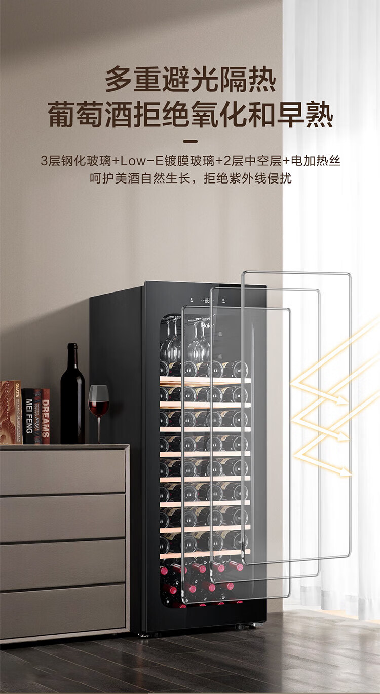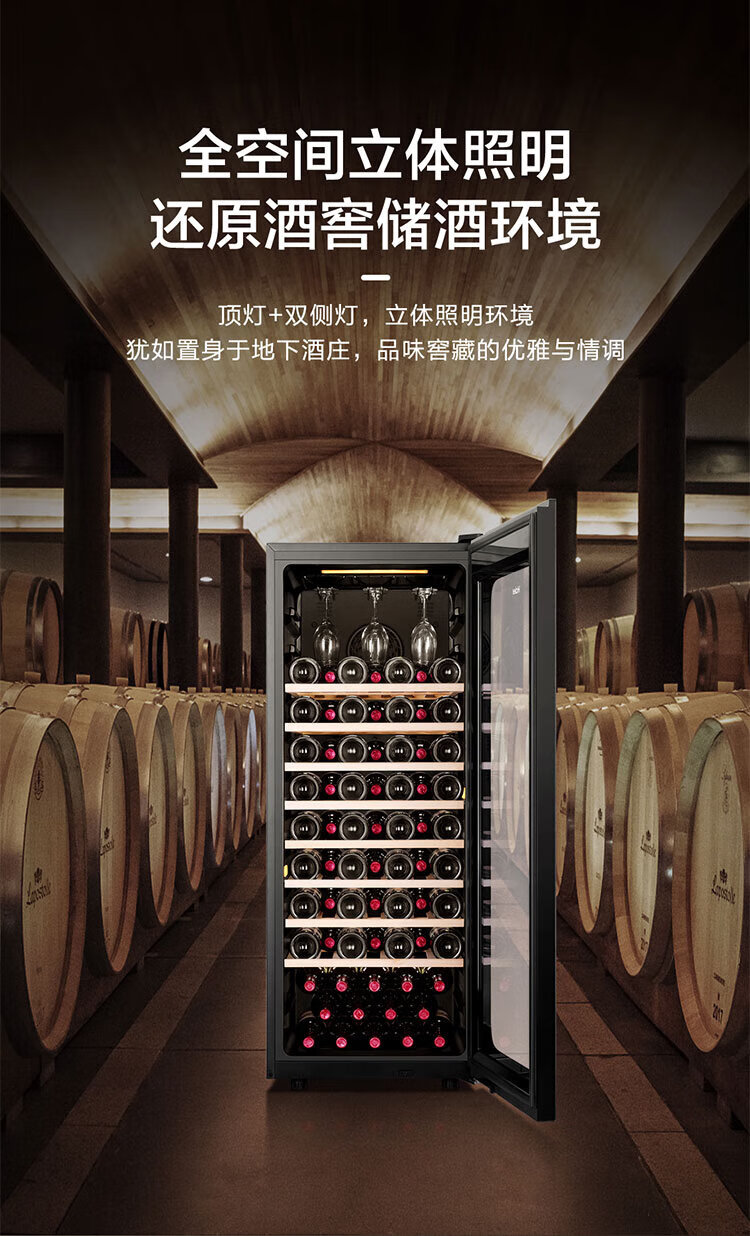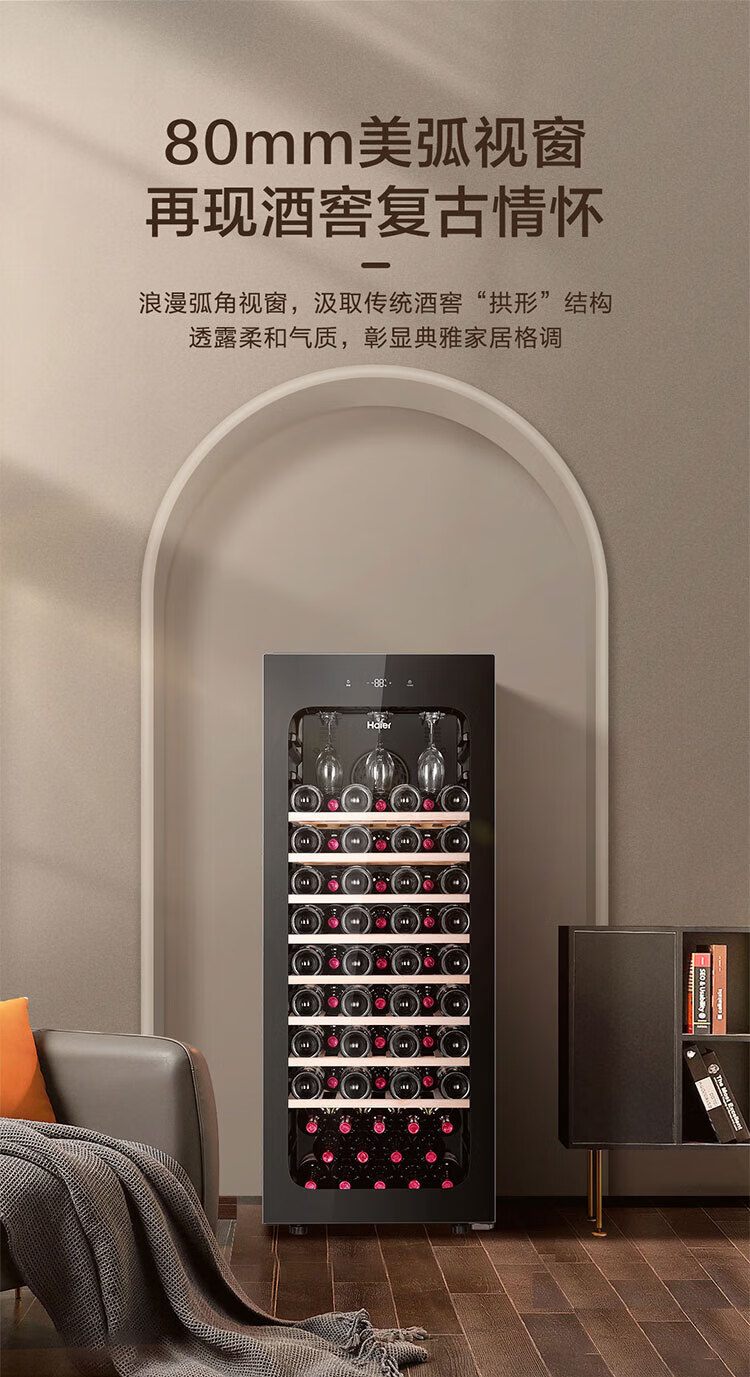 海尔(Haier)【新品立减】海尔恒温保湿红酒柜家用风冷无霜冷藏保鲜柜压缩机制冷展示柜葡萄酒红酒柜茶叶雪茄柜 【新品】风冷无霜+84瓶全域均温+带杯架 196L