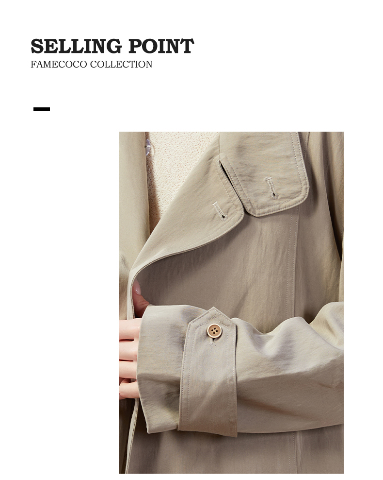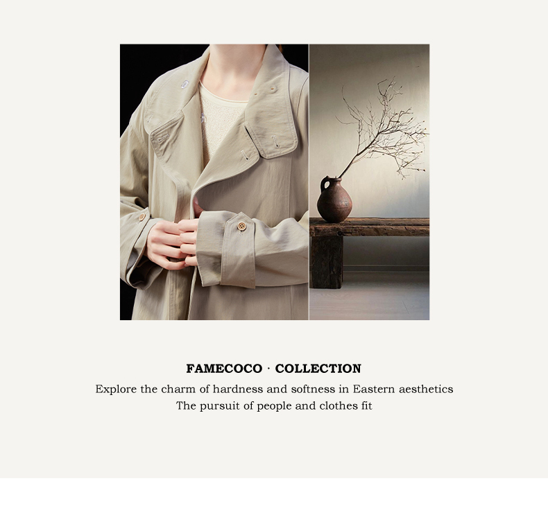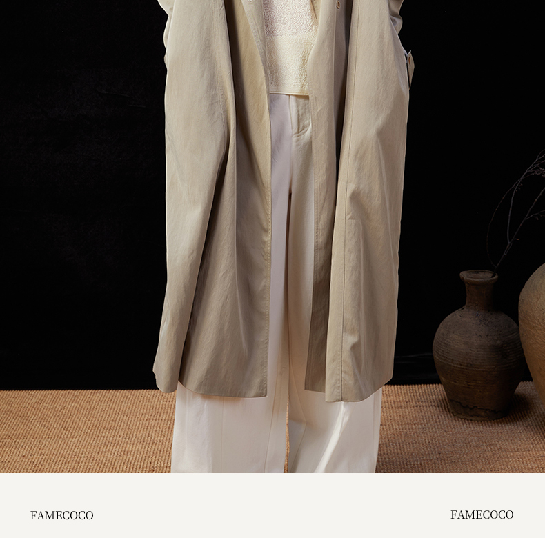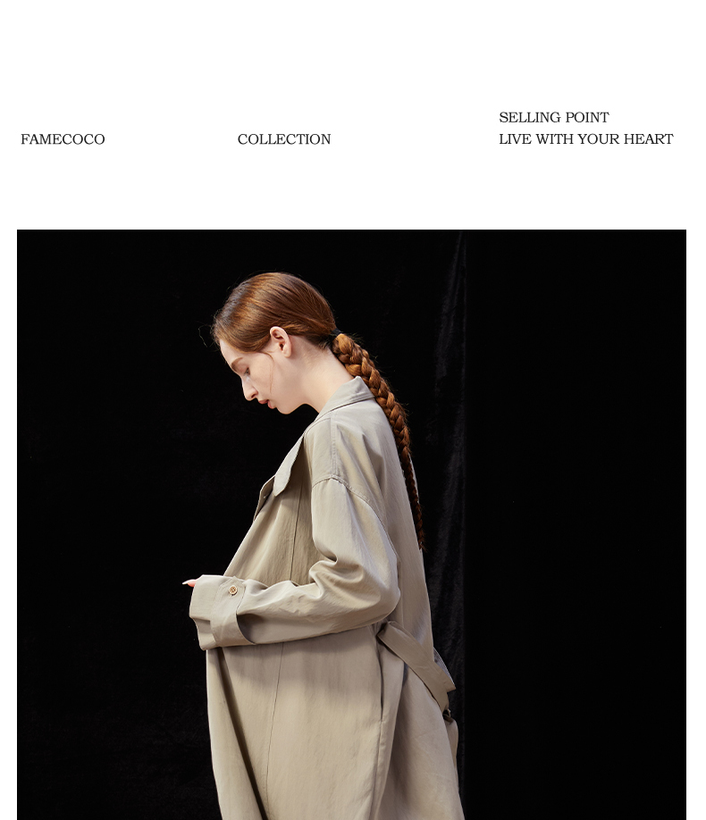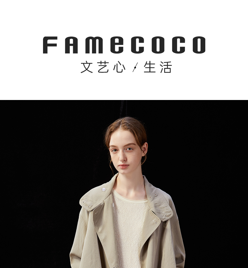 Famecoco范可儿简约通勤长款立领风衣外套宽松慵懒范 FAD1AT010