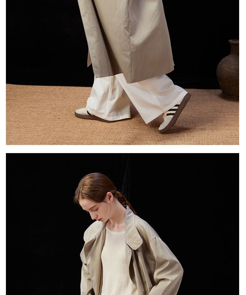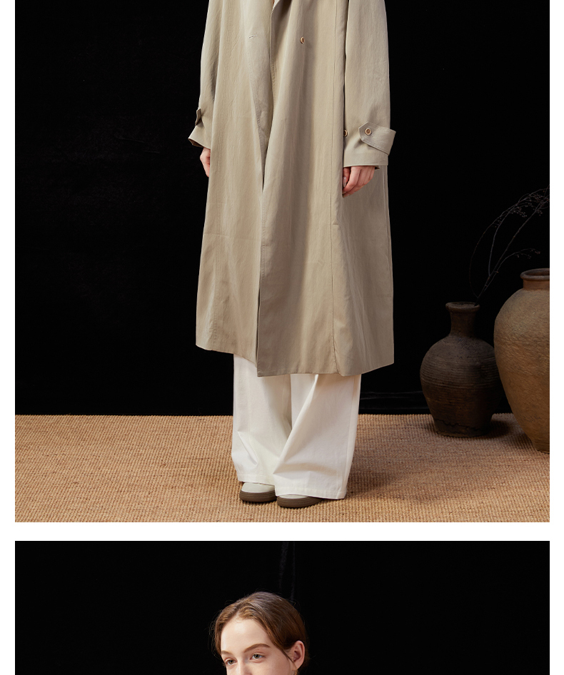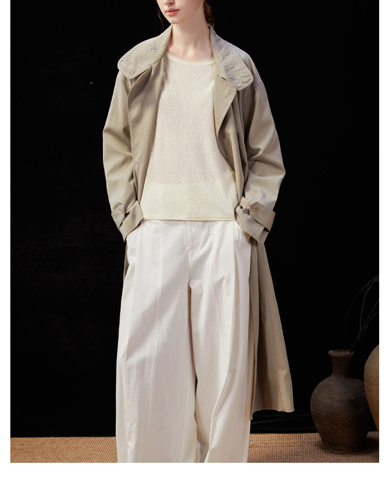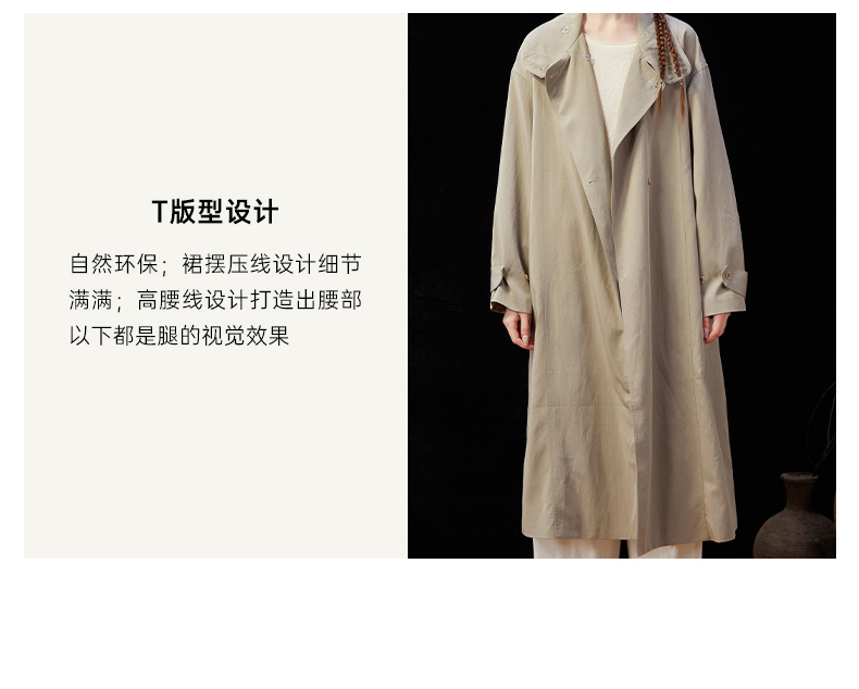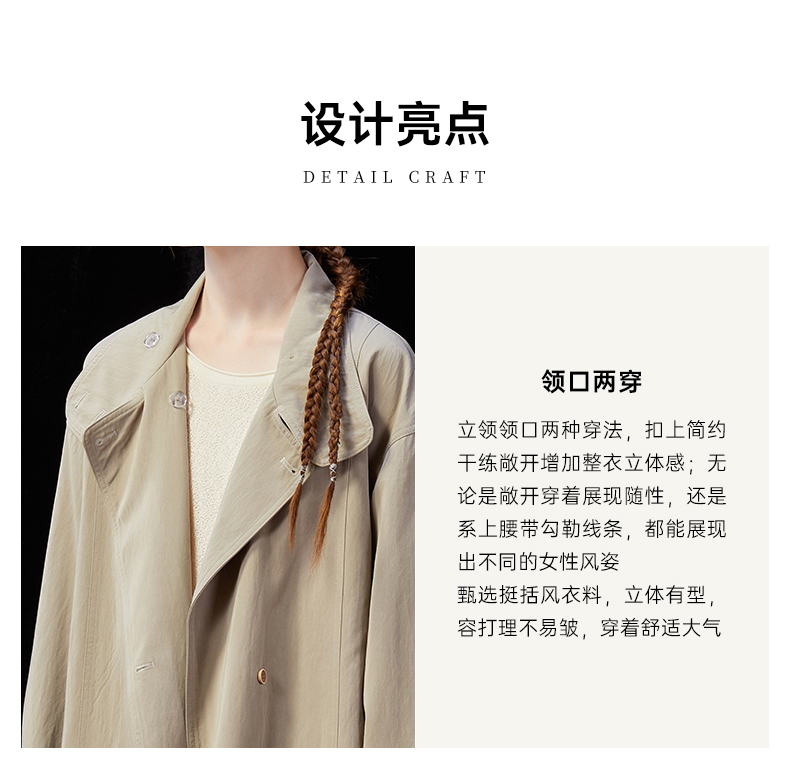 Famecoco范可儿简约通勤长款立领风衣外套宽松慵懒范 FAD1AT010
