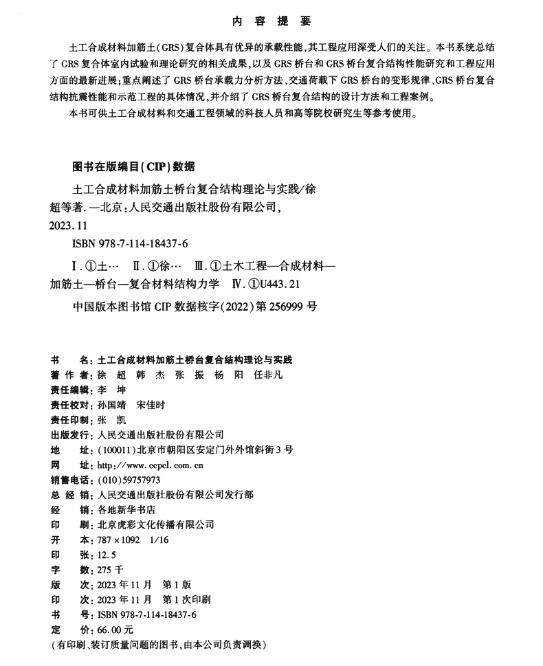 书名:土工合成材料加筋土桥台复合结构理论与实践