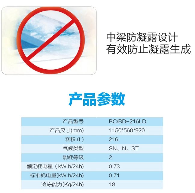 cdfh0821pfj 海尔Leader 216升 单温冷柜 电冰柜 蝶形盖 带菜篮 带内玻璃 BC/BD-216LD