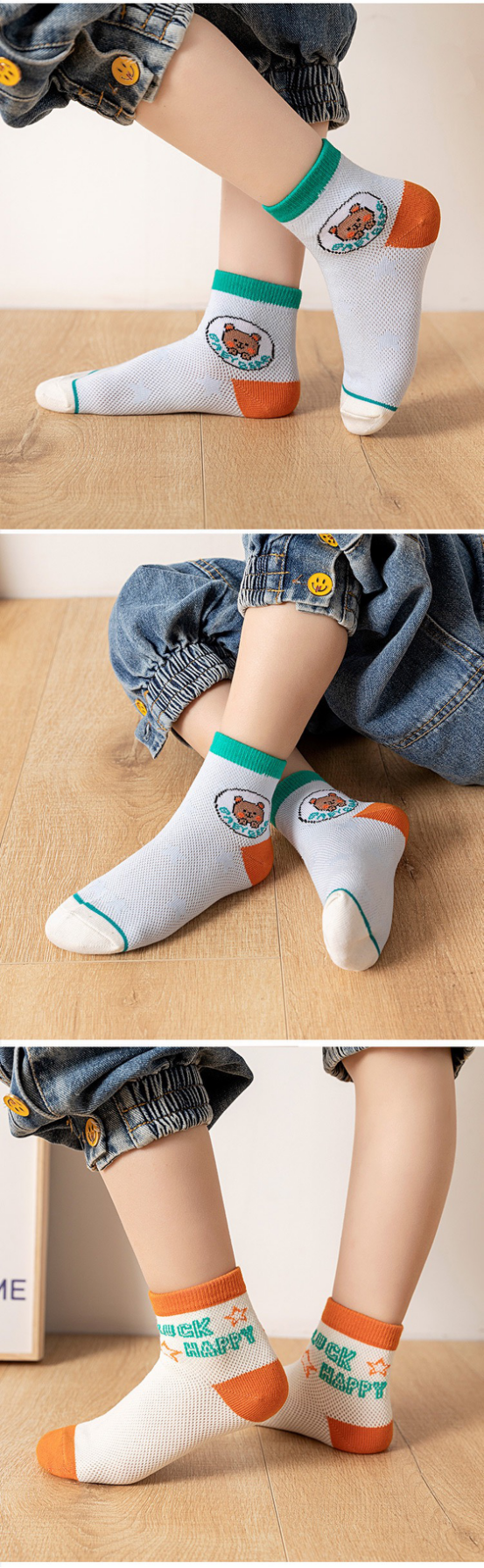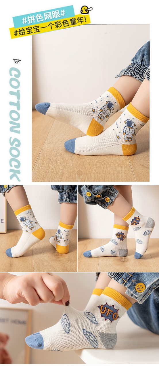 这款儿童网眼袜采用超透气设计 不仅仅是一双袜子,也是宝贝夏日里的梦幻乐园 让孩子双脚在烈日下也能自由呼吸,清爽不闷热,仿佛为宝贝的双脚安装了隐形的小风扇