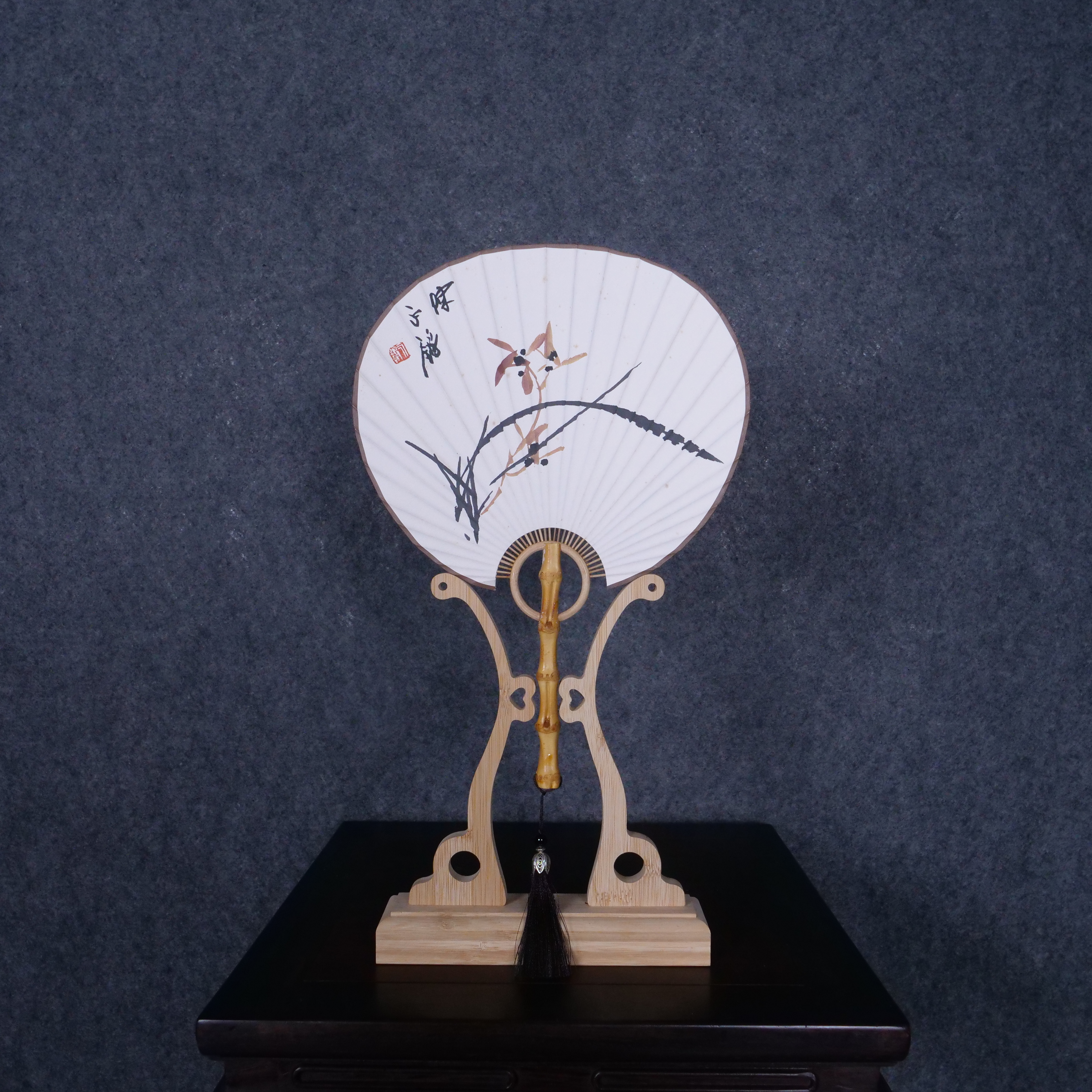 陈永锵《兰花》国画原作20CM*25CM 手绘宣纸团扇花鸟作品