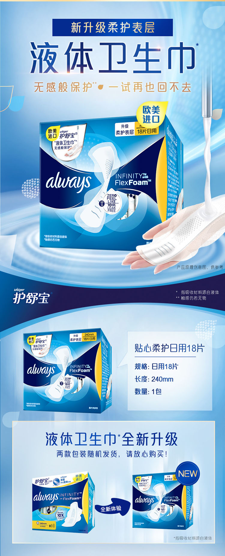 护舒宝(ALWAYS)日用 未来感·极护液体卫生巾 240MM 18片(BJ)