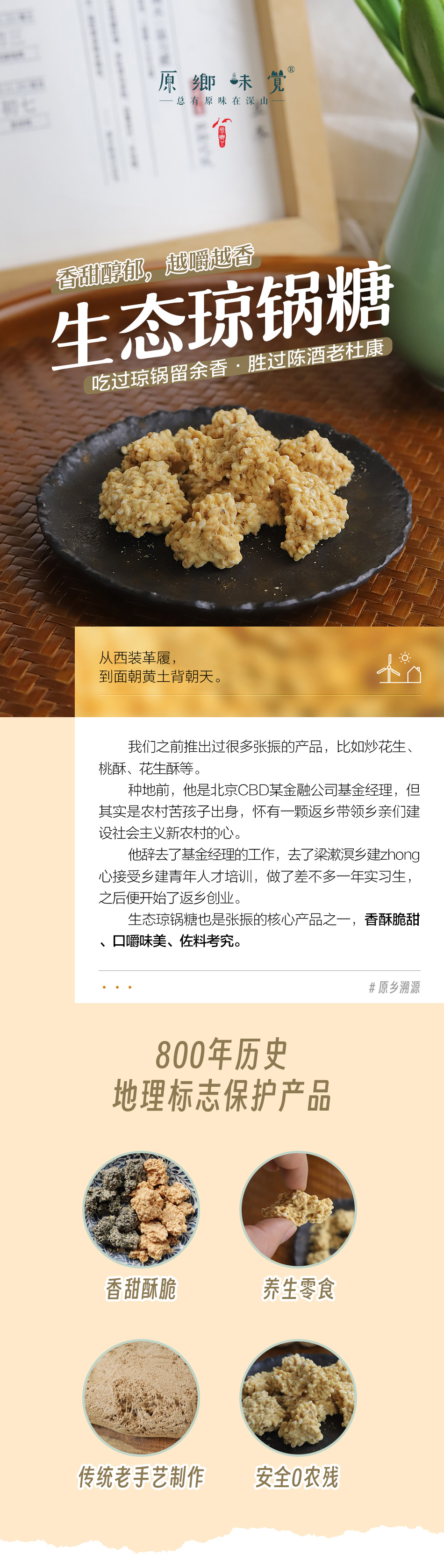 - 【总有原味在深山】——原乡味觉,追寻自然的脚步,尊重土地与时令,我们翻山越岭,深入原乡,回到食材的原籍,守候食味的初相,让我们再一次发现人与食物的美好关系!物尽其用,方为惜物,所有食材包装皆可重复利用