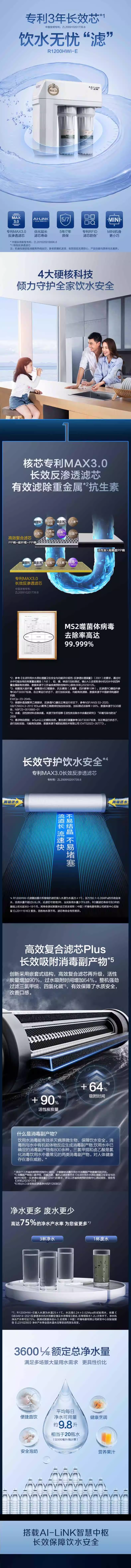 史密斯(510831)集成水路系列橱下反渗透净水机R1200HWI-E
