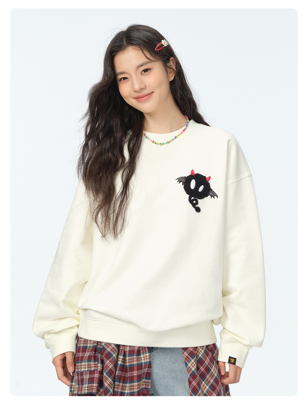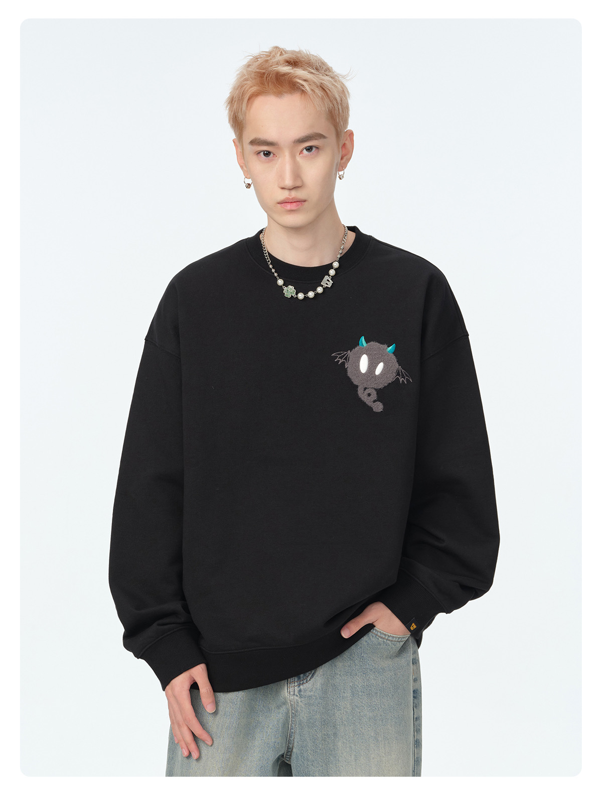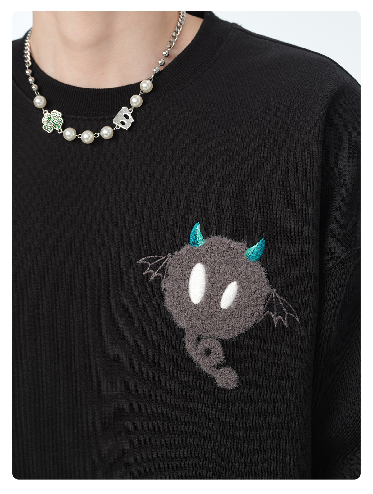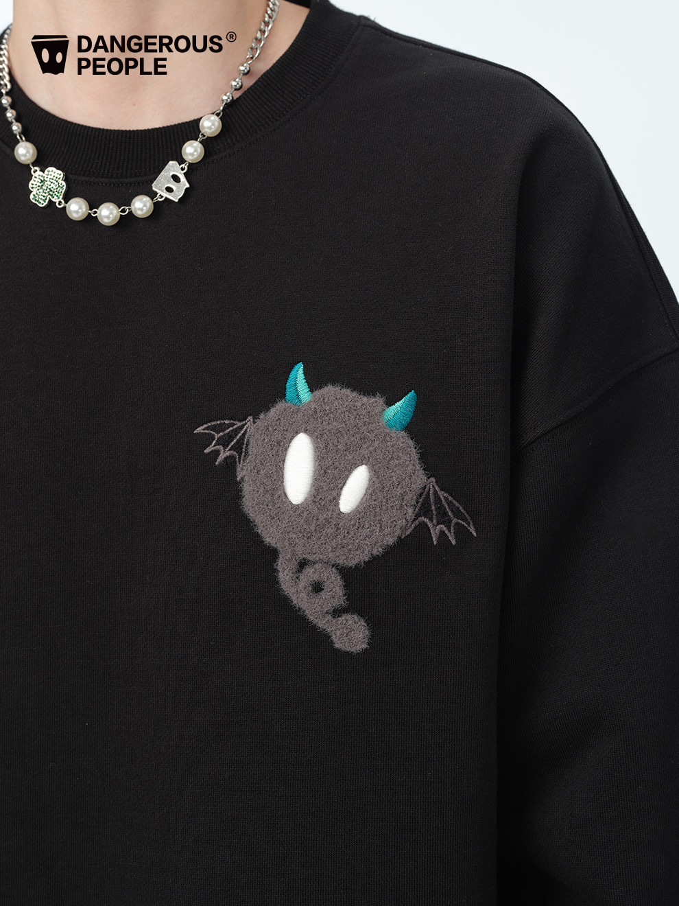 薛之谦的潮牌dsp* 纯元,胸口立体毛绒小恶魔图案,厚实纯棉软毛圈宽松圆领卫衣~