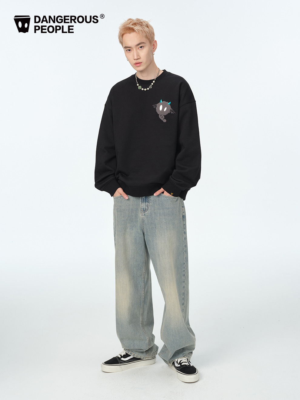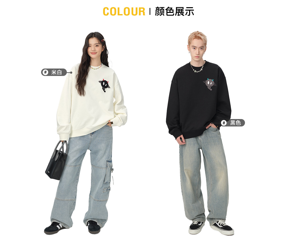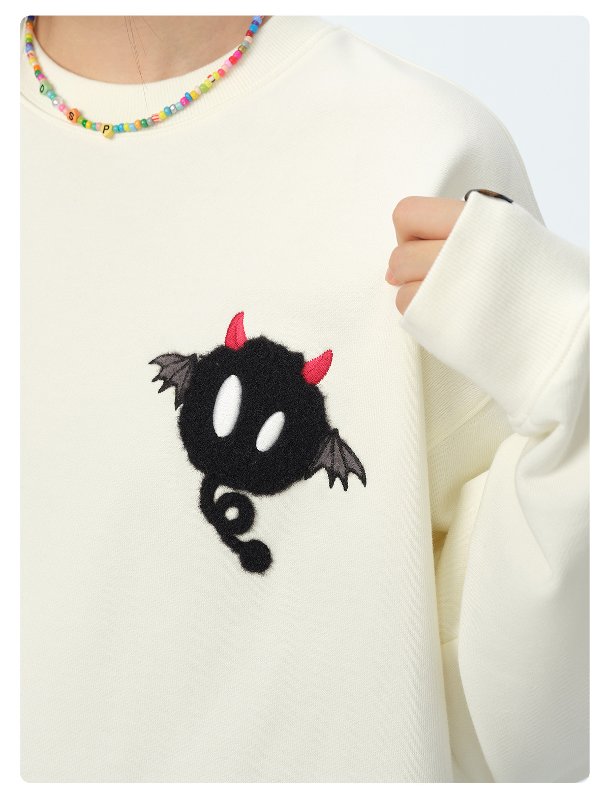 薛之谦的潮牌dsp* 纯元,胸口立体毛绒小恶魔图案,厚实纯棉软毛圈宽松圆领卫衣~