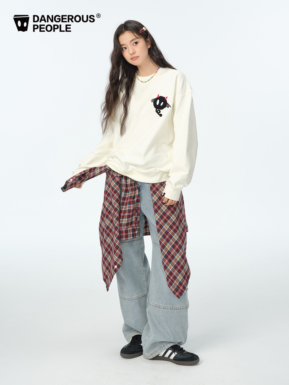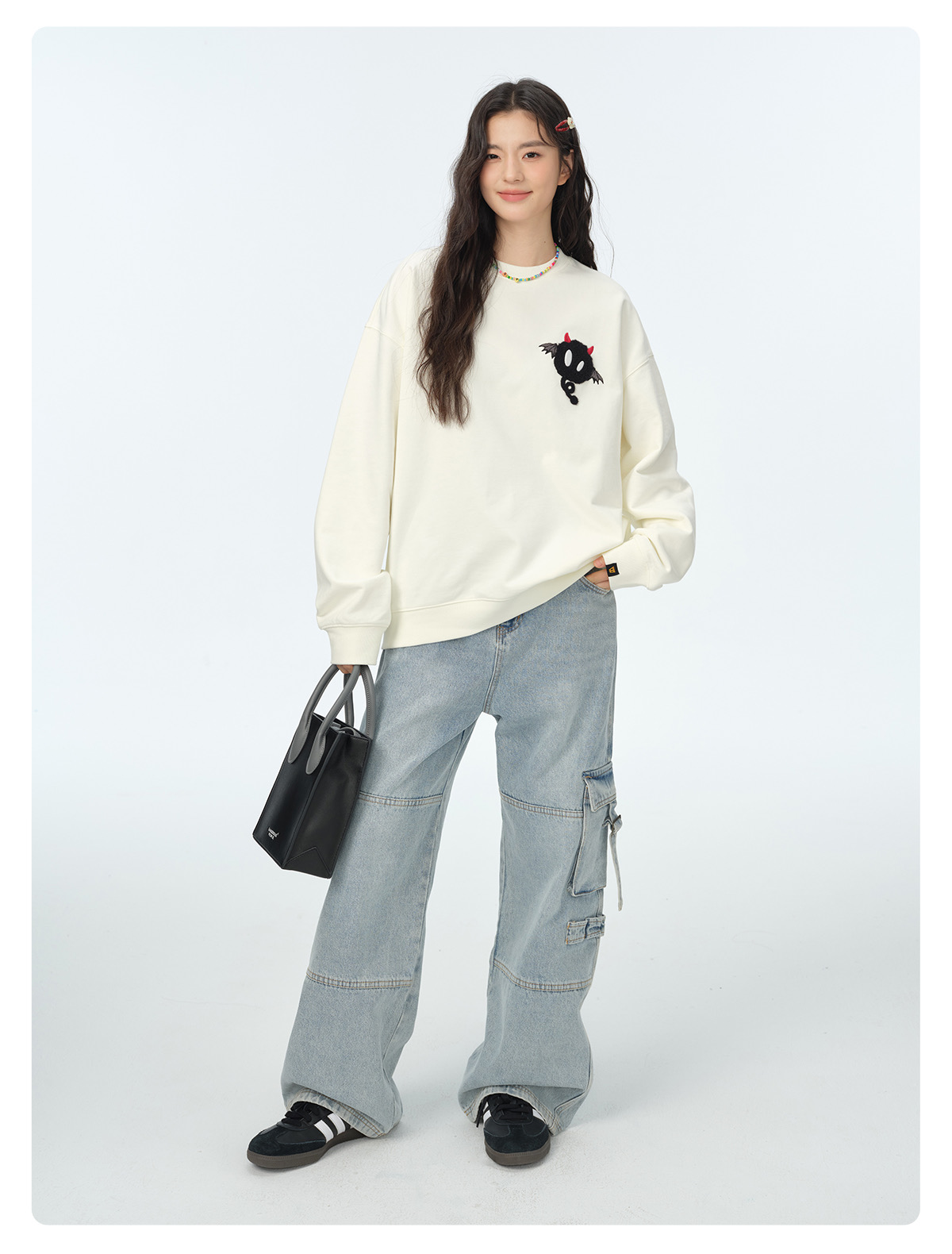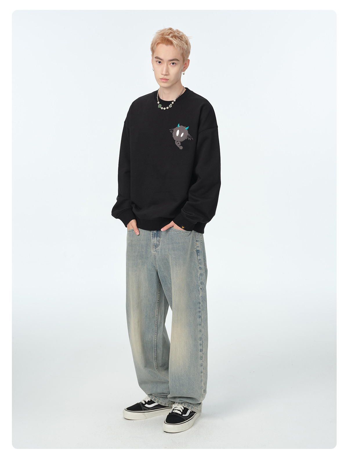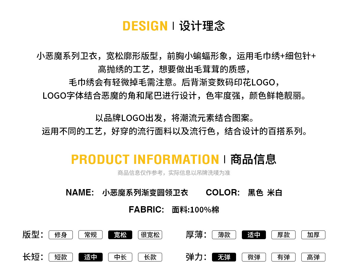 薛之谦的潮牌dsp* 纯元,胸口立体毛绒小恶魔图案,厚实纯棉软毛圈宽松圆领卫衣~