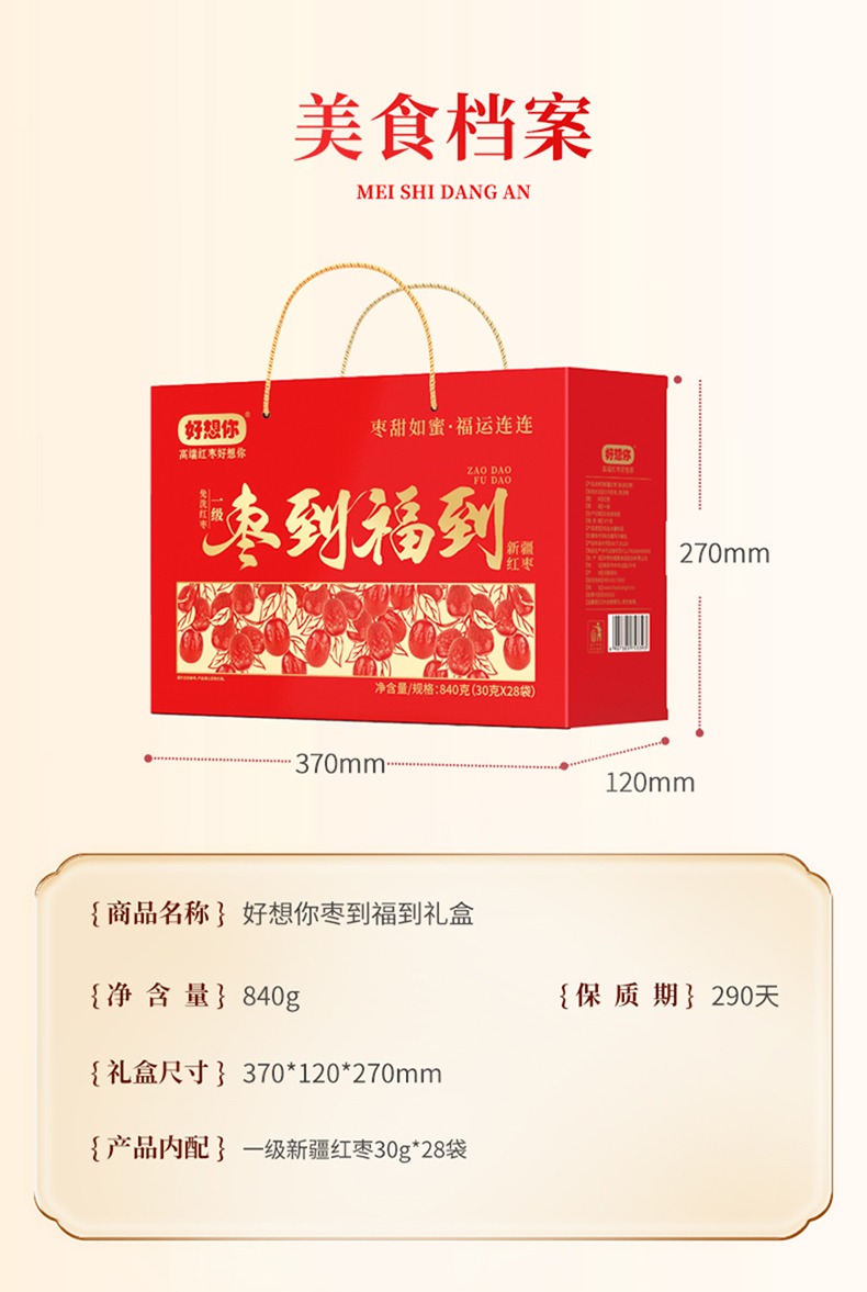 好想你枣到福到礼盒840g/盒【BH】【JM】