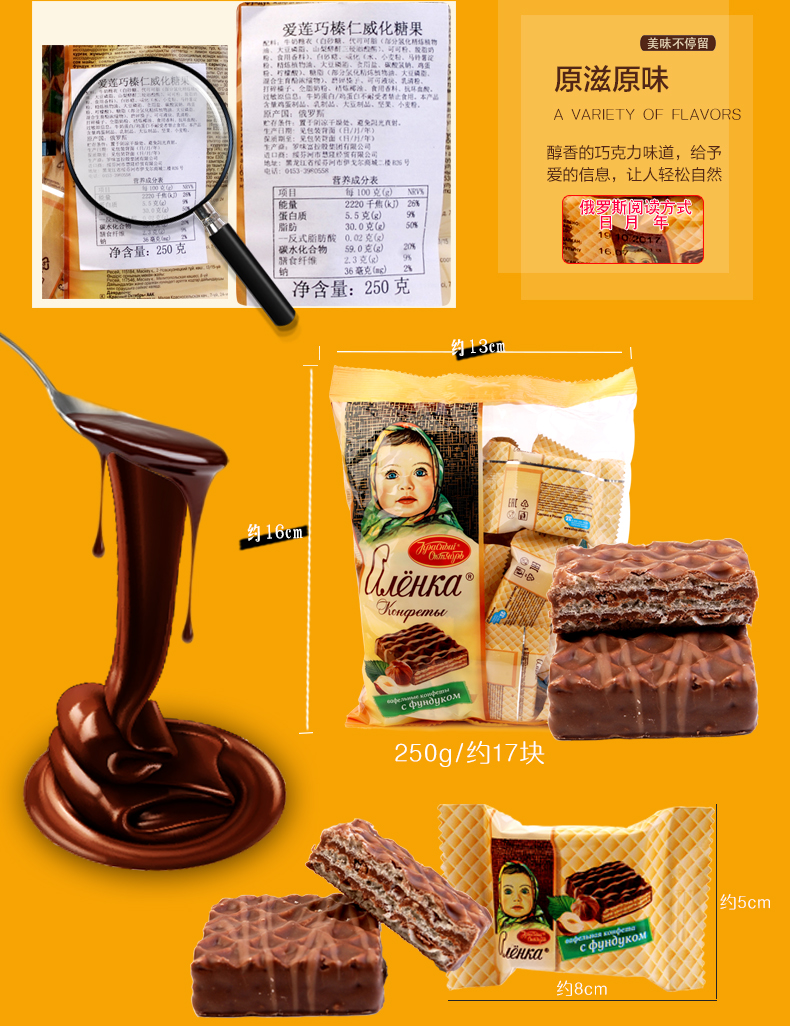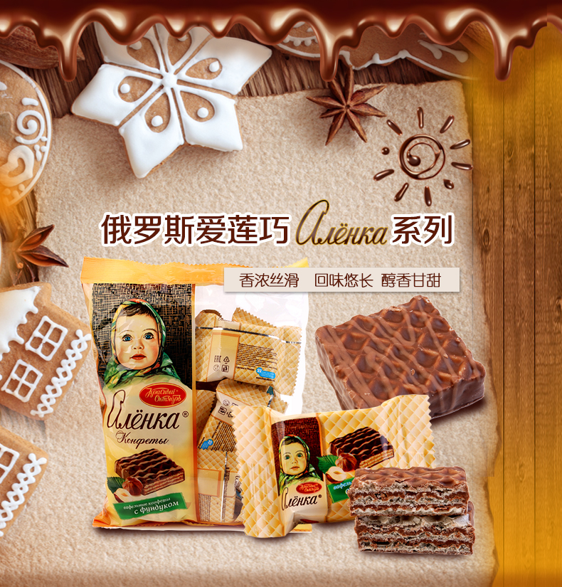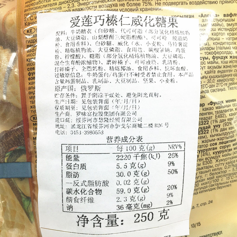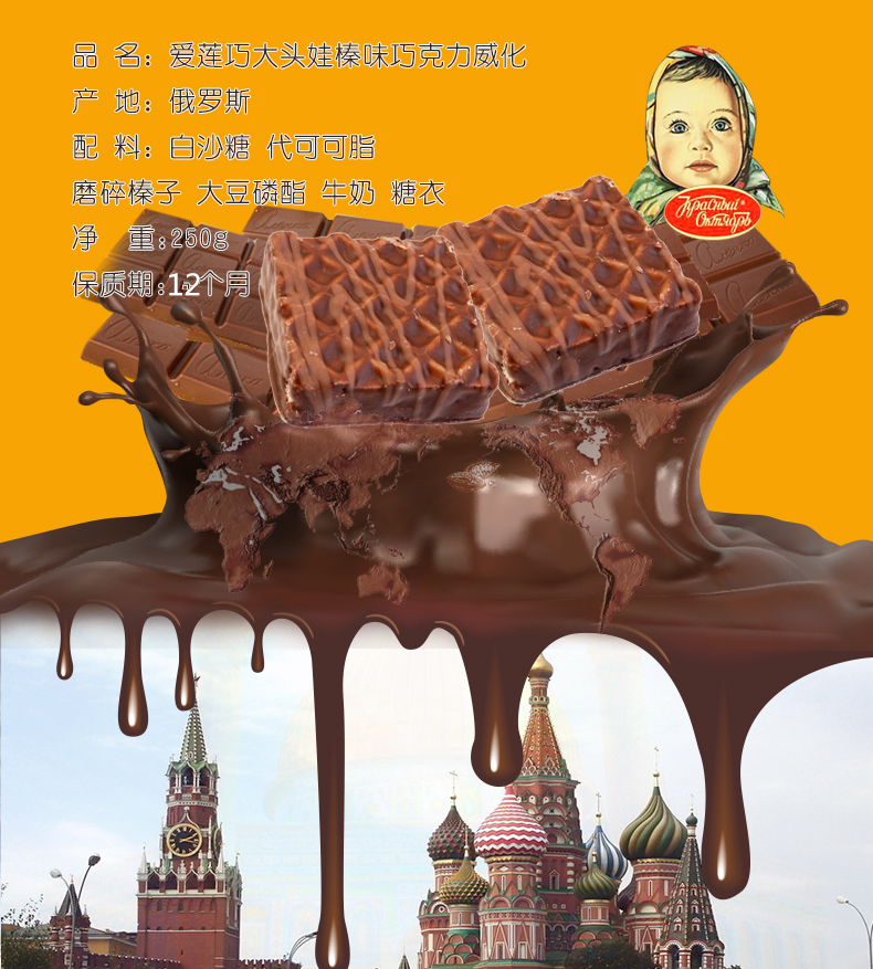 【中欧班列精选】WWJ 俄罗斯进口爱莲巧大头娃娃巧克力榛仁碎威化糖果 250g