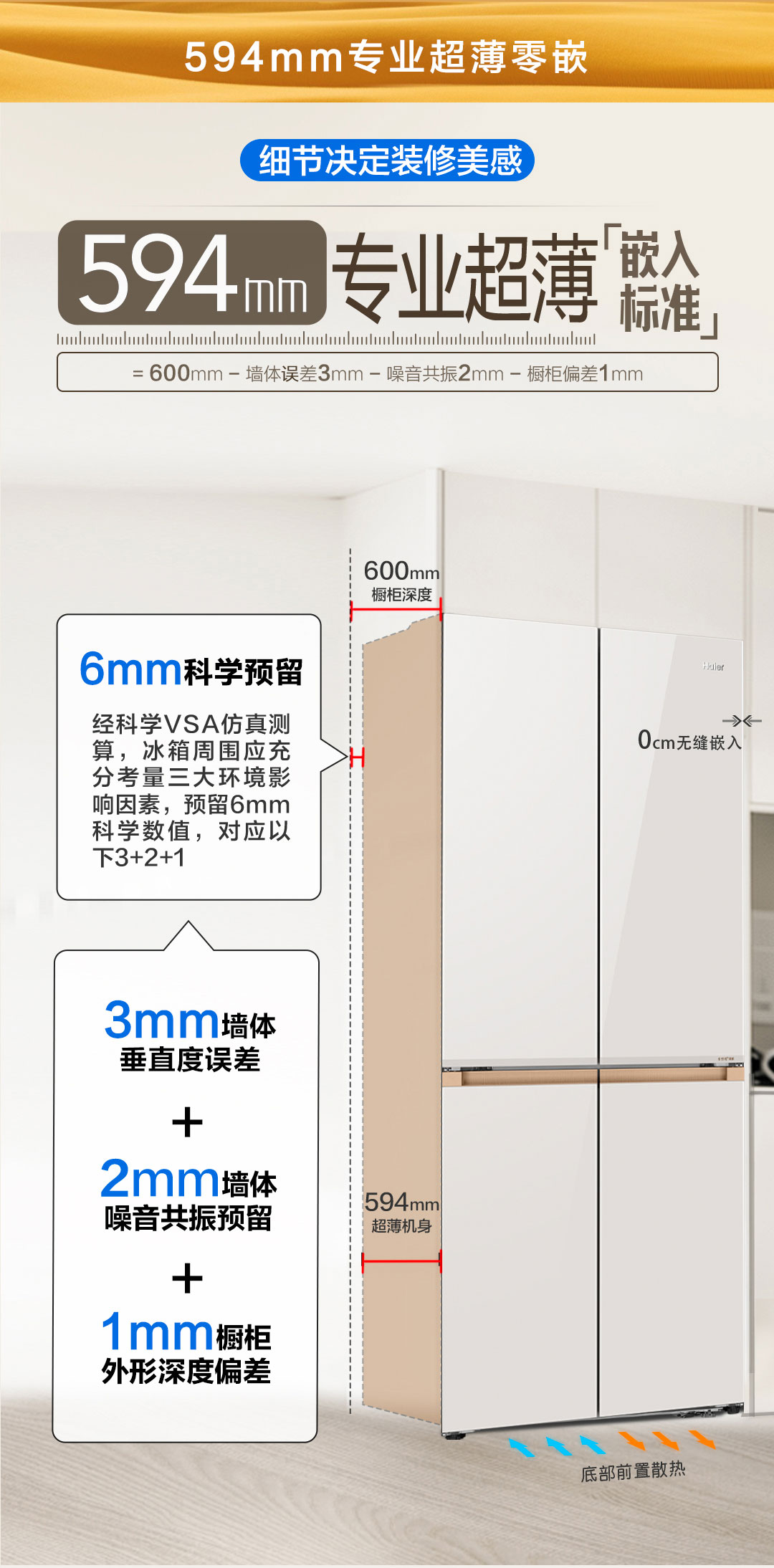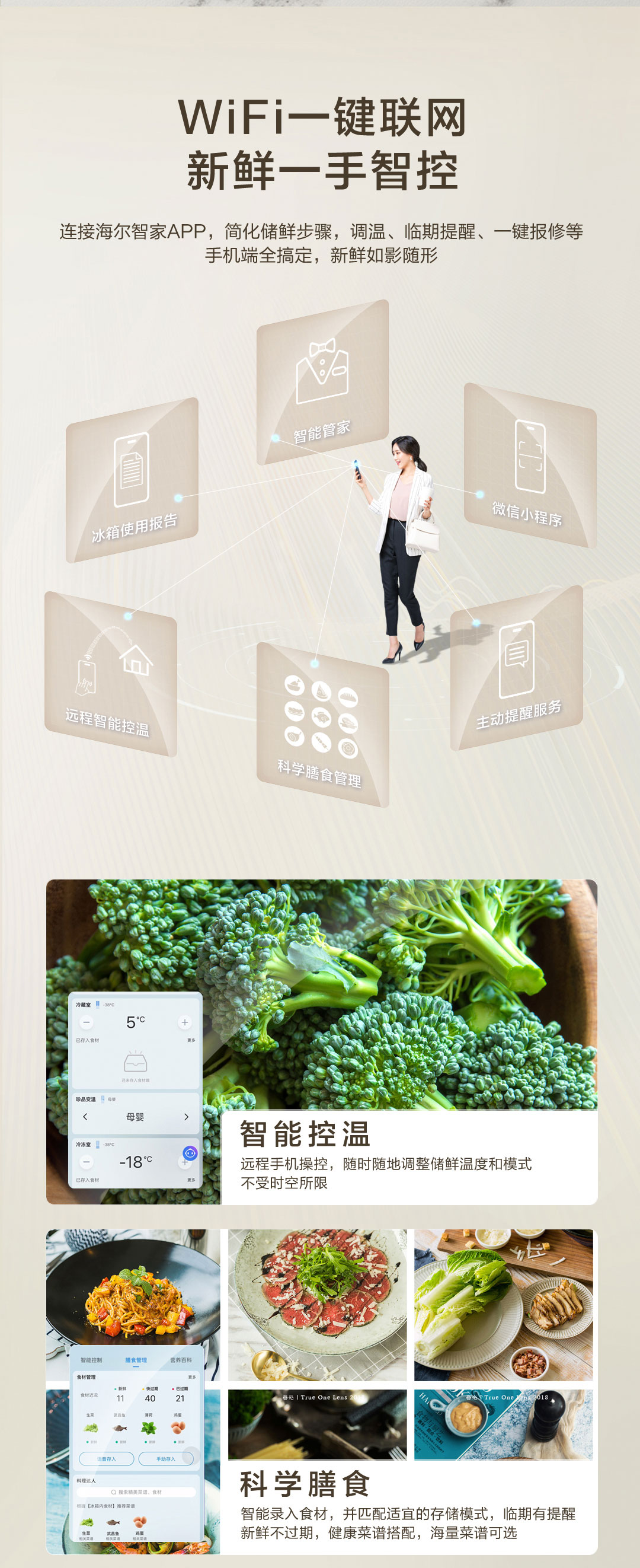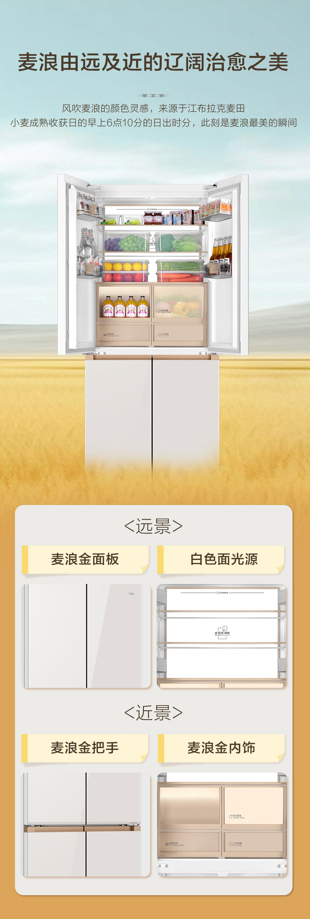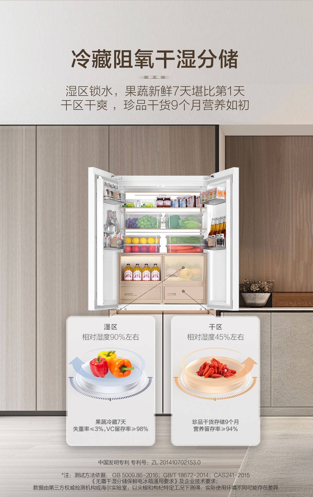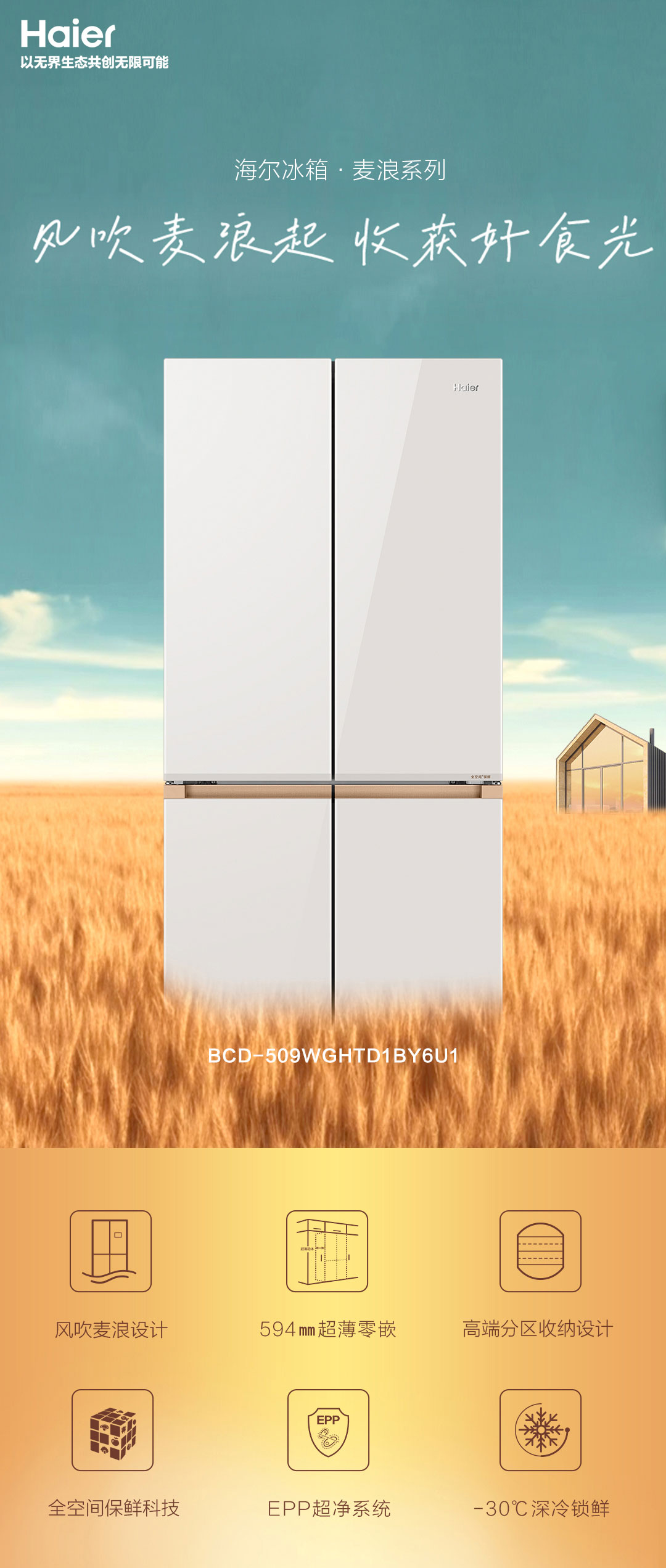 海尔(Haier)(202873)509L升麦浪系列定制款全空间保鲜594mm薄零嵌多门家用电冰箱一级能效 BCD-509WGHTD1BY6U1