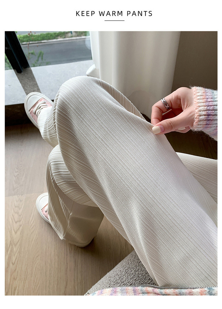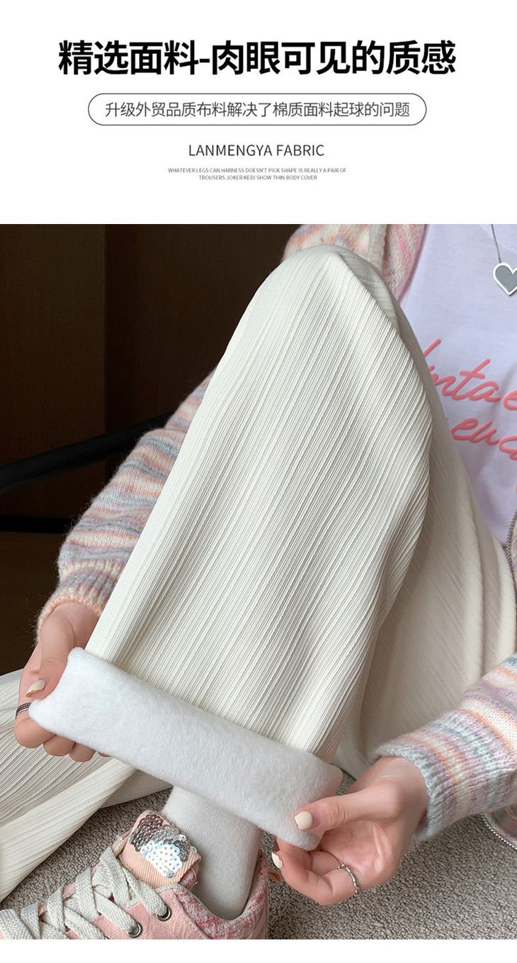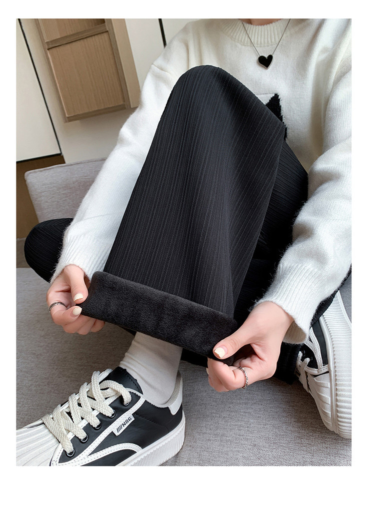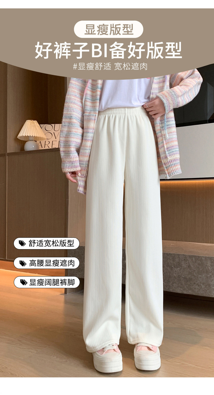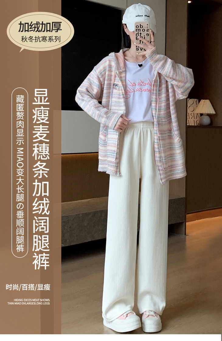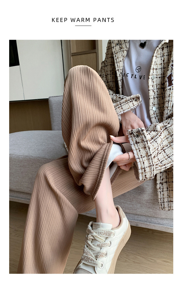 【窄版竖条纹加绒阔腿裤】女秋冬新款宽松显瘦高腰垂感直筒休闲裤长裤