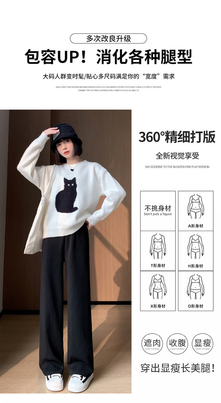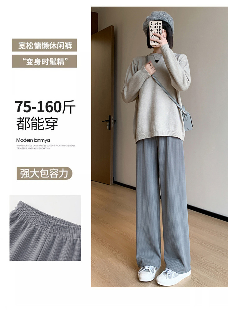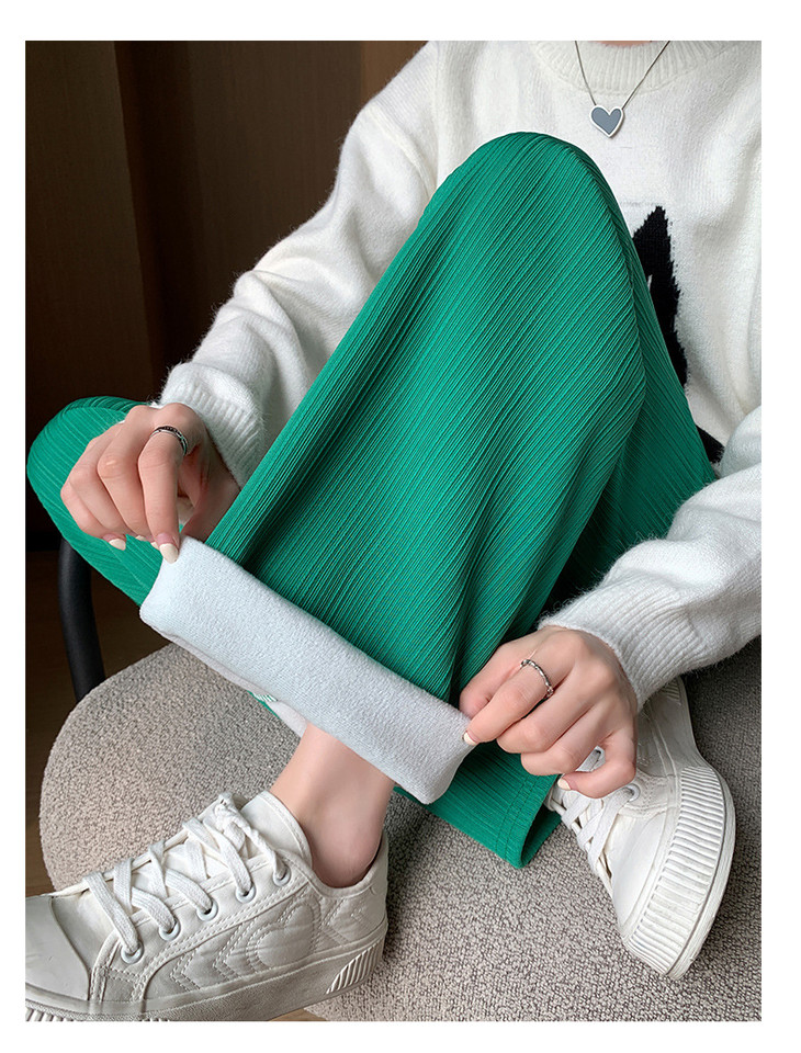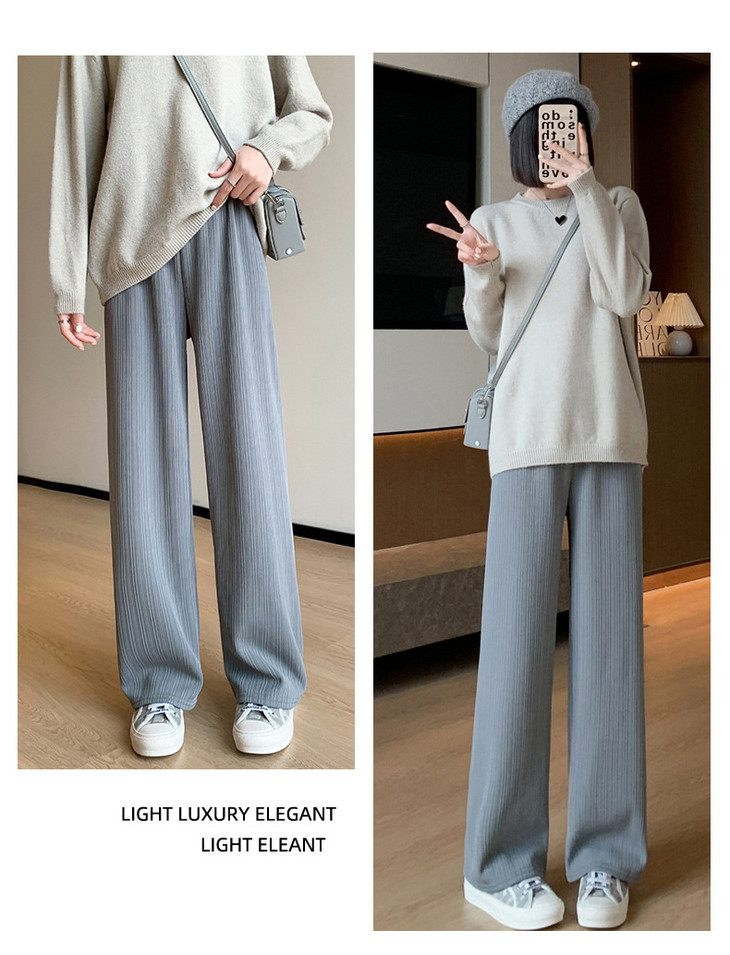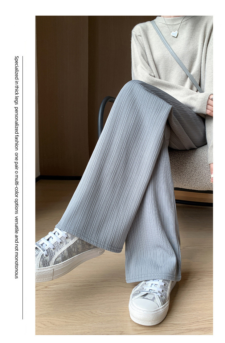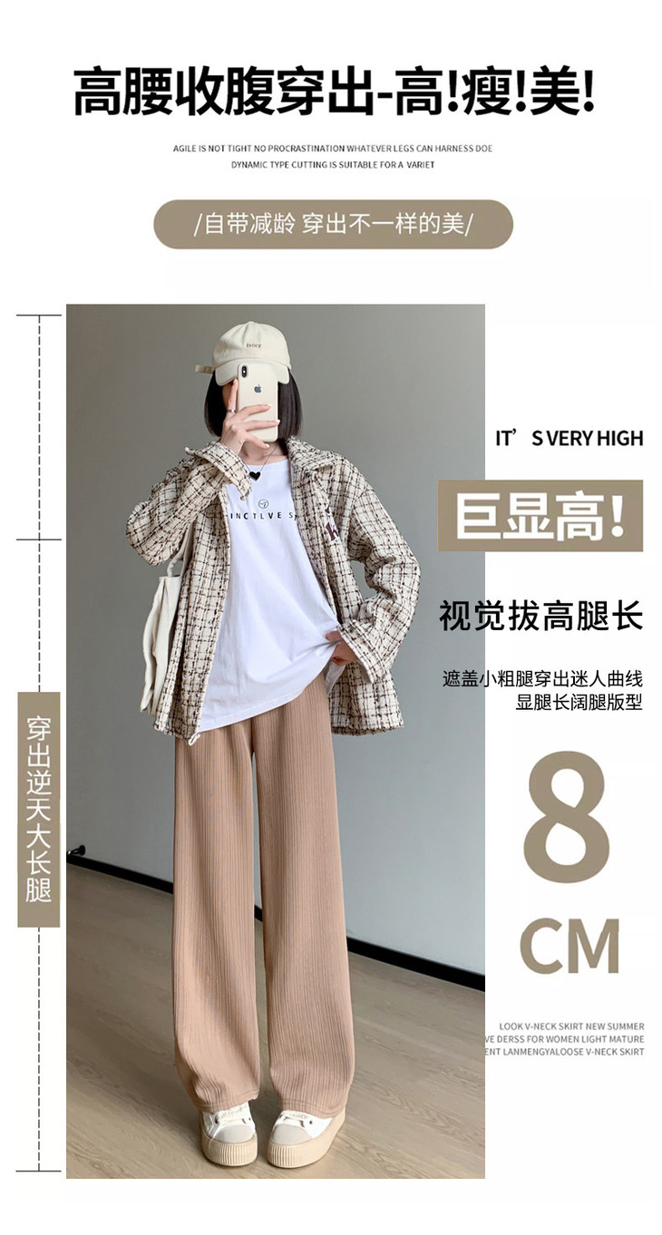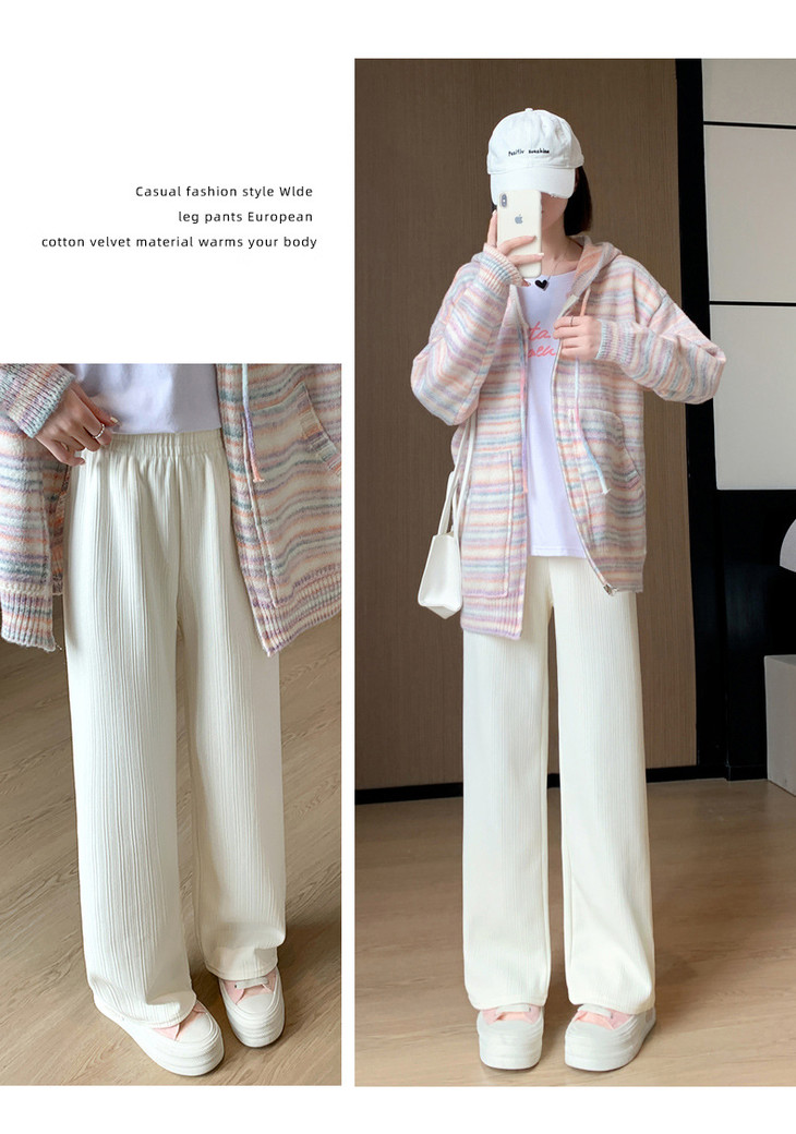 【窄版竖条纹加绒阔腿裤】女秋冬新款宽松显瘦高腰垂感直筒休闲裤长裤
