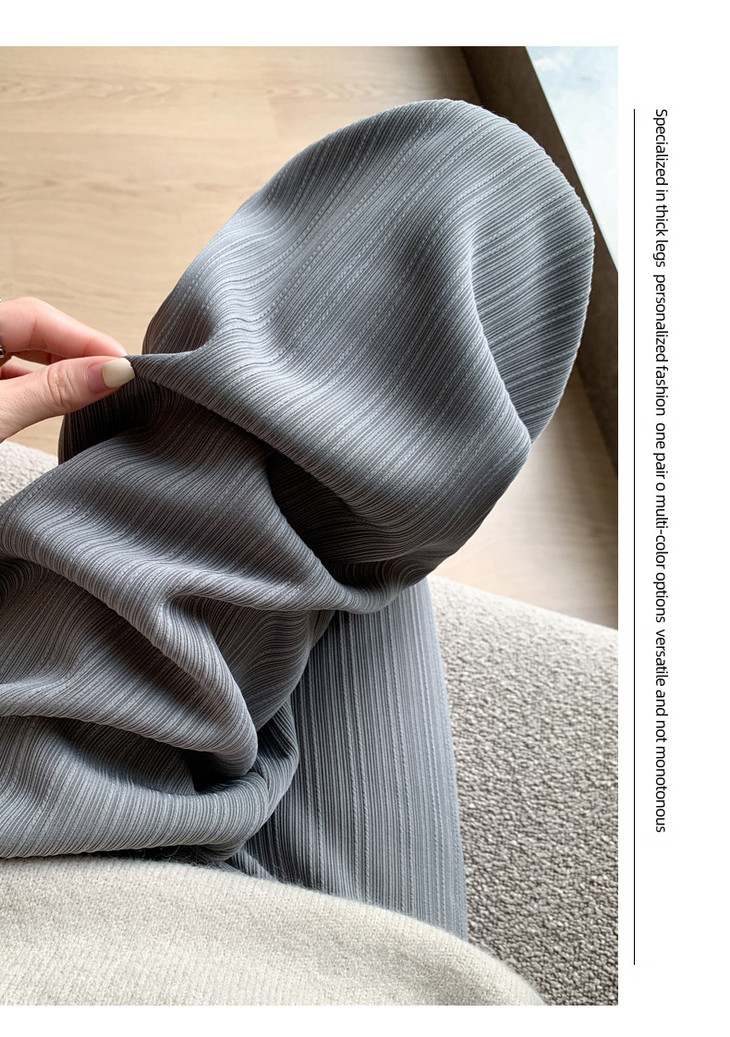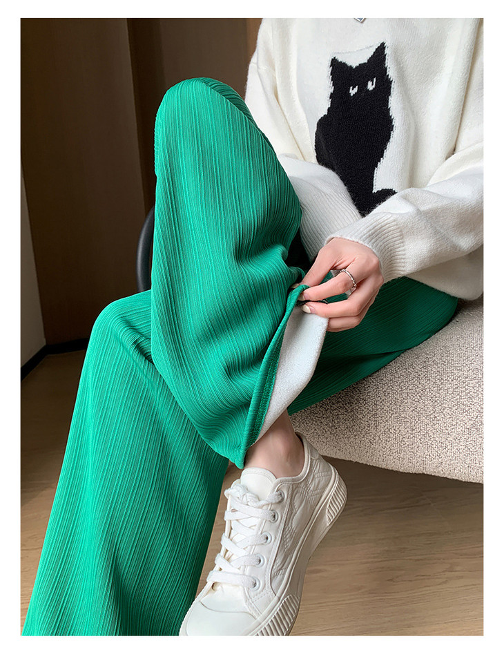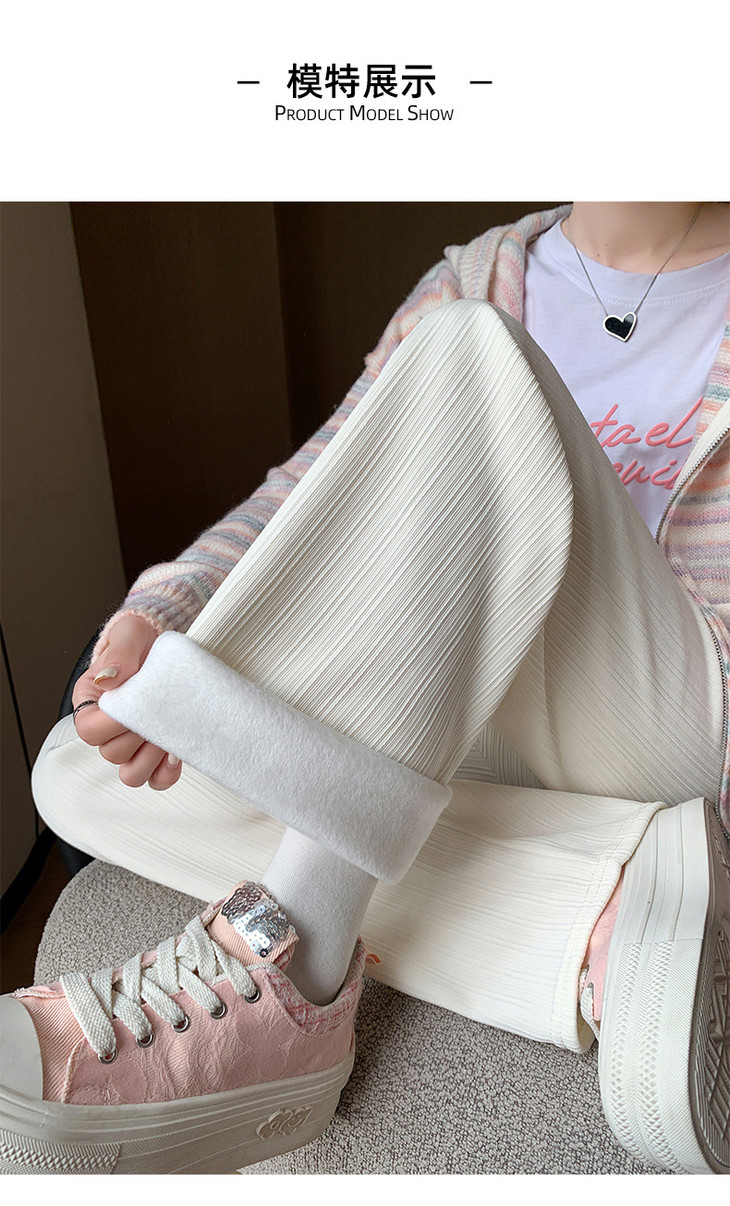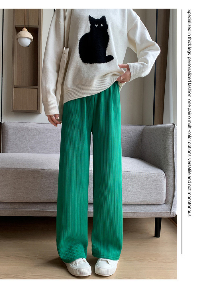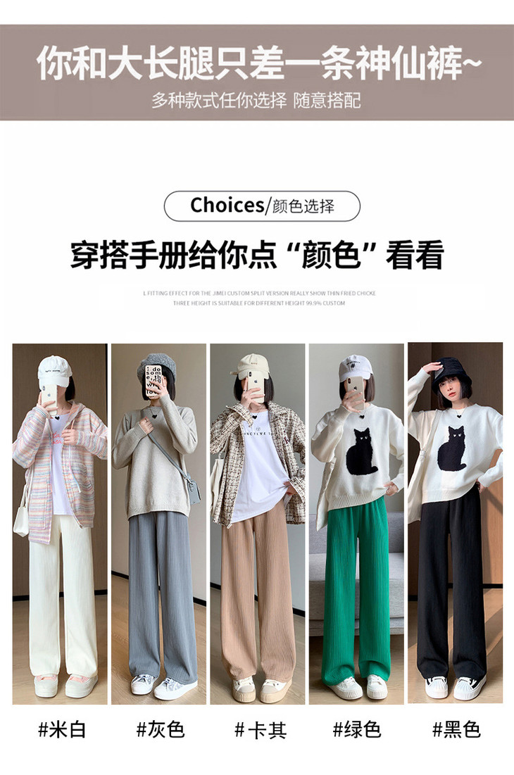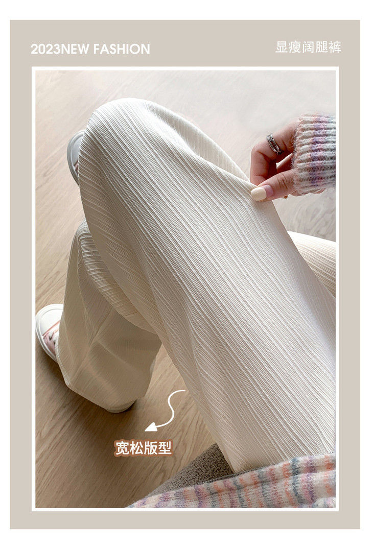 【窄版竖条纹加绒阔腿裤】女秋冬新款宽松显瘦高腰垂感直筒休闲裤长裤