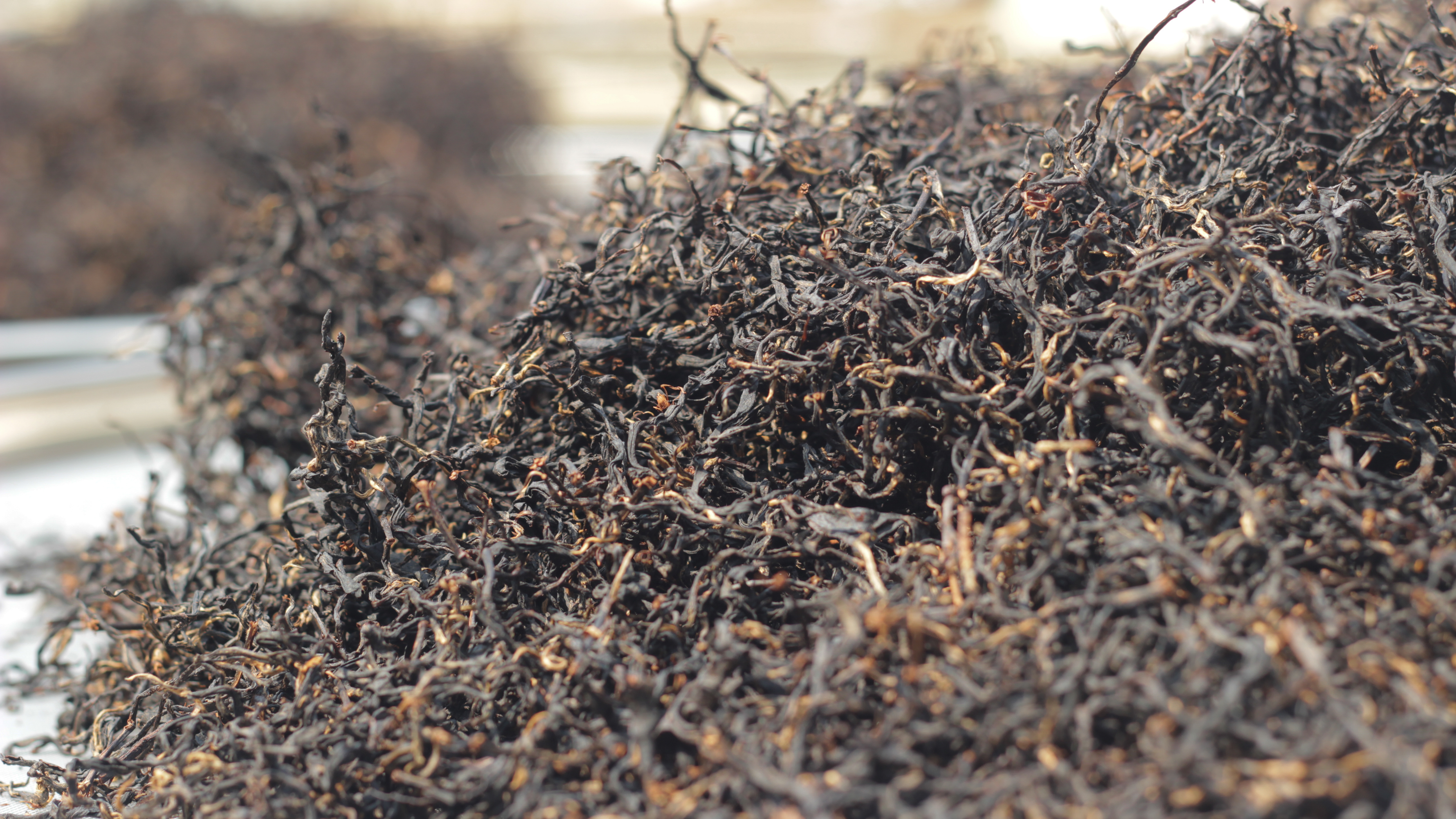 茶树和周围的树木伴生伴长,极少人工干预,近似野生状态下的茶,叶底油亮,内含物质丰富。