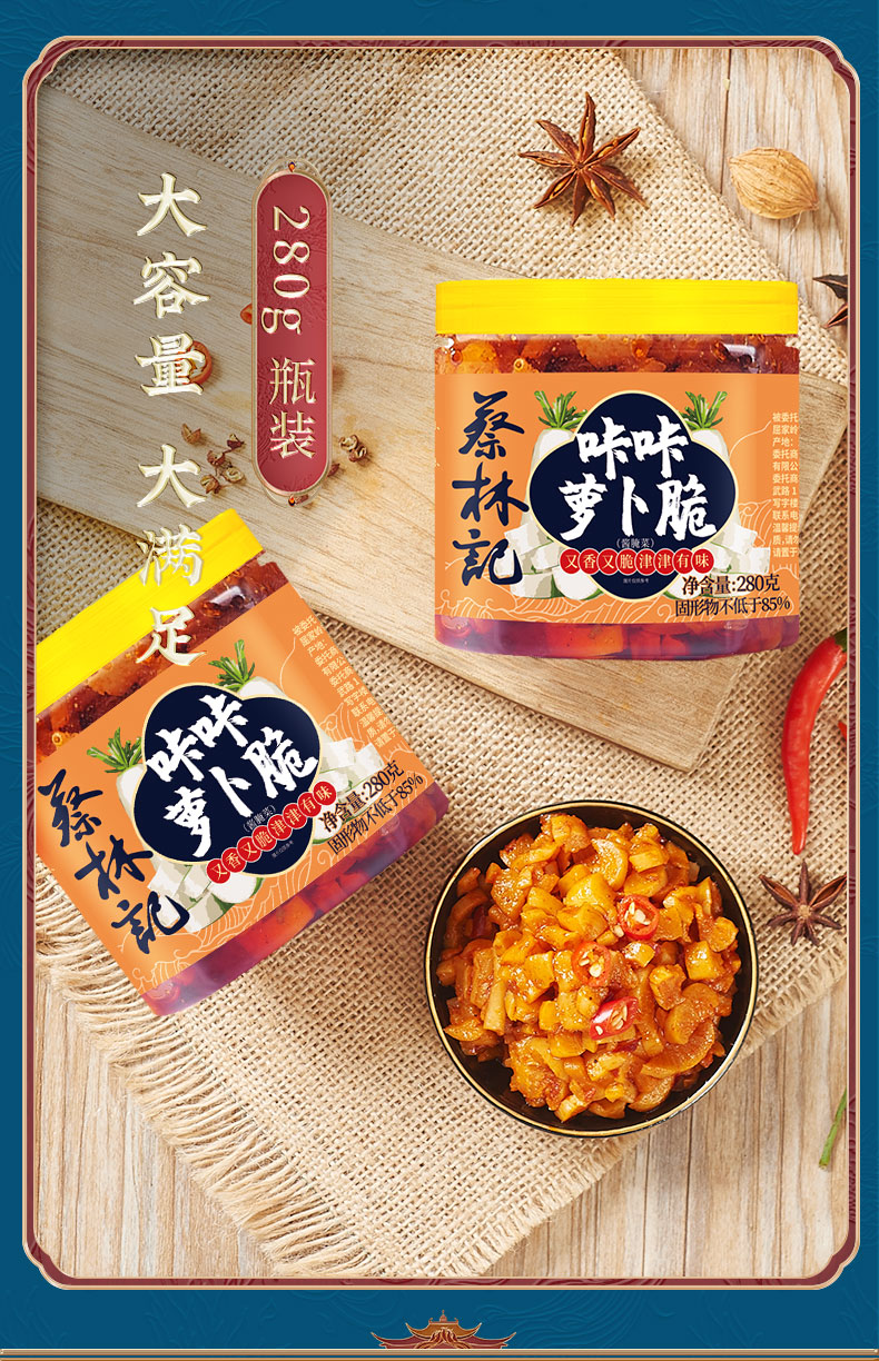 【瓶装280g*2瓶】蔡林记麻辣脆萝卜干 自制农家干货