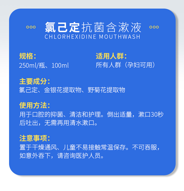 【牙医优享-限时特惠】【焕新升级】优牙合氯己定抗菌含漱液 250ml瓶装/15ml*14条装