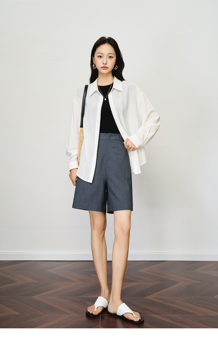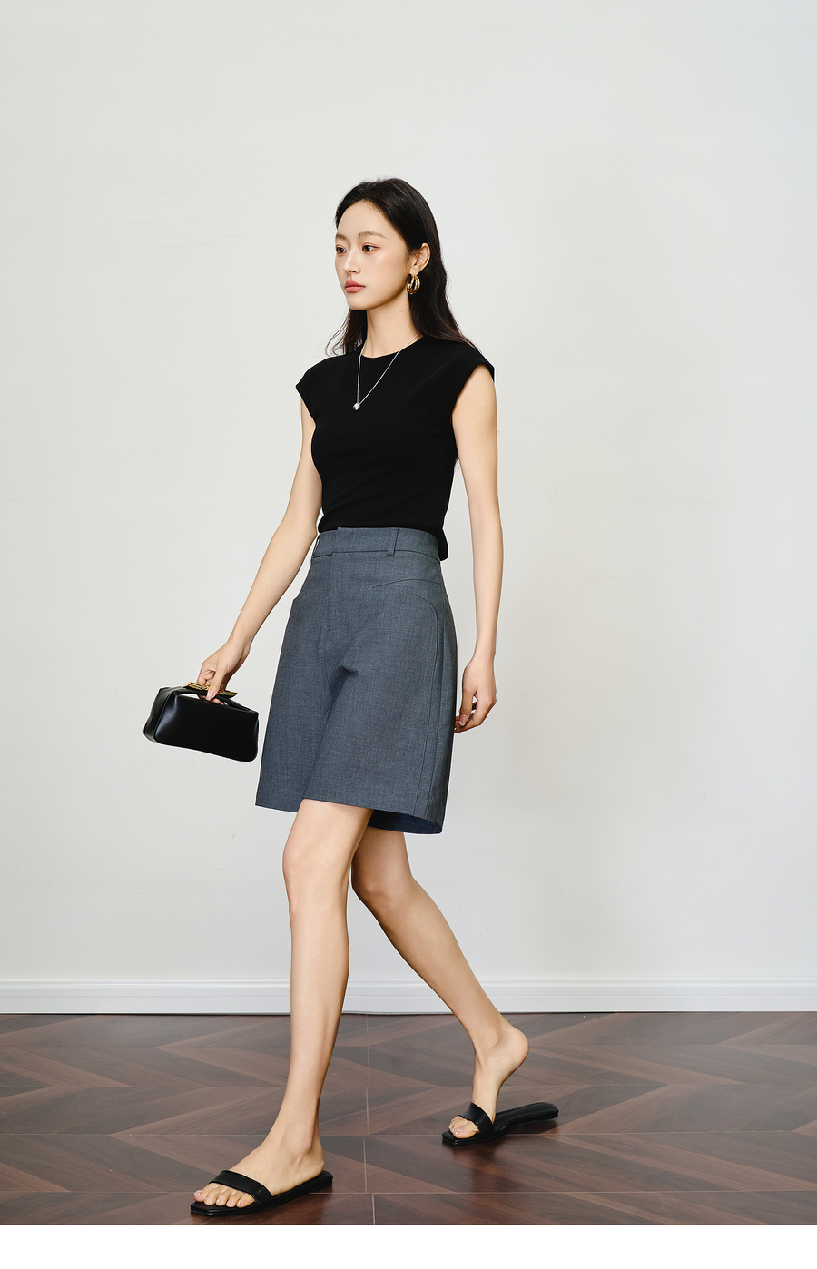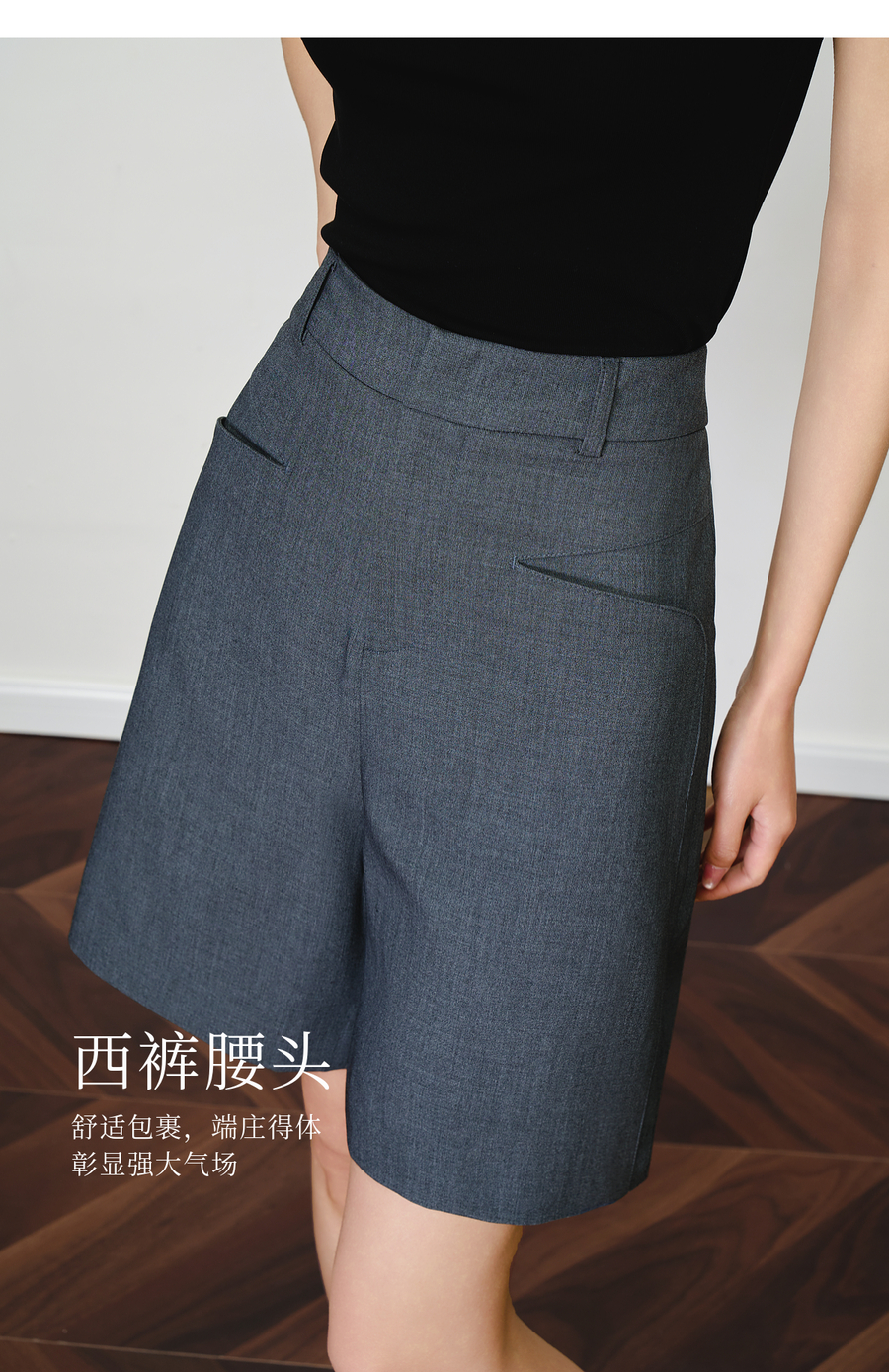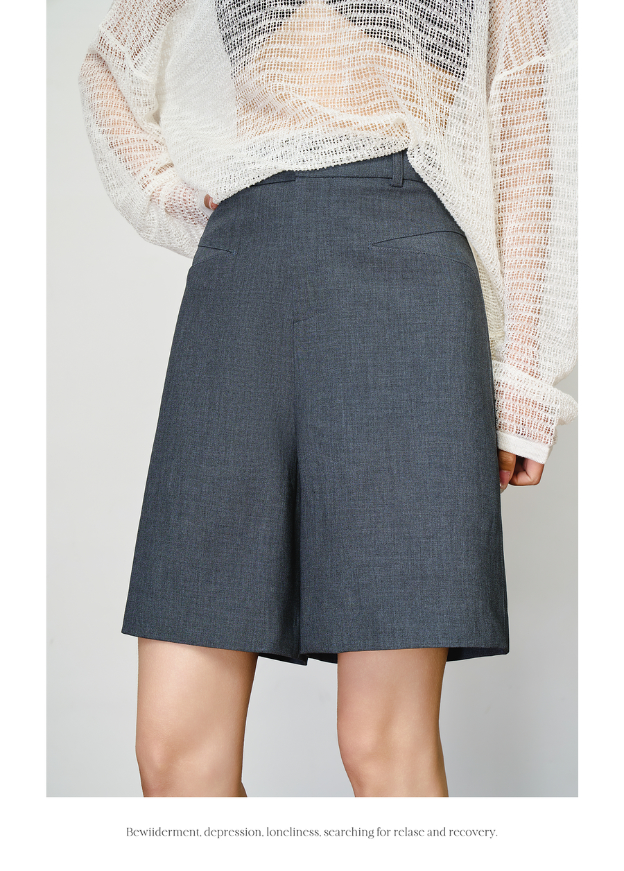 OLrain欧芮儿灰色百搭通勤西装中裤女夏季2025新款直筒五分裤短裤