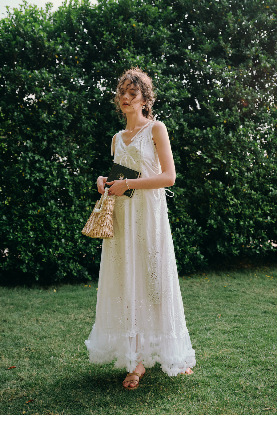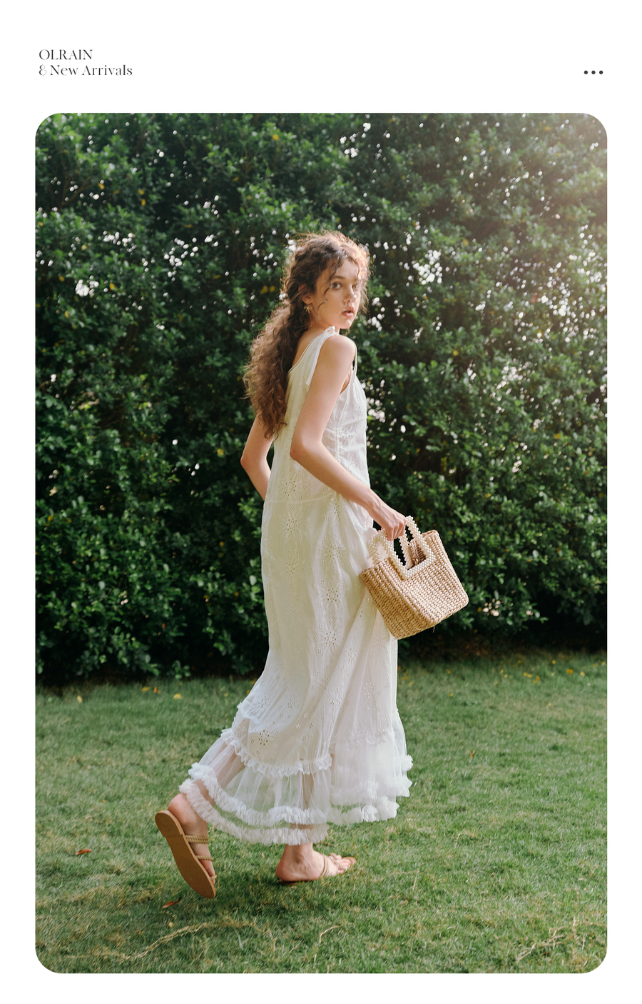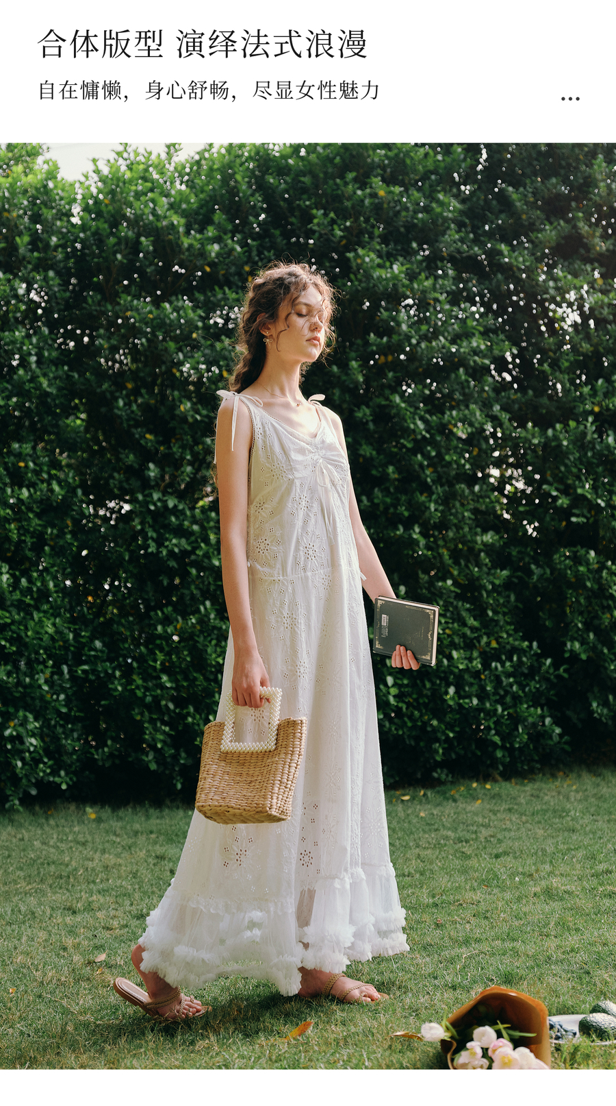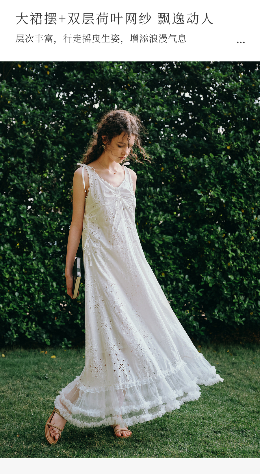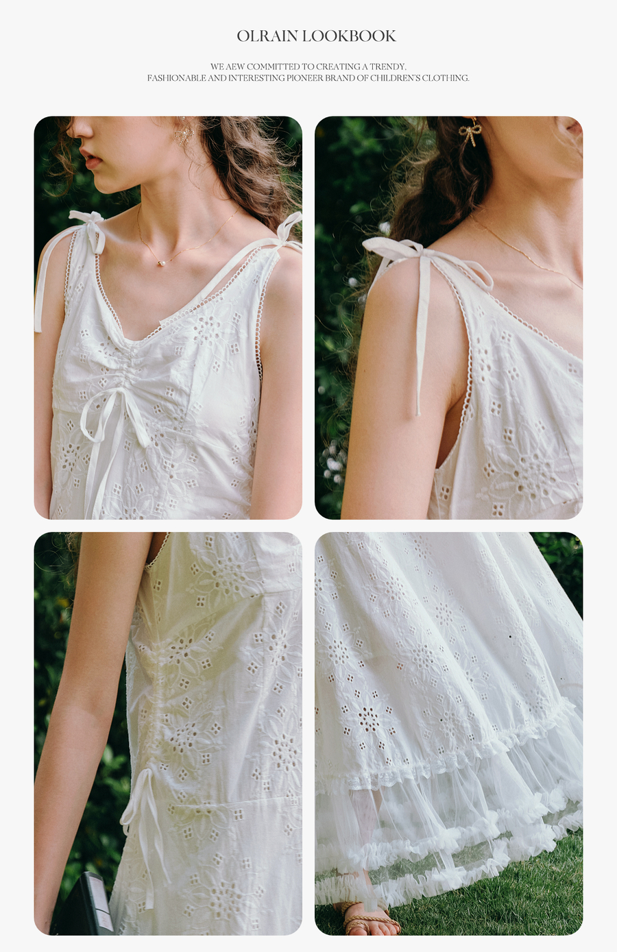 OLrain欧芮儿白色法式刺绣镂空吊带连衣裙女夏季2025新款无袖长裙