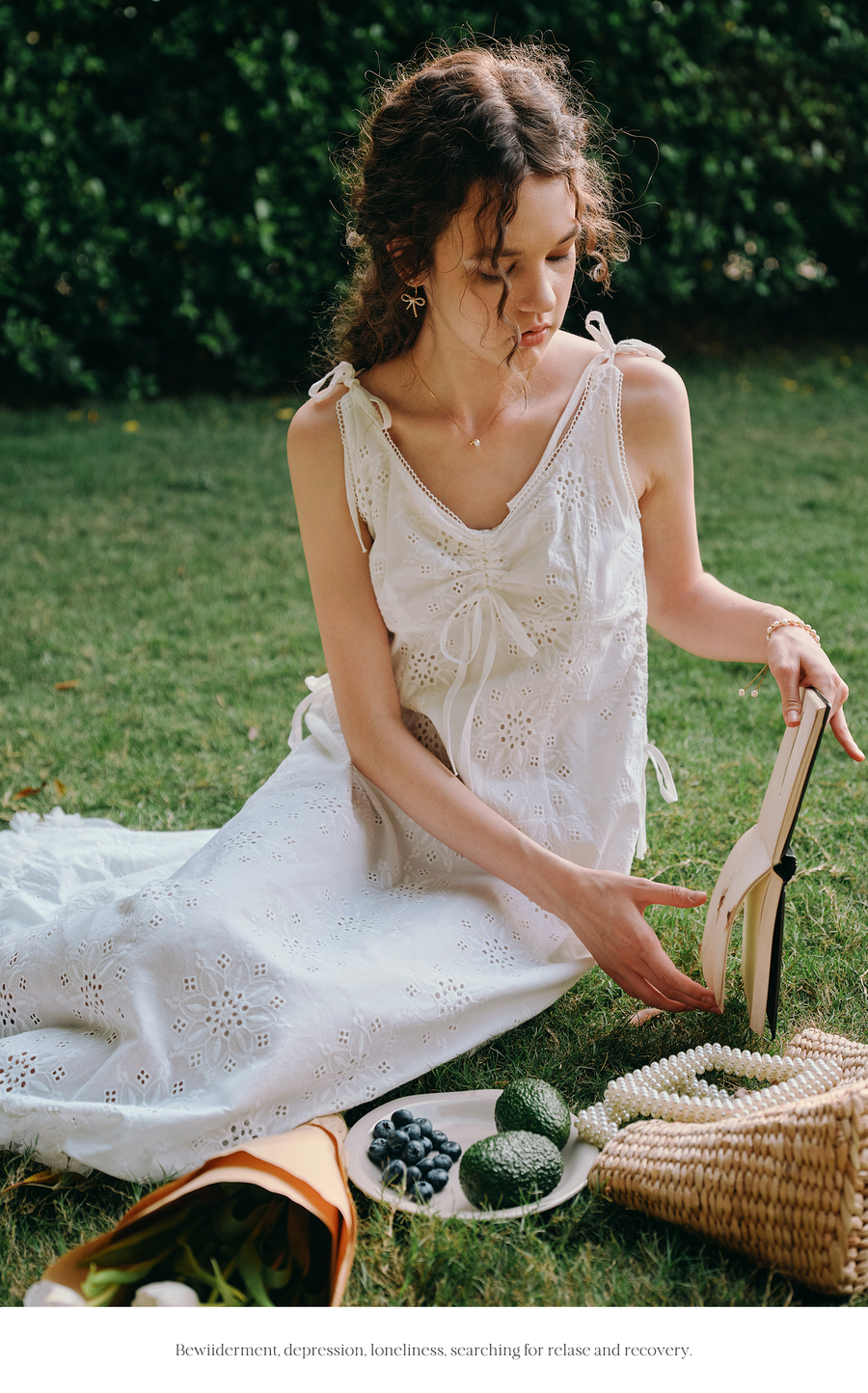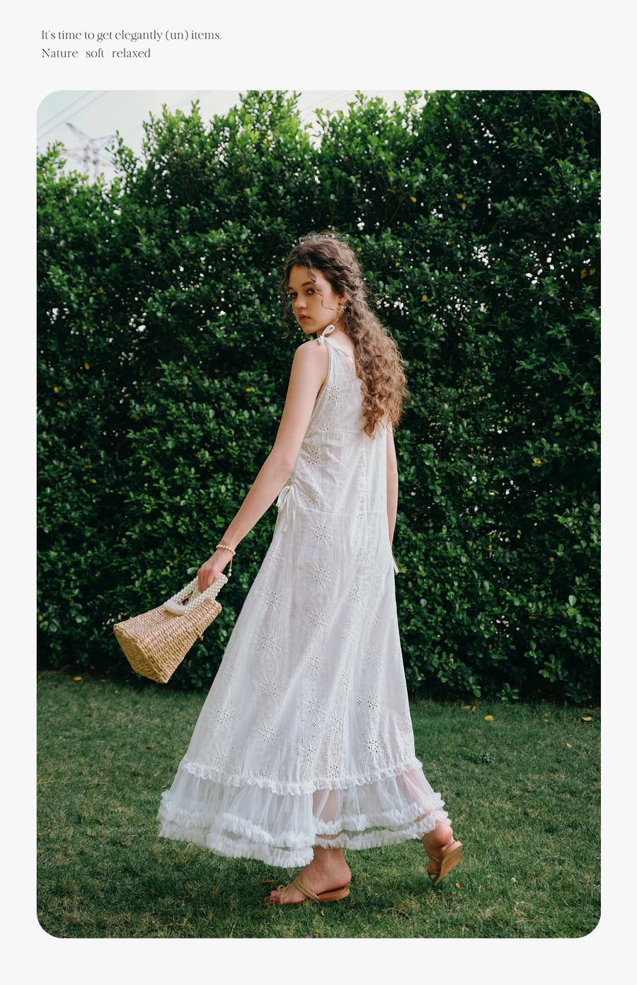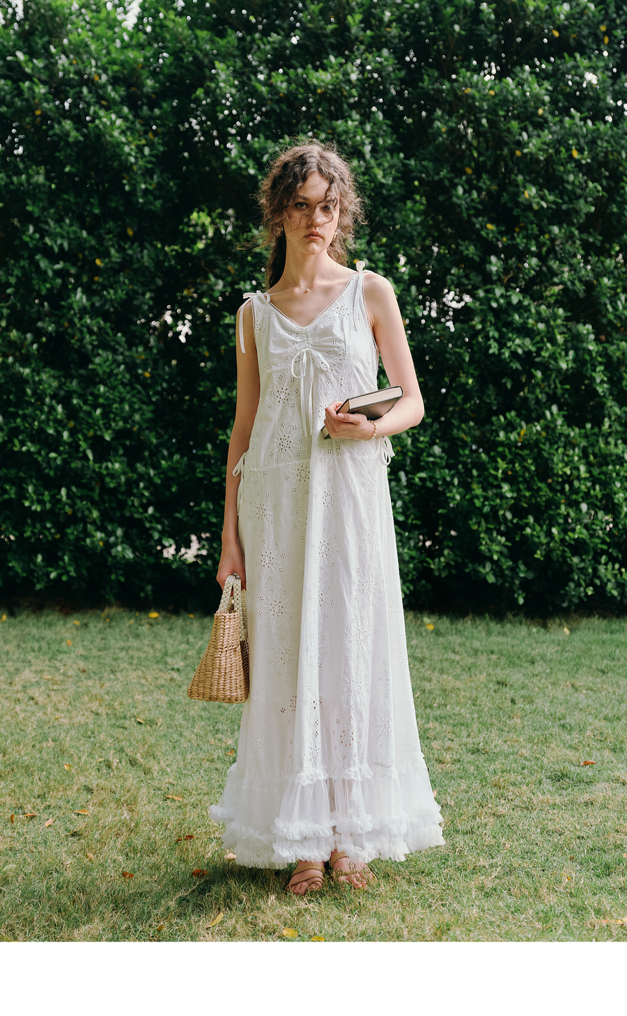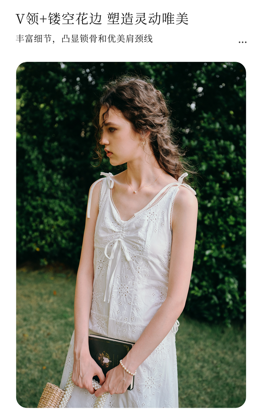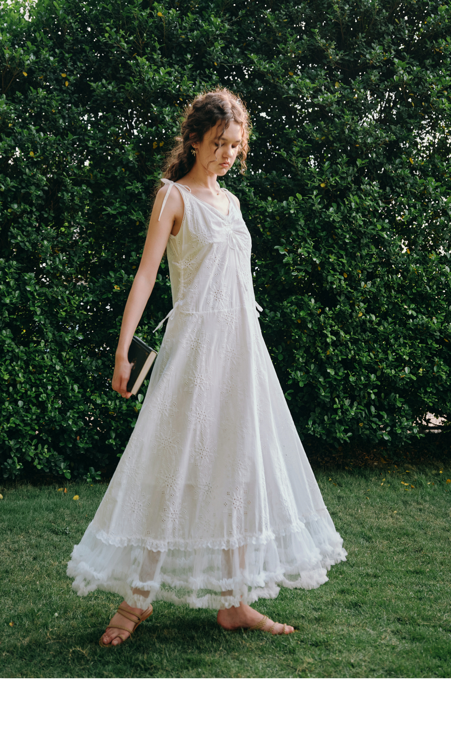OLrain欧芮儿白色法式刺绣镂空吊带连衣裙女夏季2025新款无袖长裙